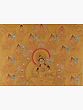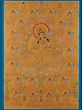 A Thangka is a traditional Tibetan Buddhist painting that usually depicts a Buddhist Deity (Buddha or Bodhisattva), a scene, or a mandala. These paintings are considered important paraphernalia in Buddhist rituals. They are used to teach the life of the Buddha, various lamas, and Bodhisattvas to the monastic students, and are also useful in visualizing the deity while meditating. One of the most important subjects of thangkas is the Bhavacakra (the wheel of life) which depicts the Art of Enlightenment. It is believed that Thangka paintings were developed over the centuries from the murals, of which only a few can be seen in the Ajanta caves in India and the Mogao caves in Gansu Province, Tibet. Thangkas are painted on cotton or silk applique and are usually small in size. The artist of these paintings is highly trained and has a proper understanding of Buddhist philosophy, knowledge, and background to create a realistic and bona fide painting.