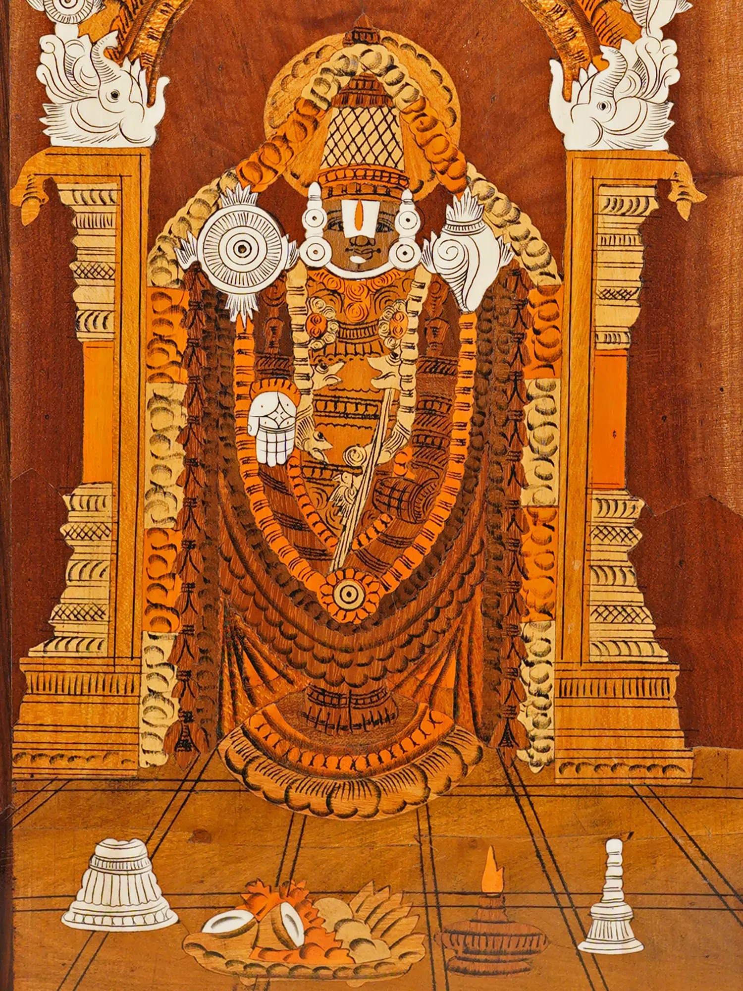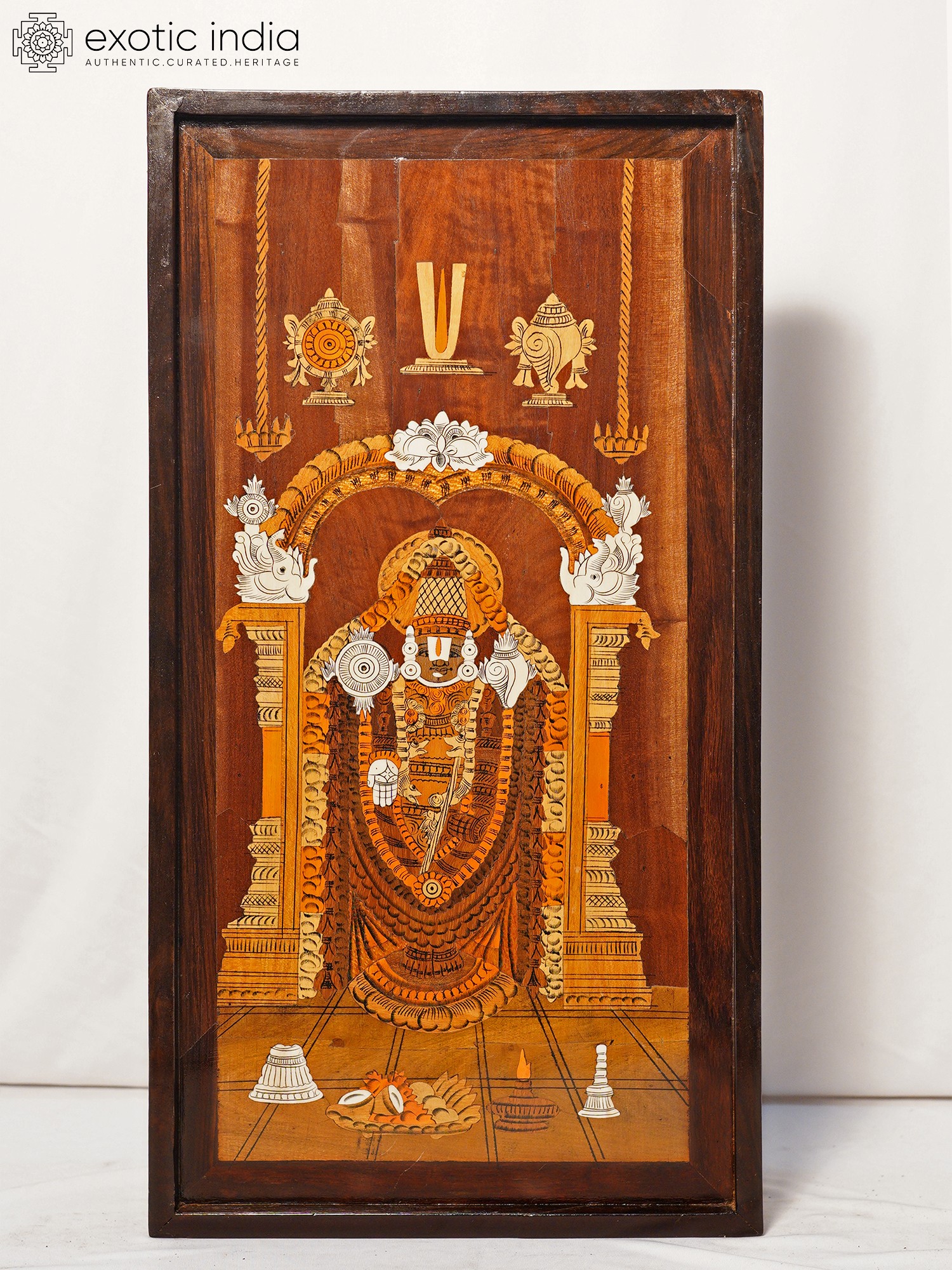 48" Attractive Panel Of Tirupati Balaji | Natural Color On 3D Wood Painting With Inlay Work