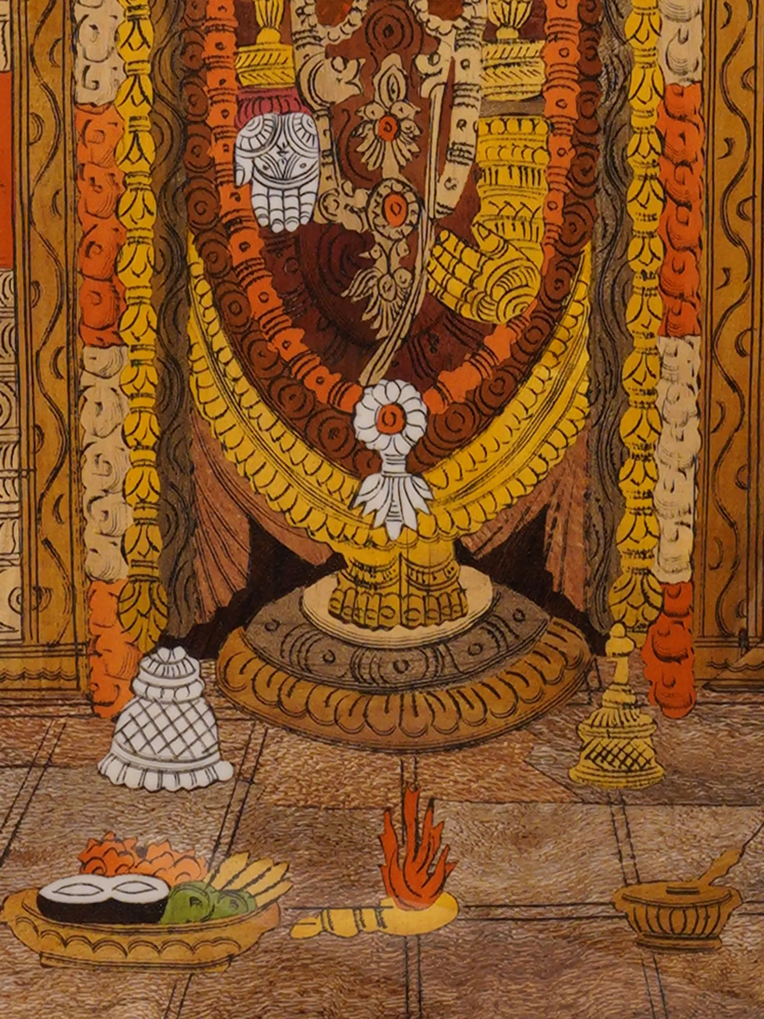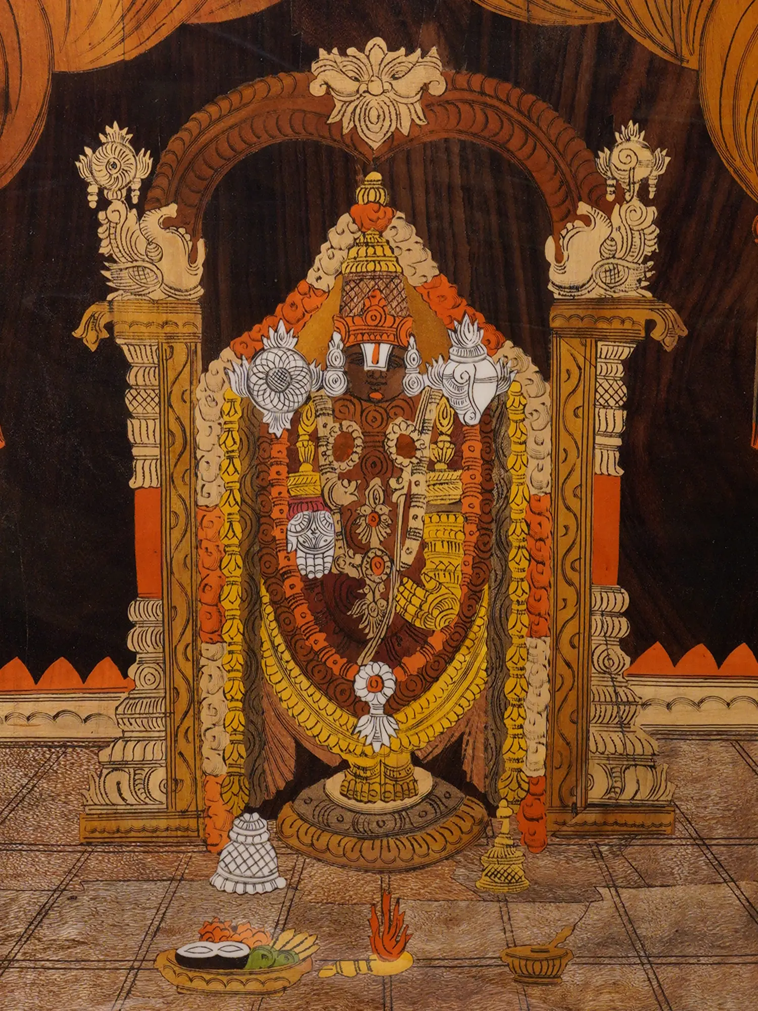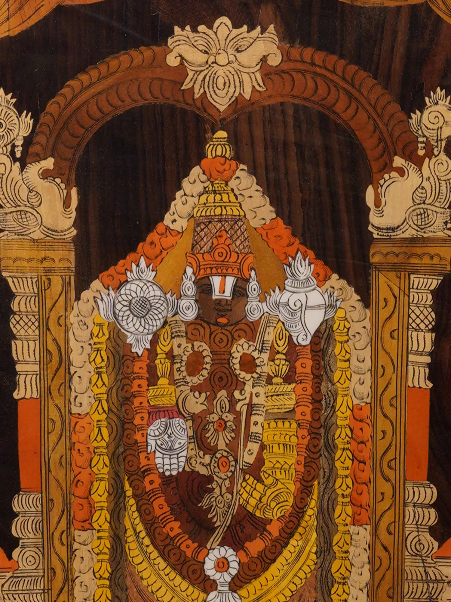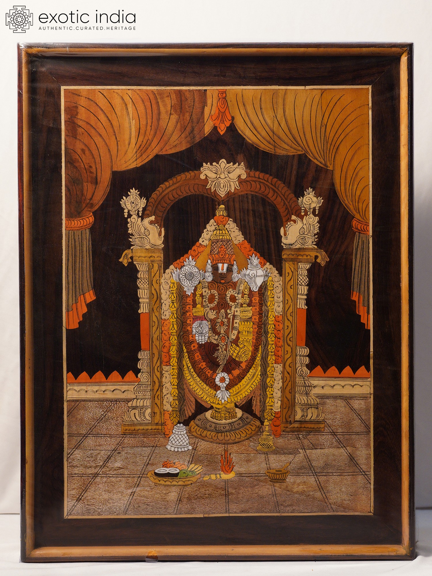 48" Attractive Panel Of Tirupati Balaji | Natural Color On 3D Wood Painting With Inlay Work