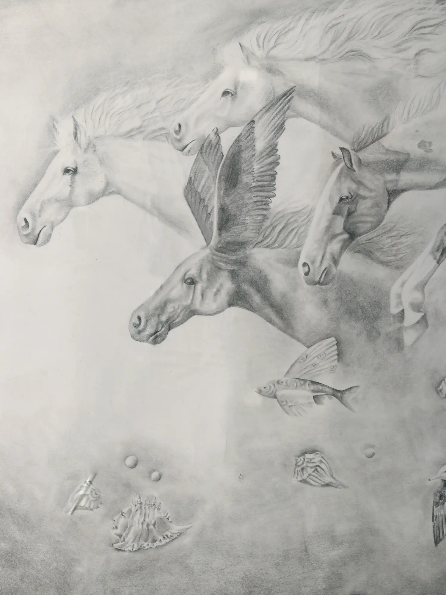 With dynamic energy and graceful movement, the Galloping Horses pencil sketch art captures the untamed spirit and majestic beauty of these magnificent creatures. Each pencil stroke echoes the thundering hooves and flowing mane as the horses race across the canvas with unbridled freedom. Through the artist's meticulous attention to detail, viewers are transported to the heart of the wilderness, where the spirit of the horse reigns supreme. As forms blur and lines merge, the sketch becomes a testament to the enduring bond between humanity and nature, reminding us of the innate beauty that surrounds us.