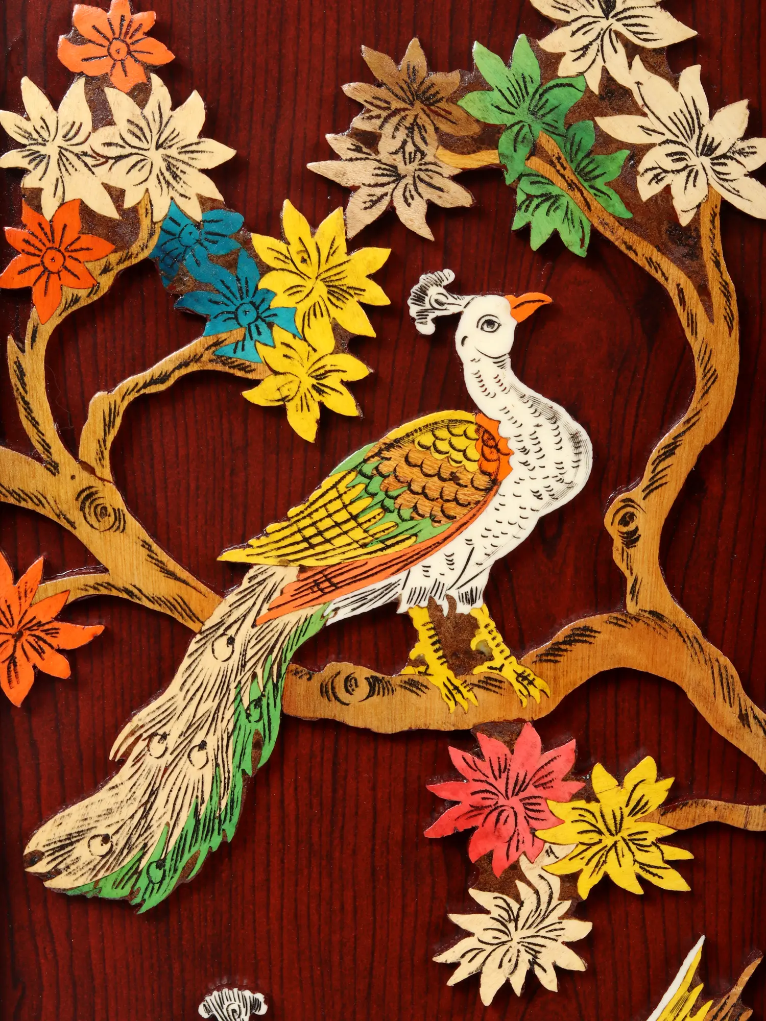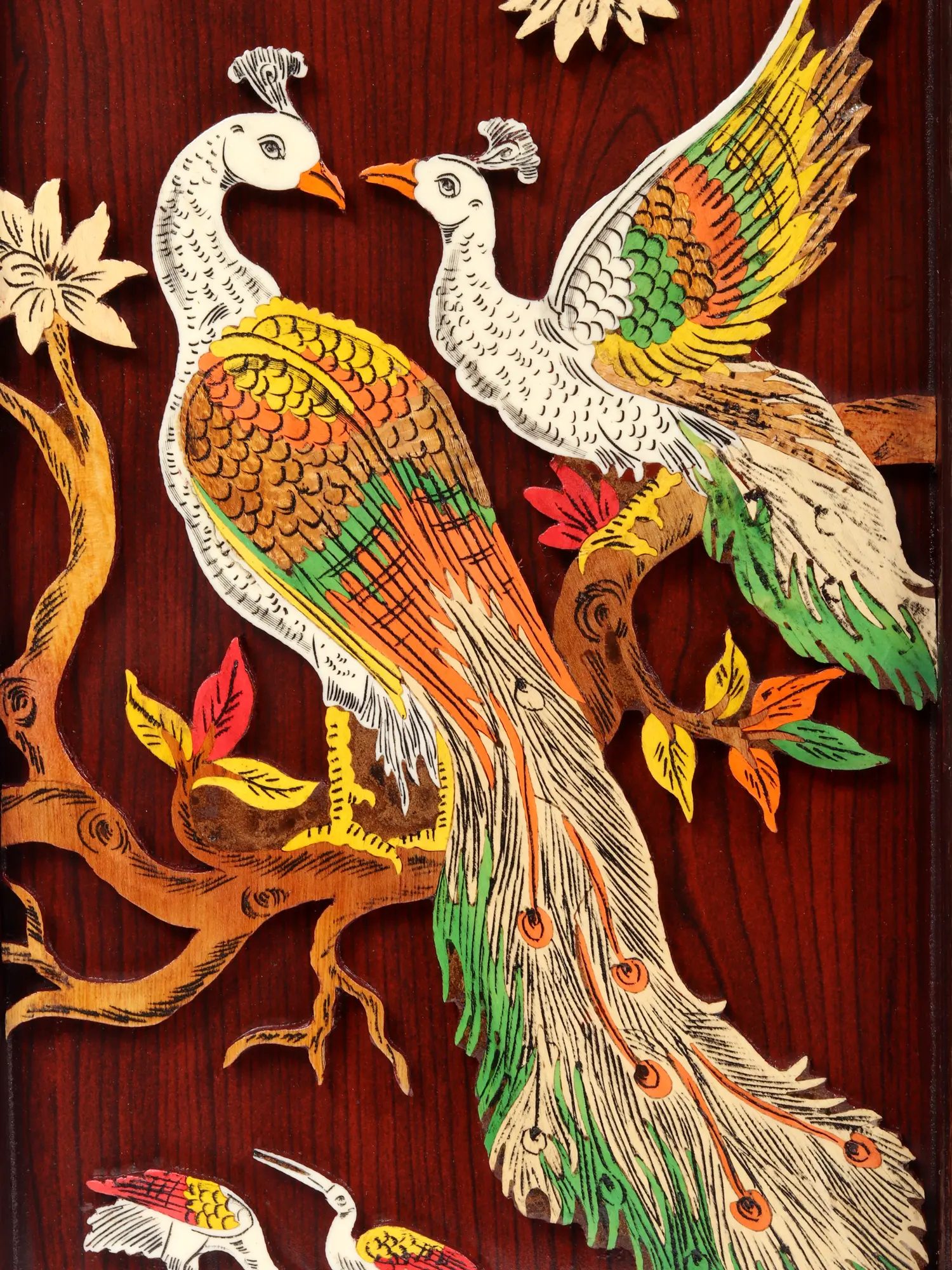 30" 3D Peacock Art Wood Panel with Inlay Work