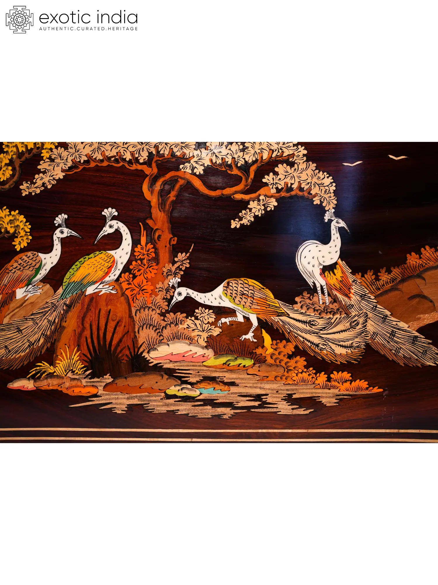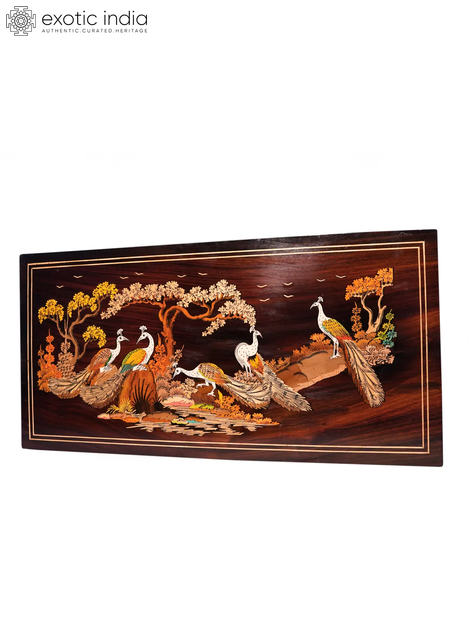 30" Many Attractive Peacock's In Jungle | Natural Color On 3D Wood Painting With Inlay Work