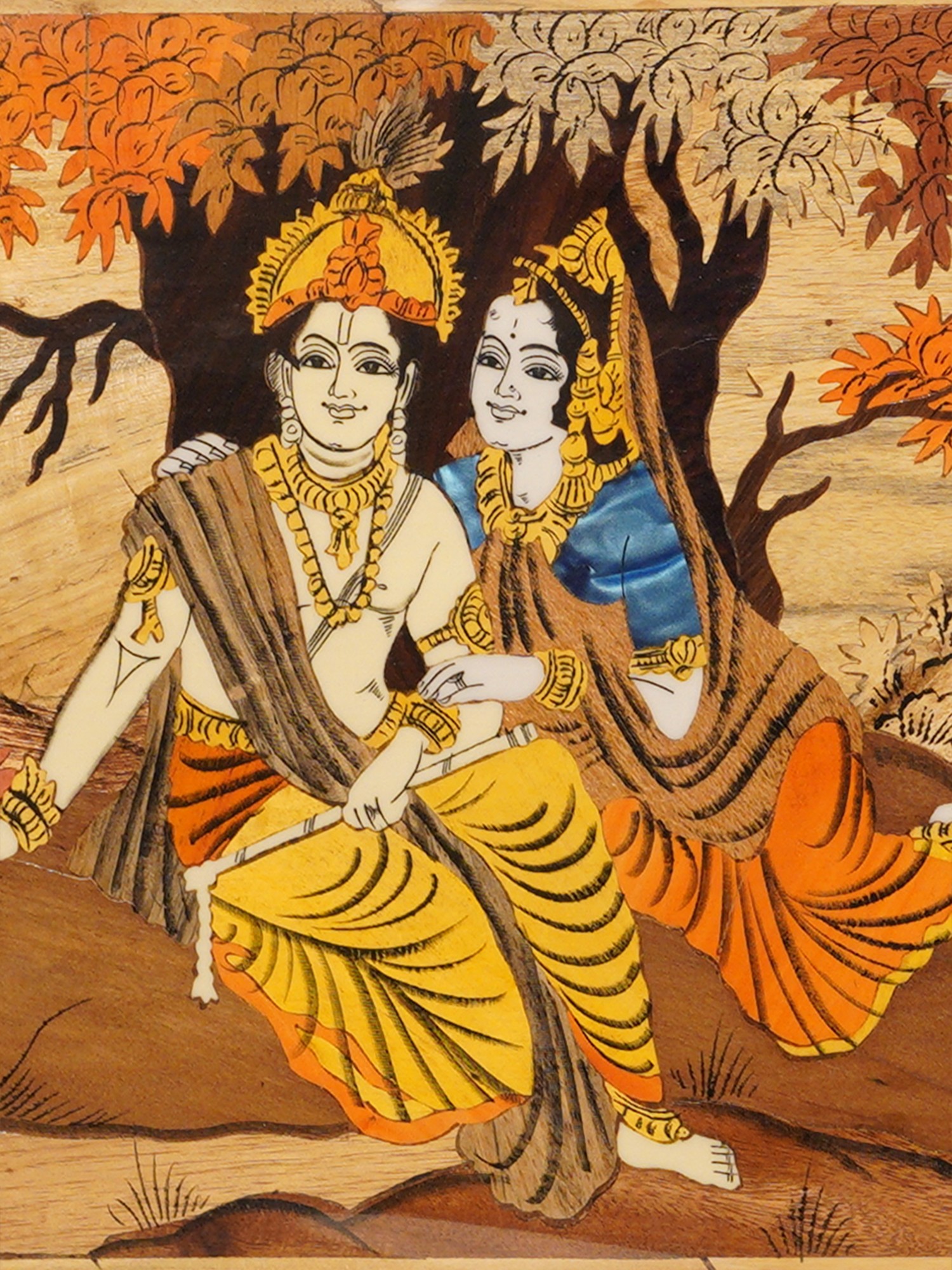 30" Radha Krishna Sitting Together | Rosewood Panel With Inlay Work