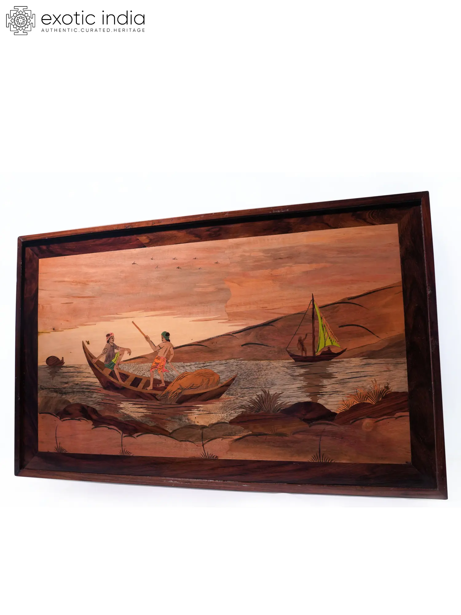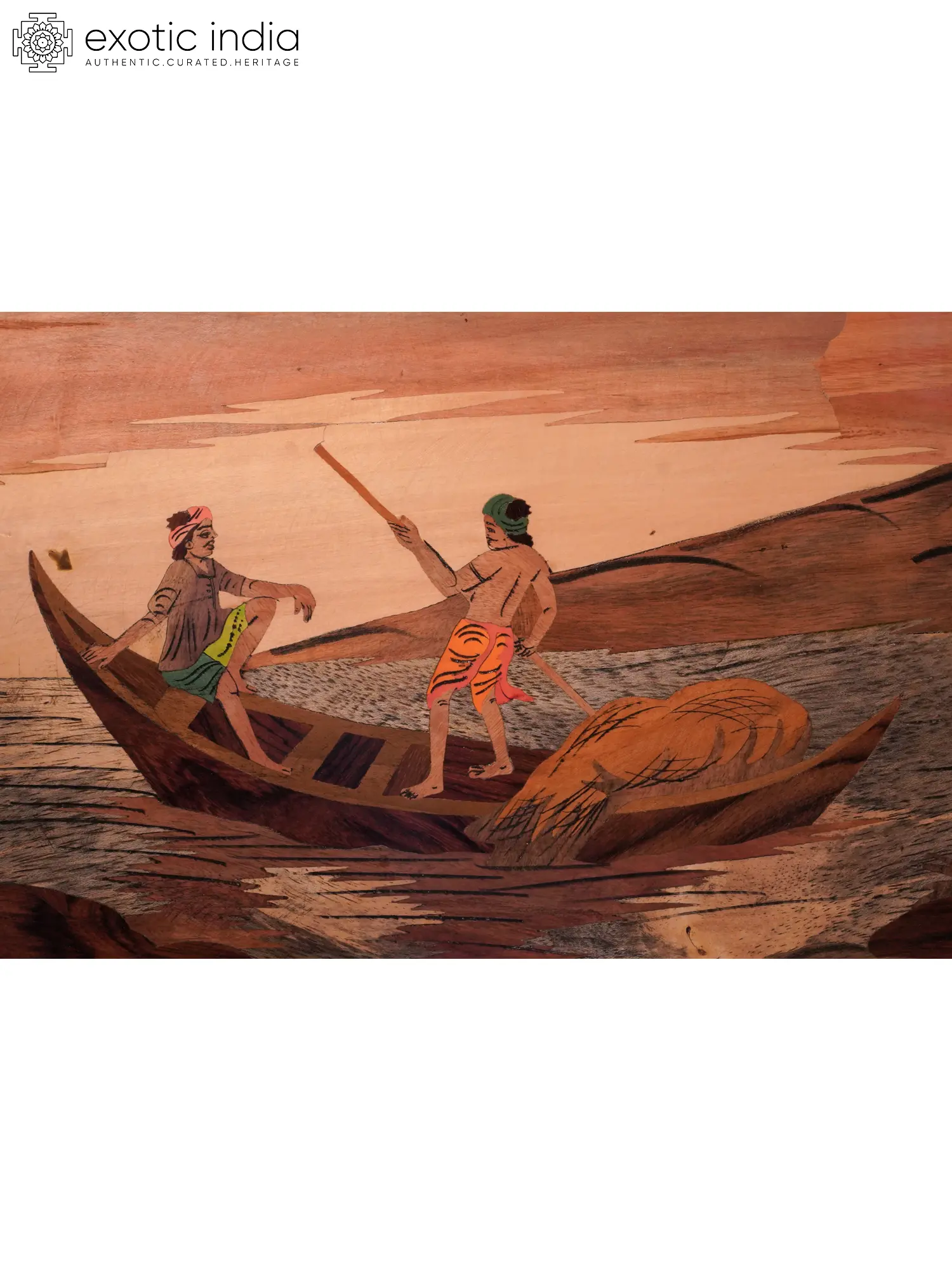 31" The Sailors On Boat | Natural Color On Wood Panel With Inlay Work