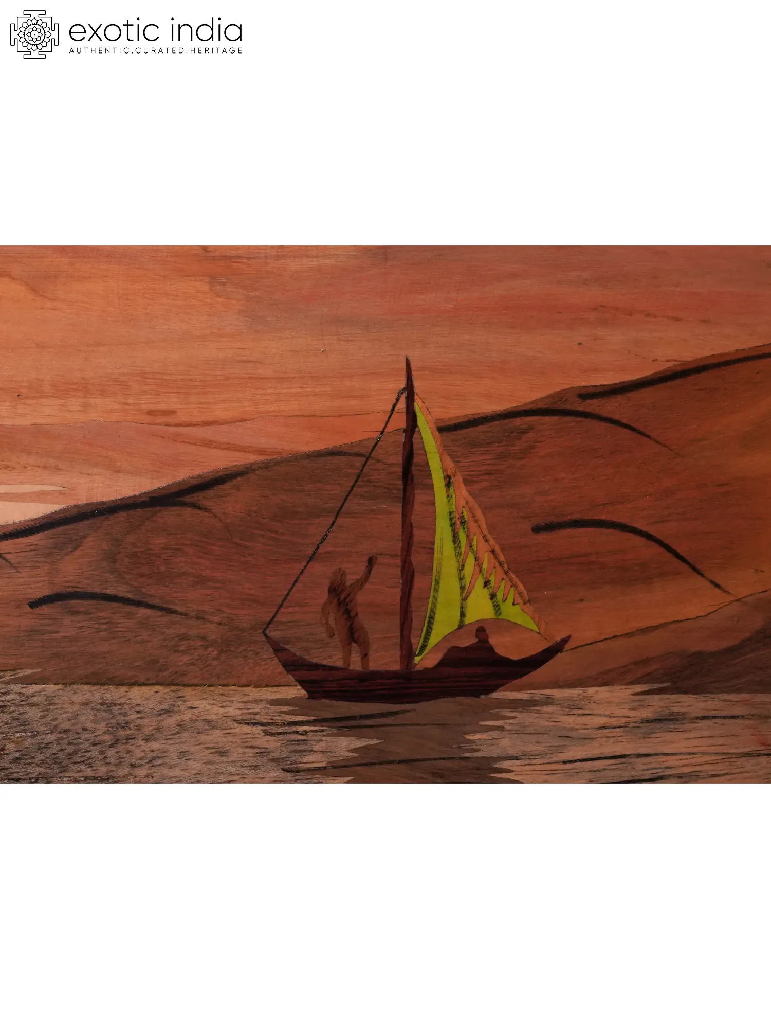 The presence of sailors and boats inevitably draws to mind the importance of the sea in Indian culture and mythology. Varuna, the Vedic deity associated with water, oceans, and rivers, is often depicted as a powerful and benevolent figure who upholds cosmic order. He is the guardian of the western direction and a symbol of justice and truth. Tales of seafaring merchants and explorers are woven into the fabric of Indian history, highlighting the country's long-standing connection with maritime trade and cultural exchange. The ocean is not merely a geographical feature but a source of life, sustenance, and inspiration, deeply ingrained in the collective consciousness. The panel is a wonderful decorative object that brings the sea's tranquility into the home.