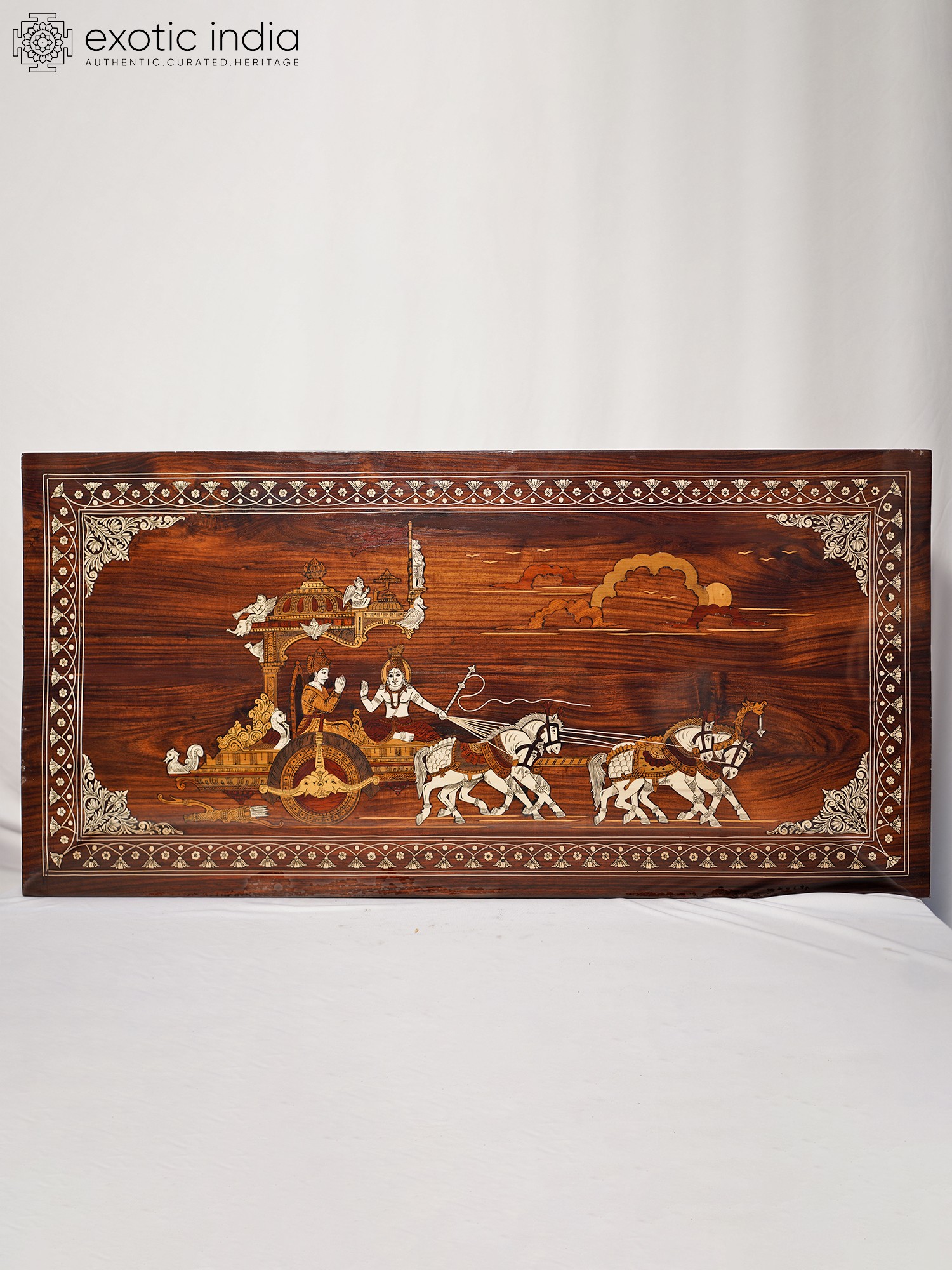 36" Beautiful Panel Of Geeta Upadesh By Krishna To Arjun | Rosewood Panel With Inlay Work