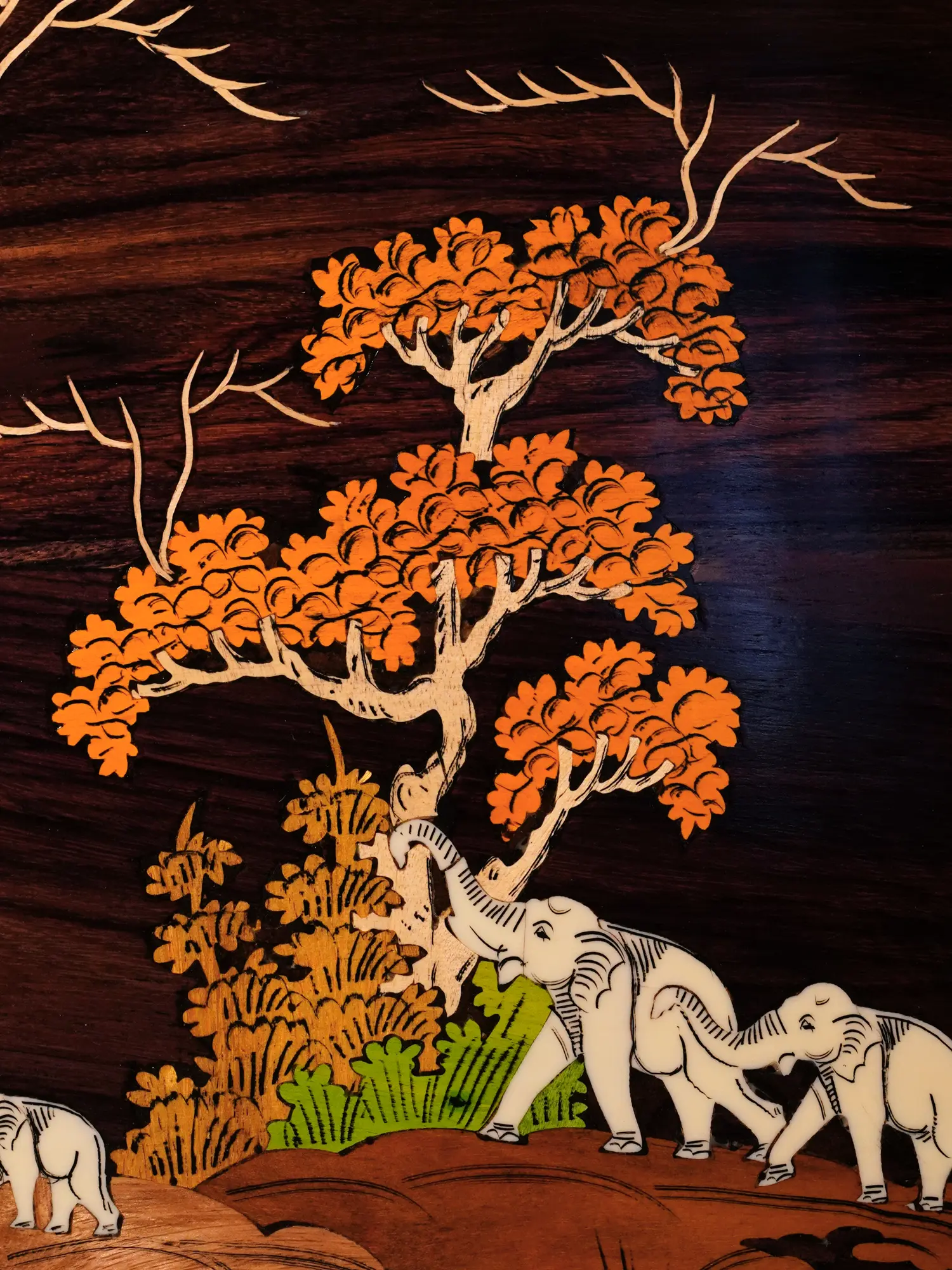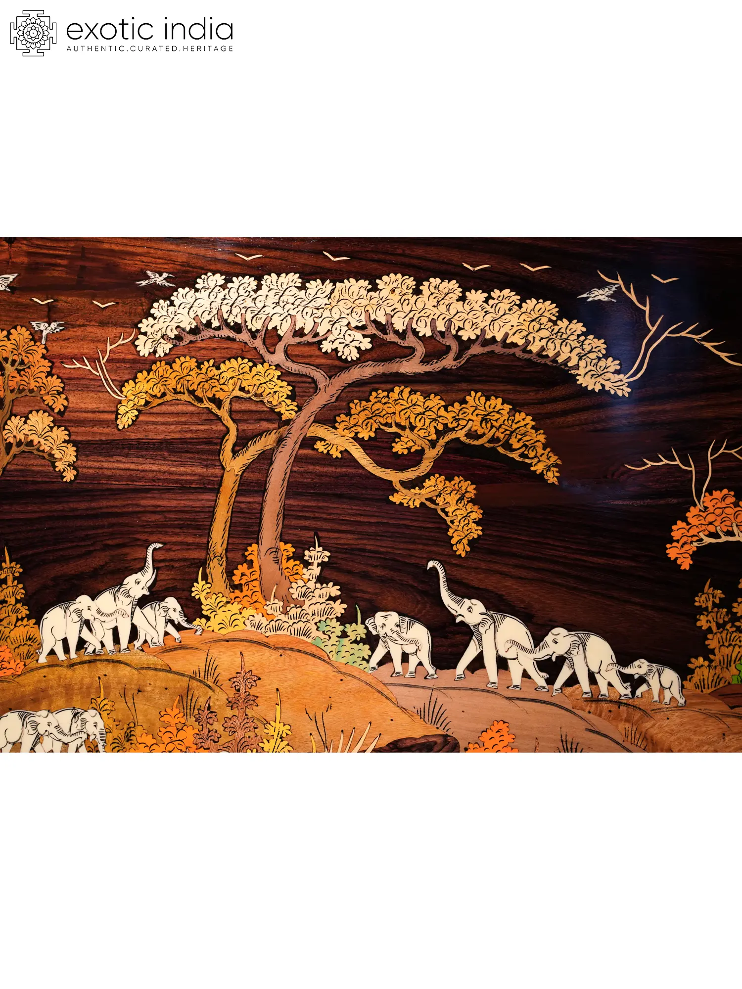 36" Happy Family Of Elephants | Natural Color On 3D Wood Painting With Inlay Work