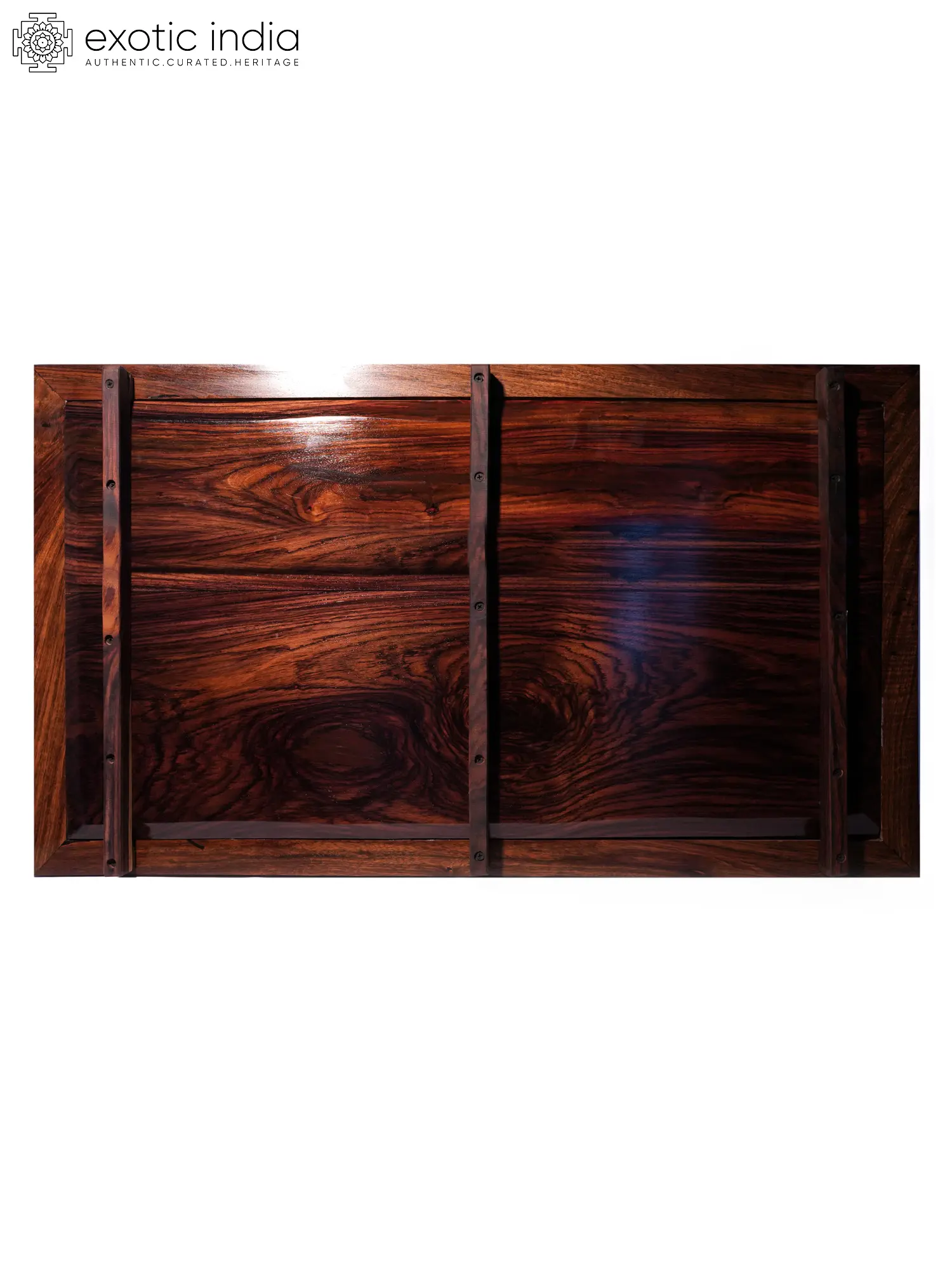 The first step in the process is selecting the base and the design to be carved onto it. Planks are cut out of Rosewood logs in many shapes like square, rectangular, oval, or even circular. The surface is smoothened, and the sides are evened out.