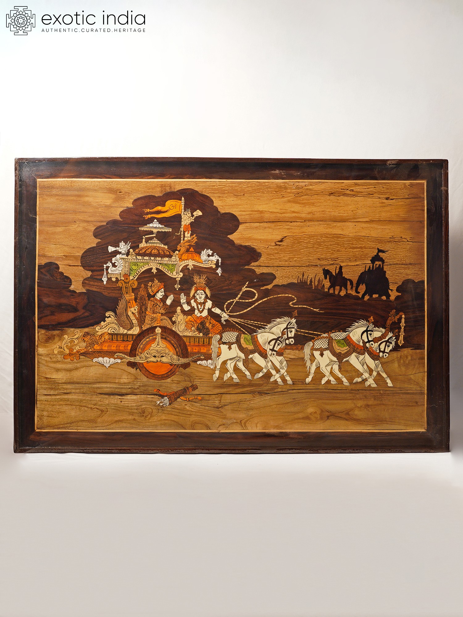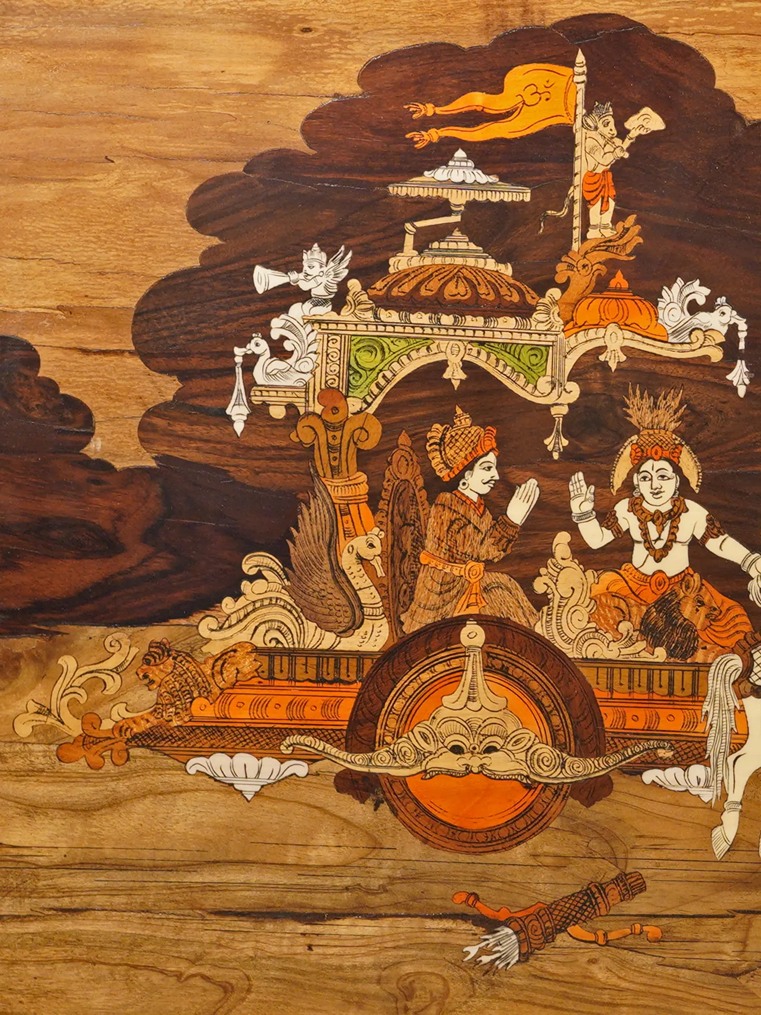 12" Lord Krishna With Radha Rani | Rosewood Panel With Inlay Work