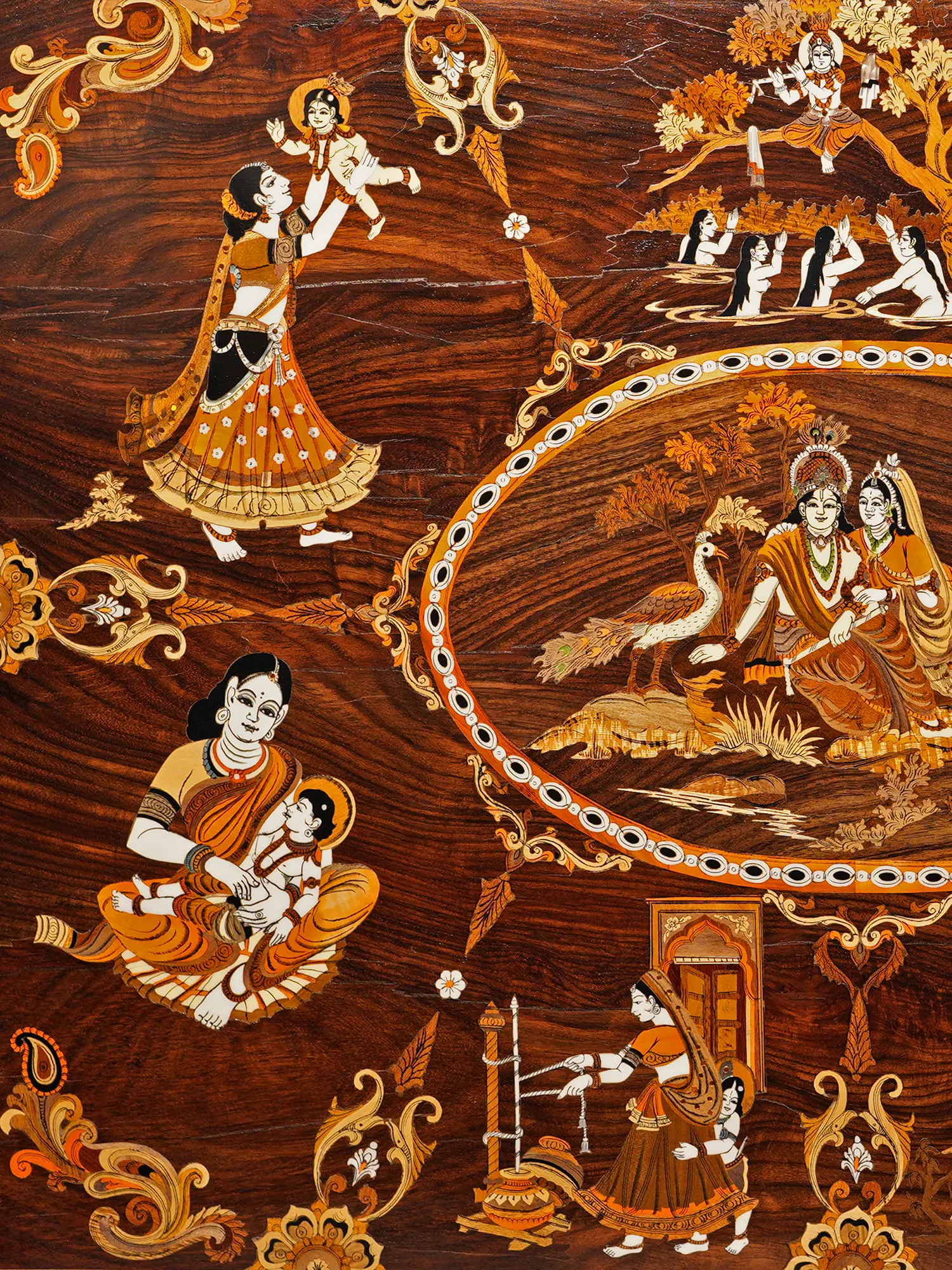 30" Wood Carving Statue Of Lord Krishna | Handmade White Wood Statue