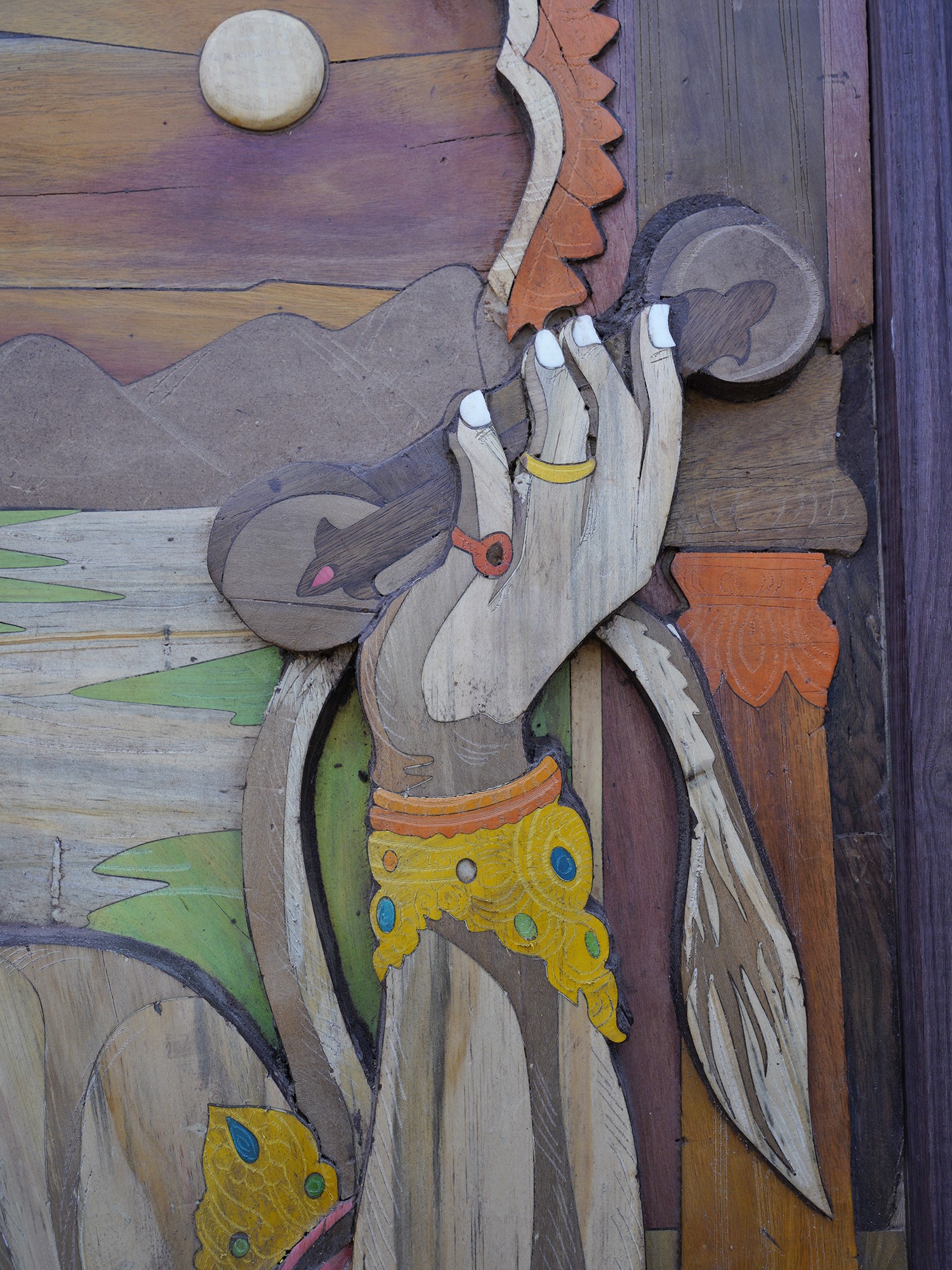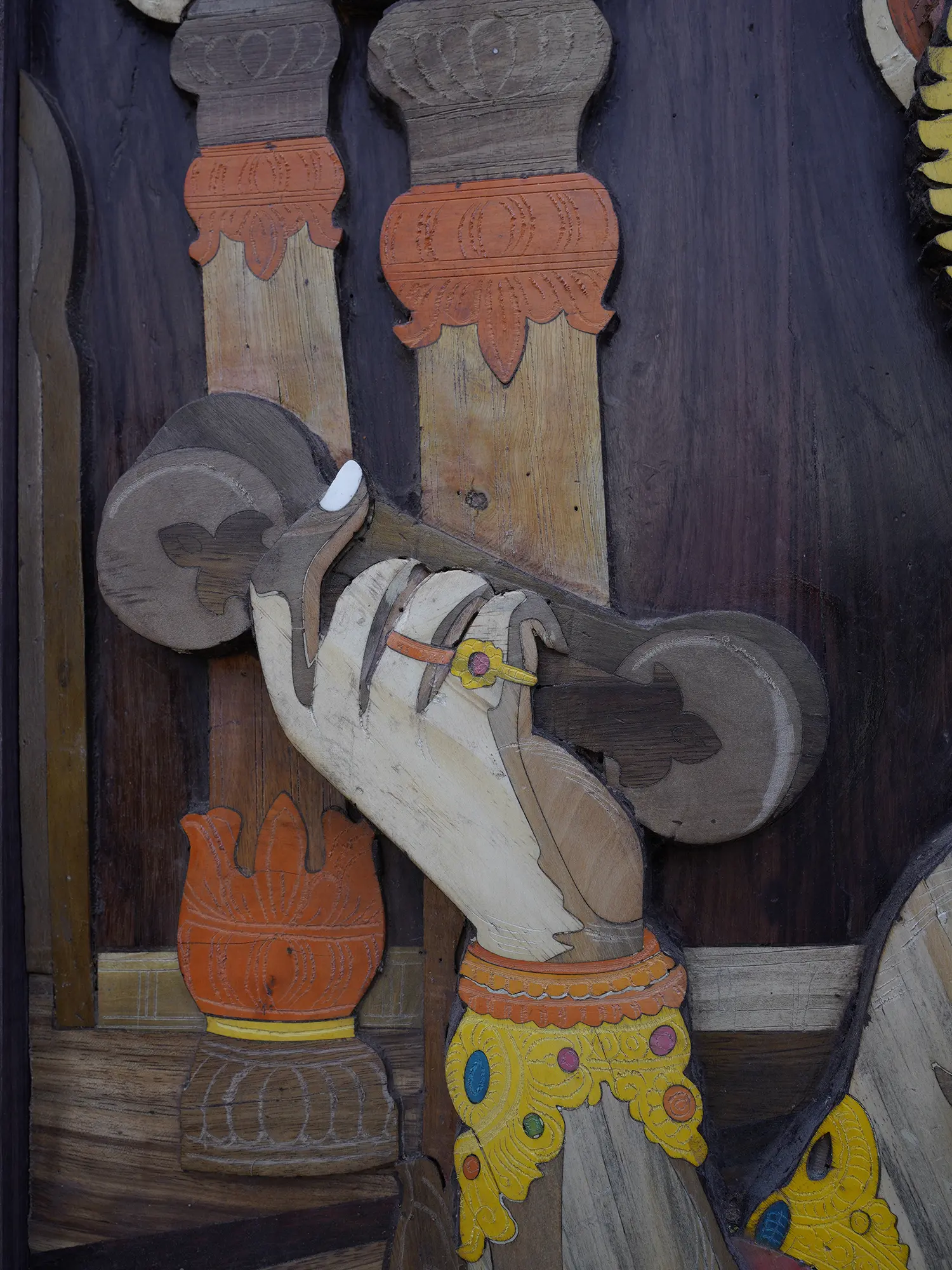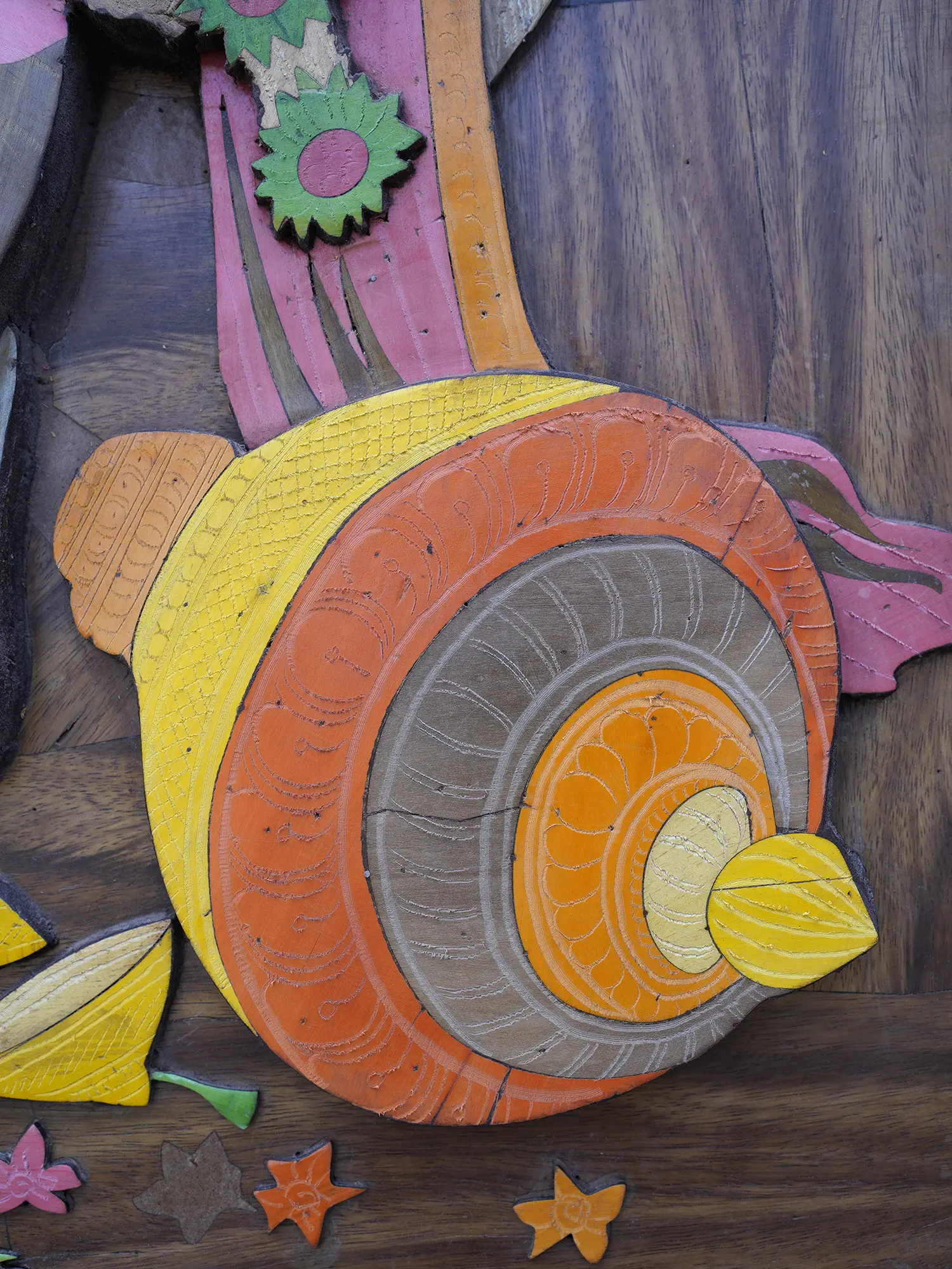 96" Large Geeta Upadesha with Vishvarupa of Lord Vishnu | Superfine Colorful 3D Panel in Rosewood with Inlay Work