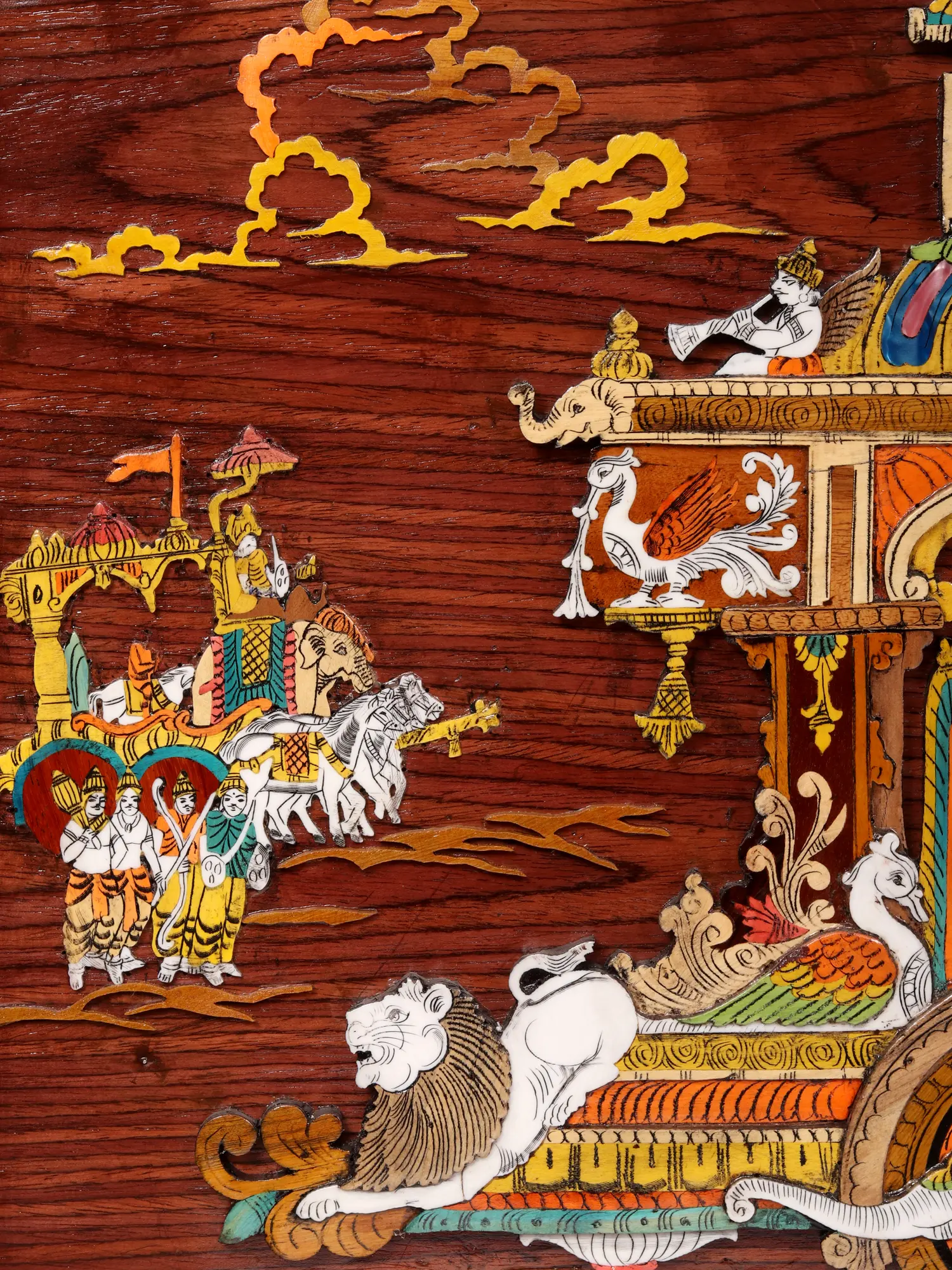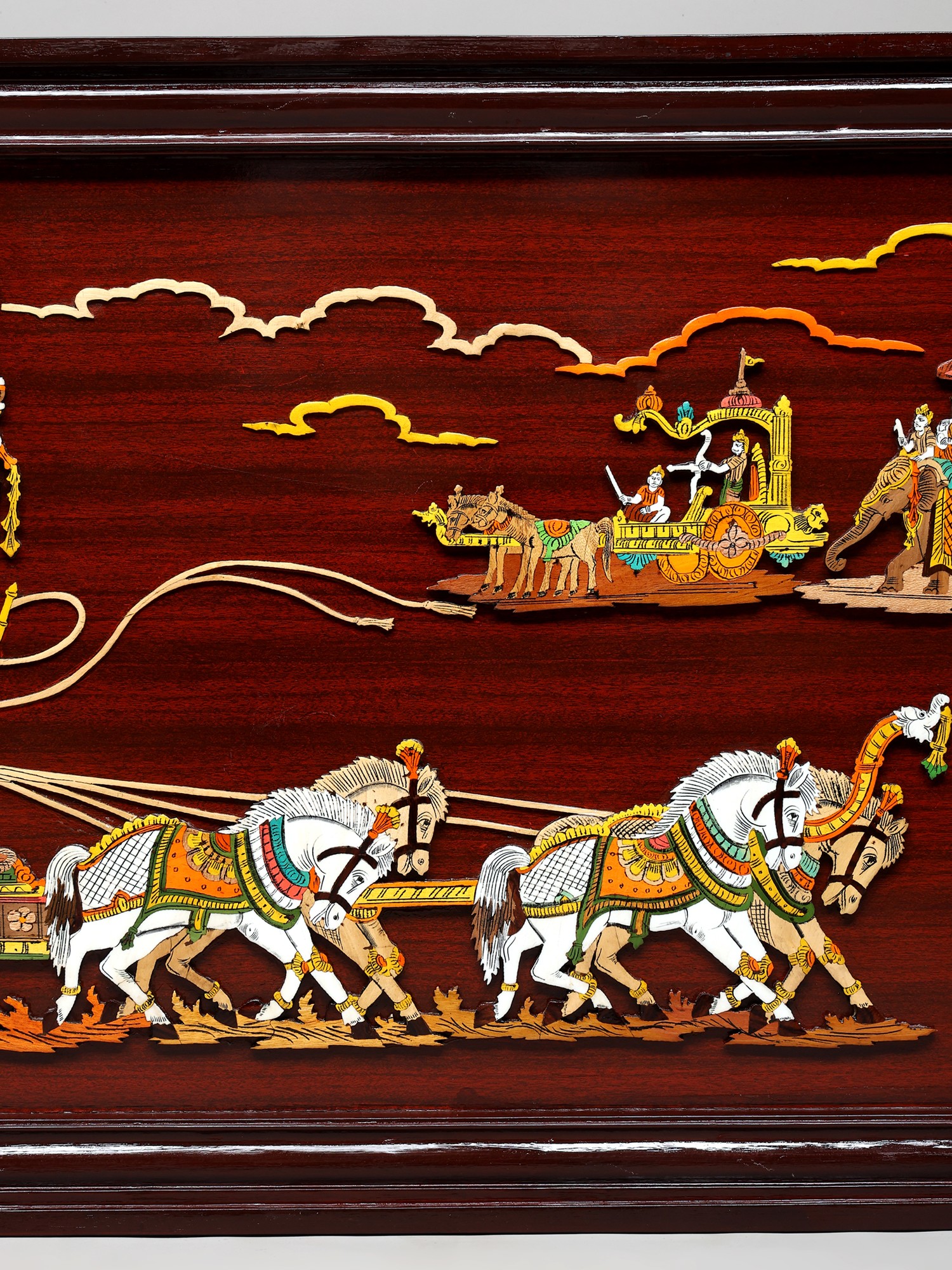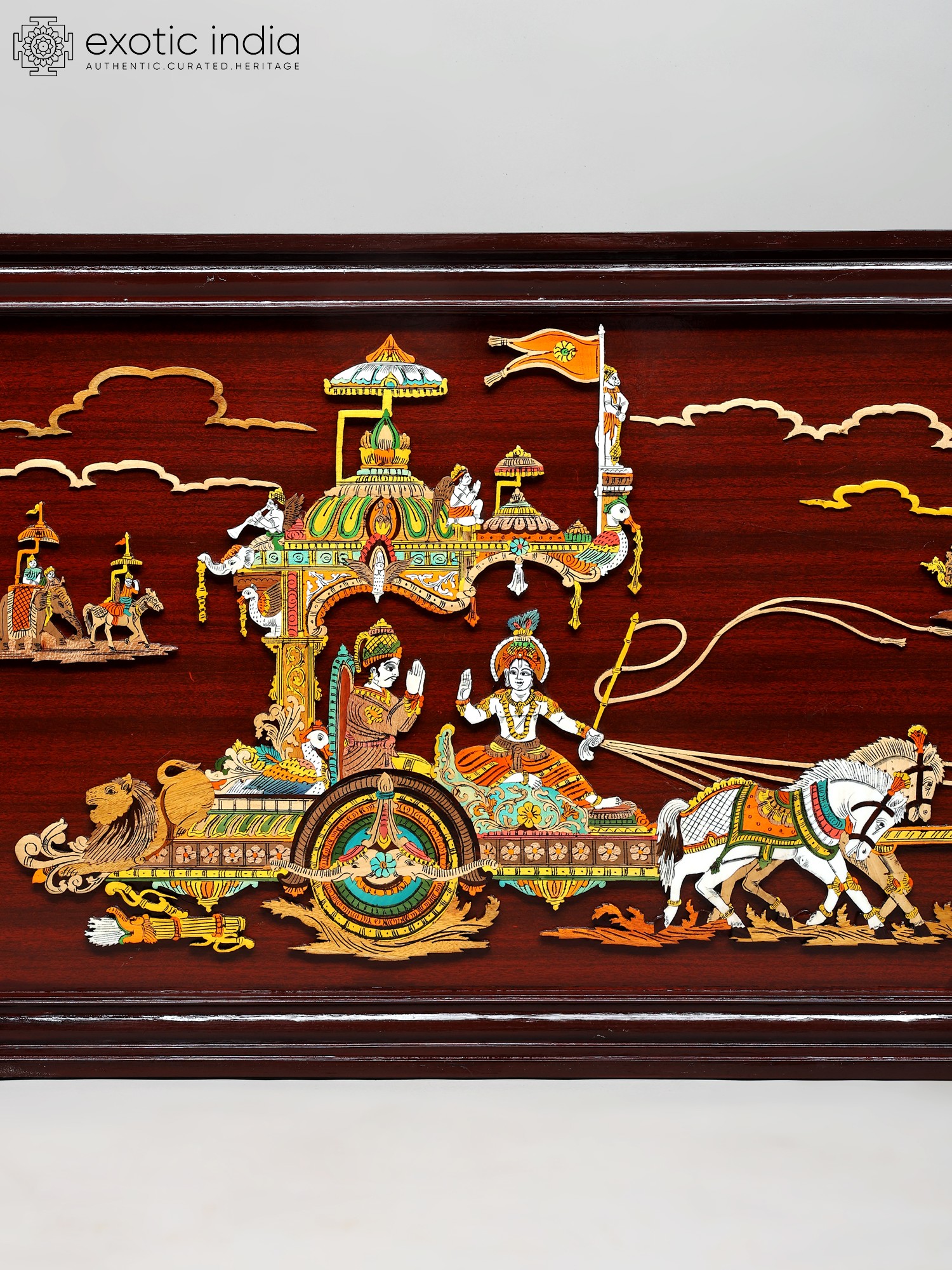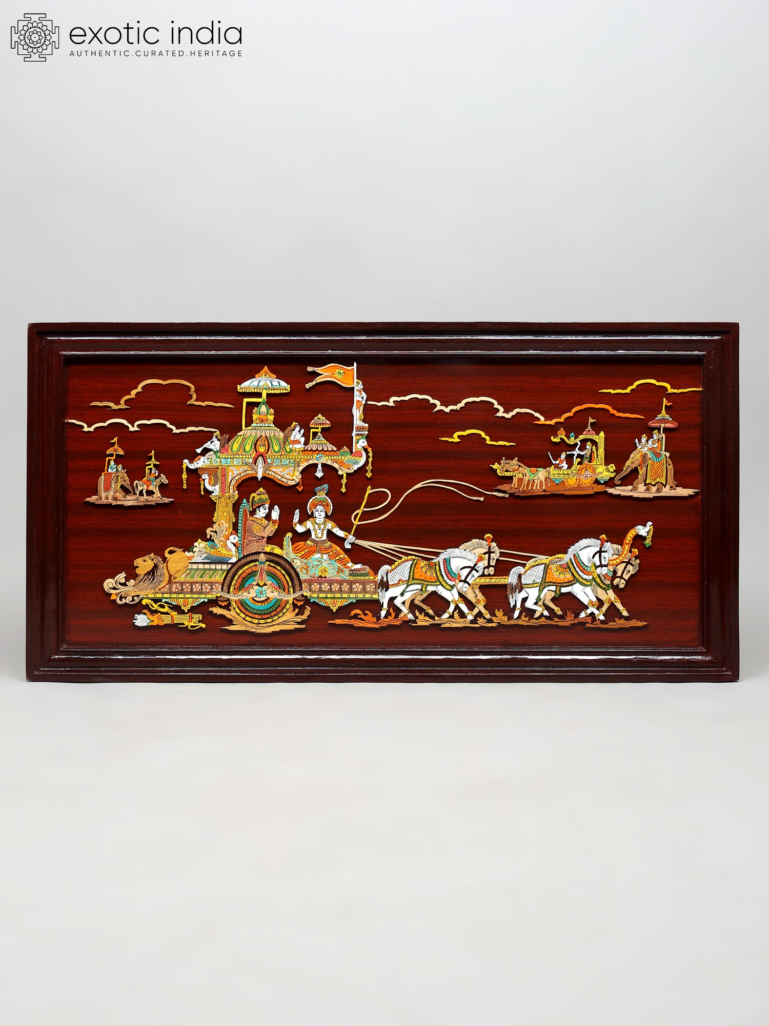 48" Mahabharata War View With Geeta Updesh | Natural Color On 3D Wood Painting With Inlay Work