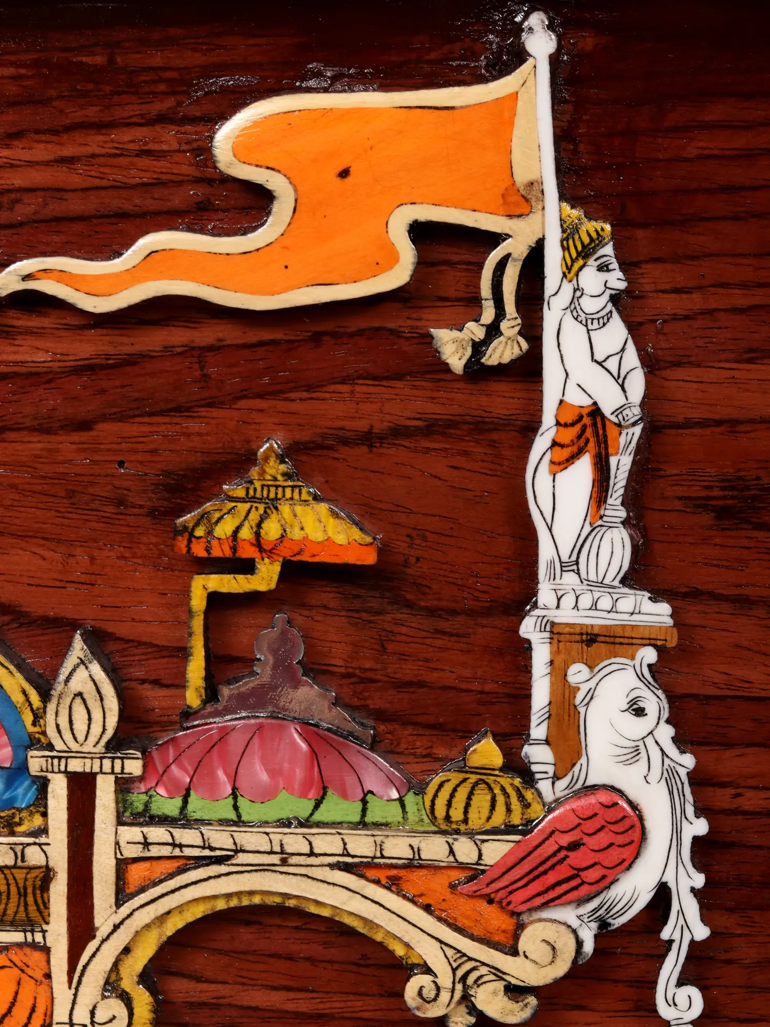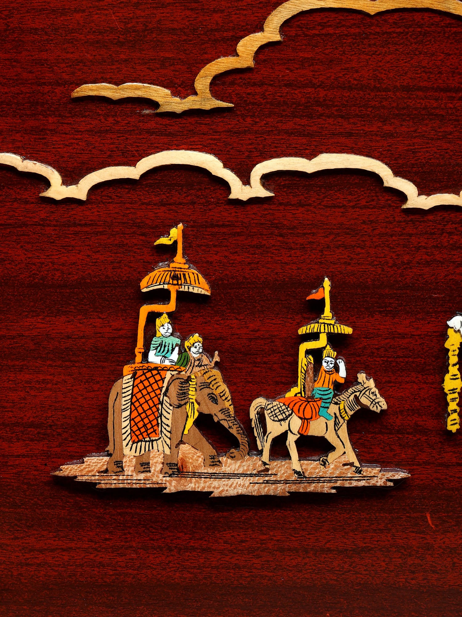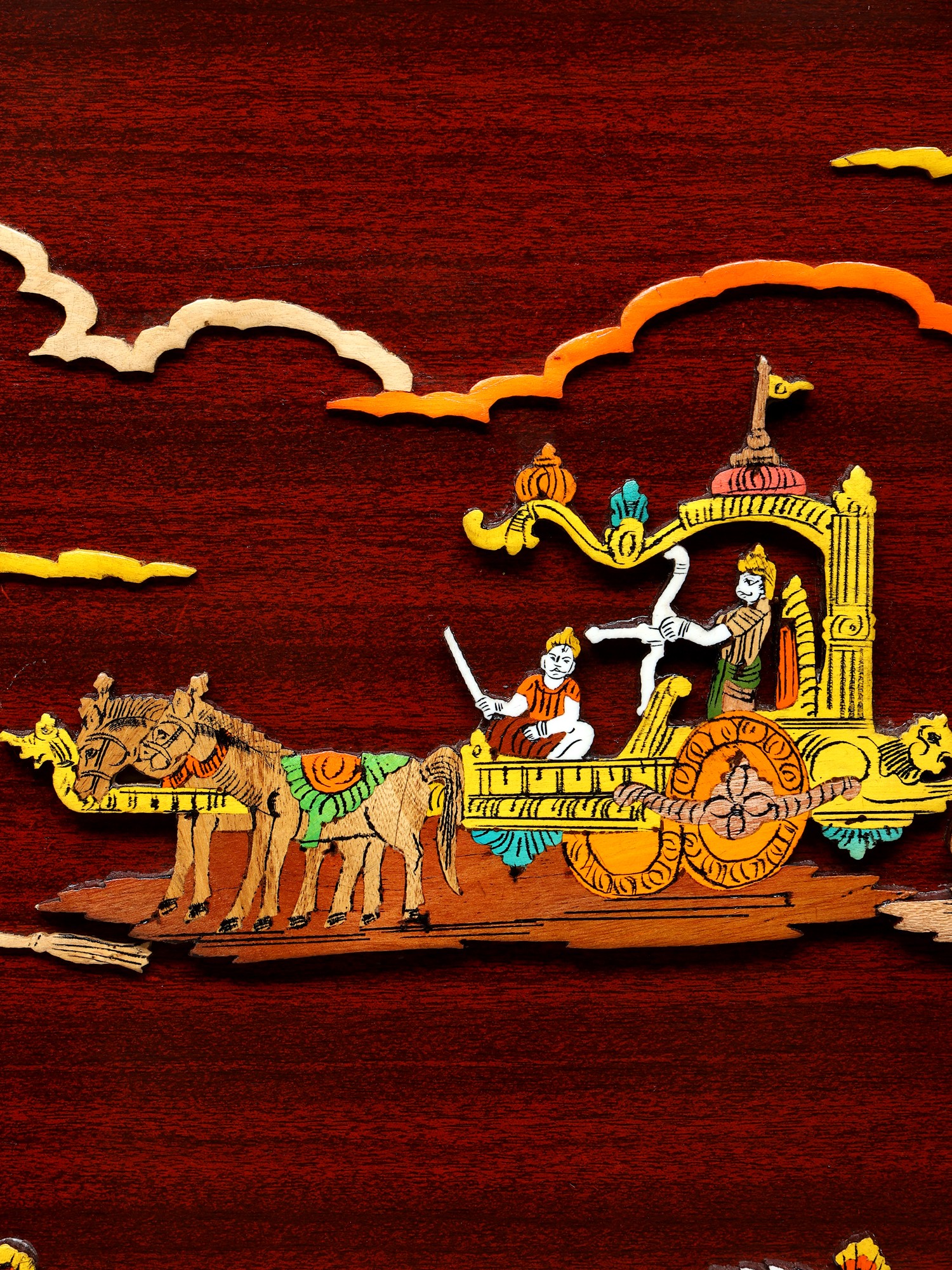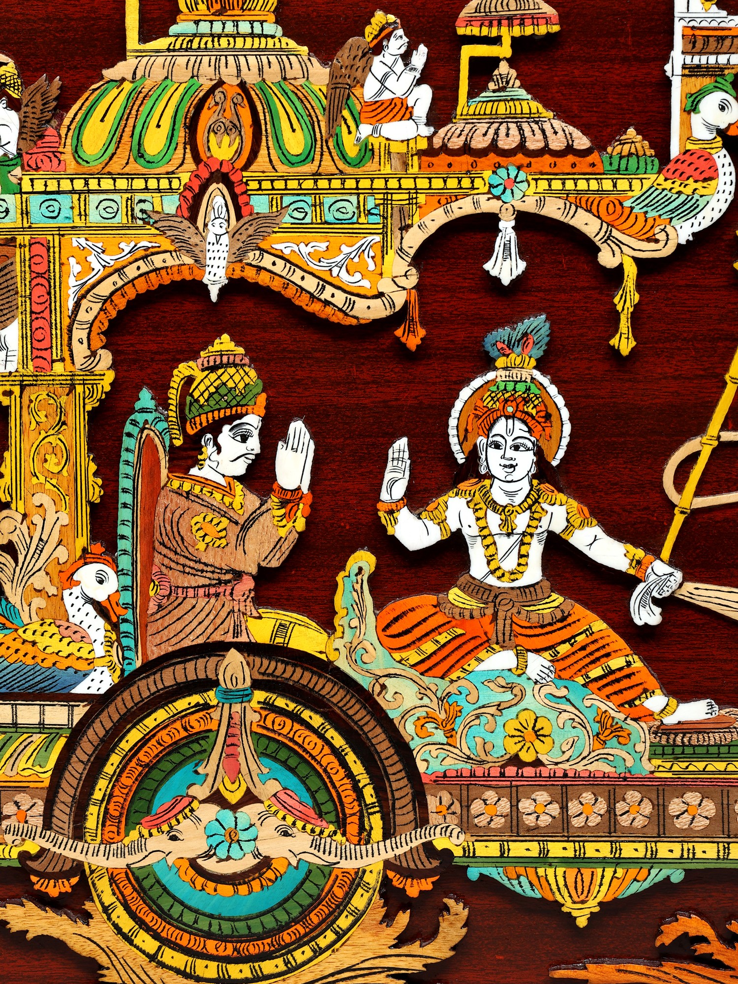 48" Mahabharata War View With Geeta Updesh | Natural Color On 3D Wood Painting With Inlay Work