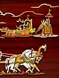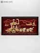 This 24" x 48" x 2" artwork is more than just a painting; it is a tangible representation of Indian artistry, mythology, and philosophy. The rich natural colors, meticulously crafted inlay work, and the powerful depiction of a pivotal moment in the Mahabharata create a piece that transcends the boundaries of mere decoration. It becomes a statement piece, a focal point, and a conversation starter, enriching any space with its history, beauty, and profound significance. Own a piece of India's rich cultural heritage; own this captivating depiction of the Mahabharata.