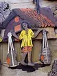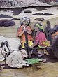 Village Life | Natural Color on Wood Panel with Inlay Work
