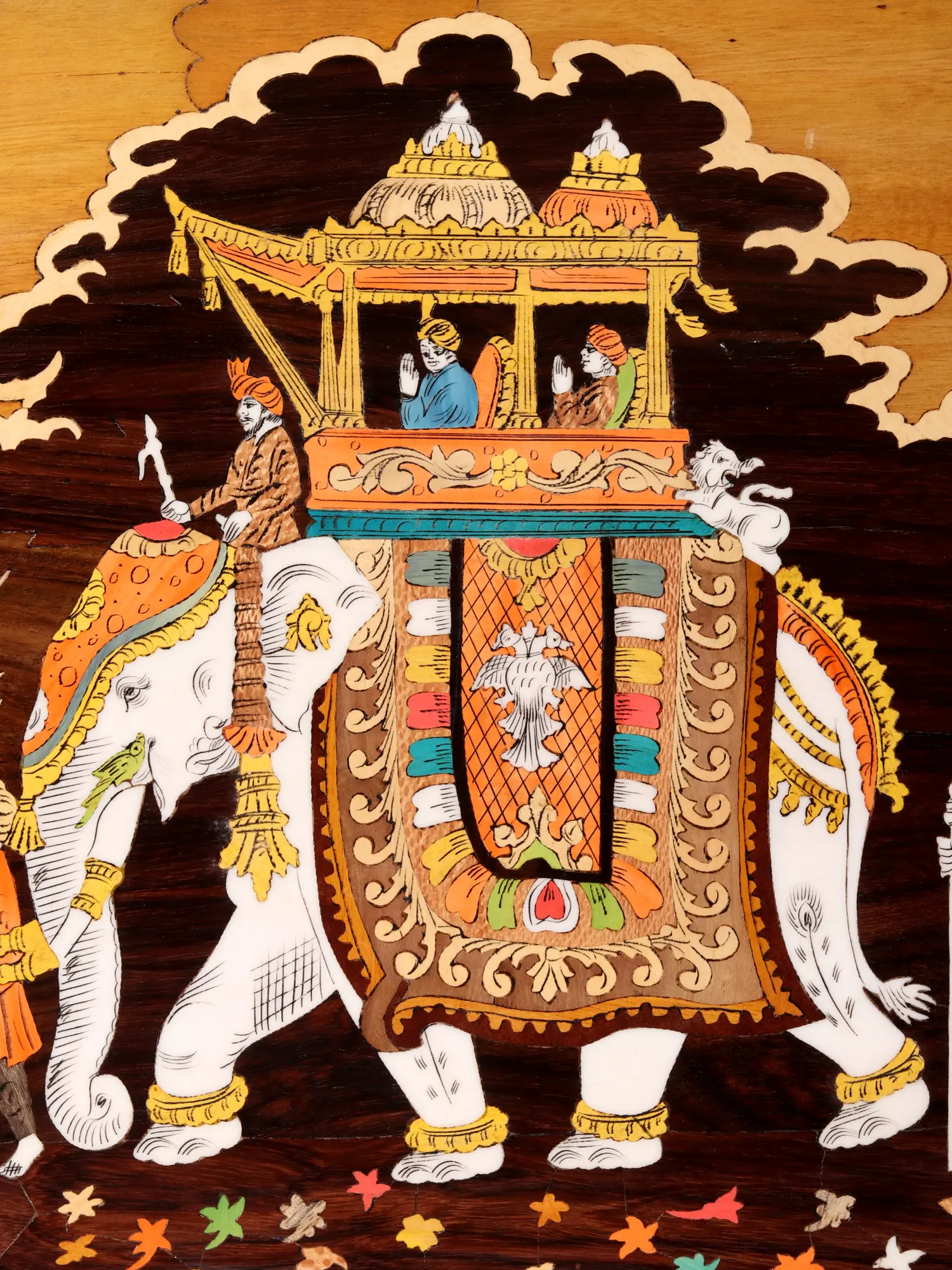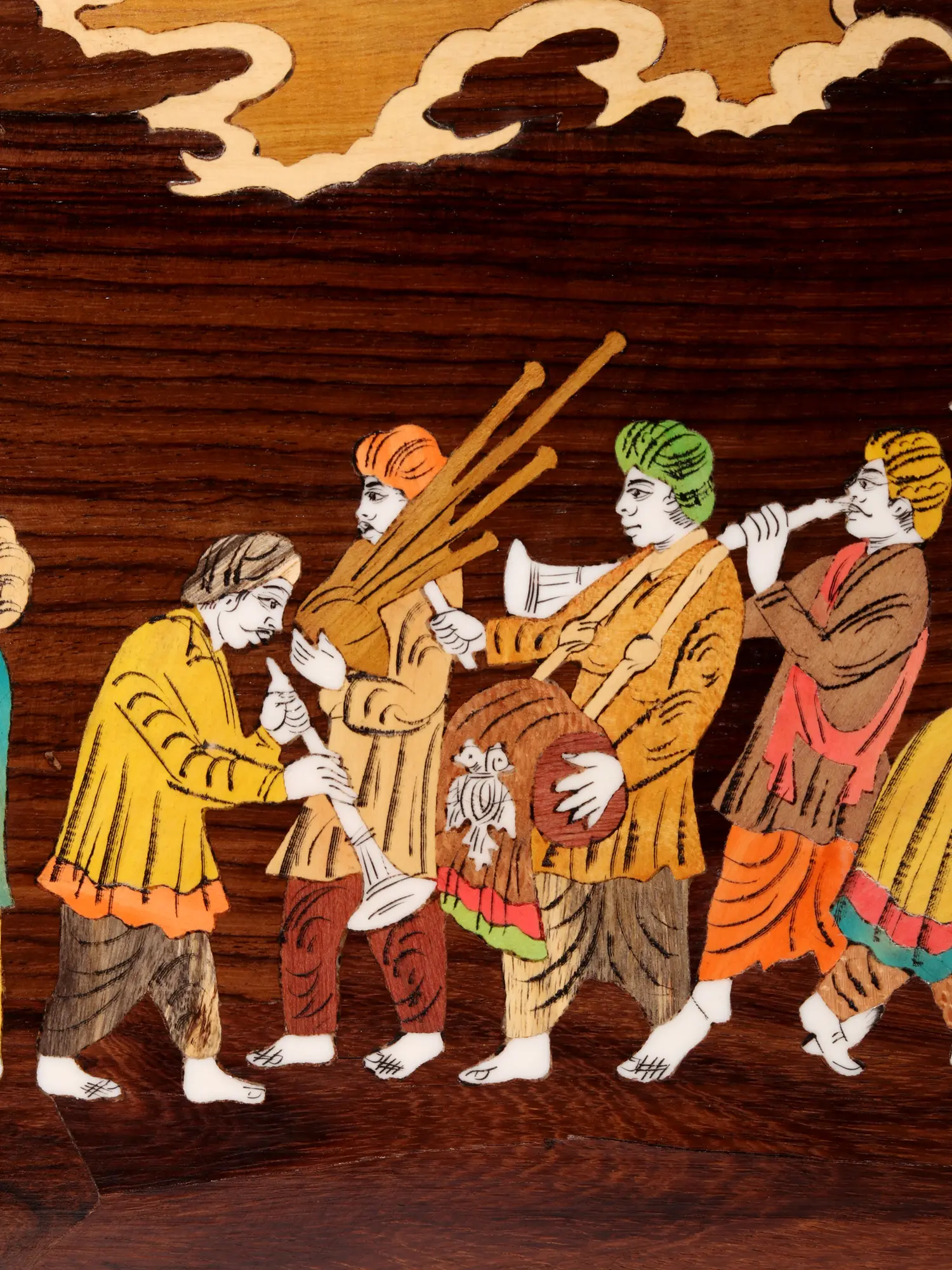 Wood inlay is a historically significant art form from the 18th century. It arrived in India through Srirangaptnam in Mysore from Persia but has become an inevitable part of the Indian heritage. Tipu Sultan and the Wodeyars/Wadiyars are credited with the growth of this 400-year-old art form in Mysore and its neighboring areas.