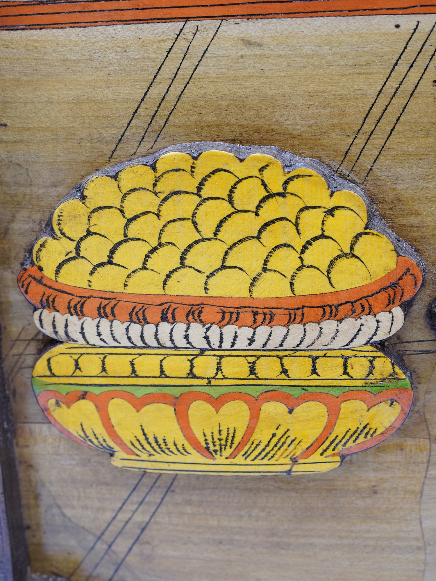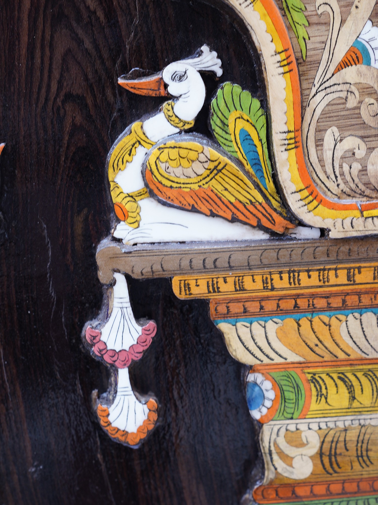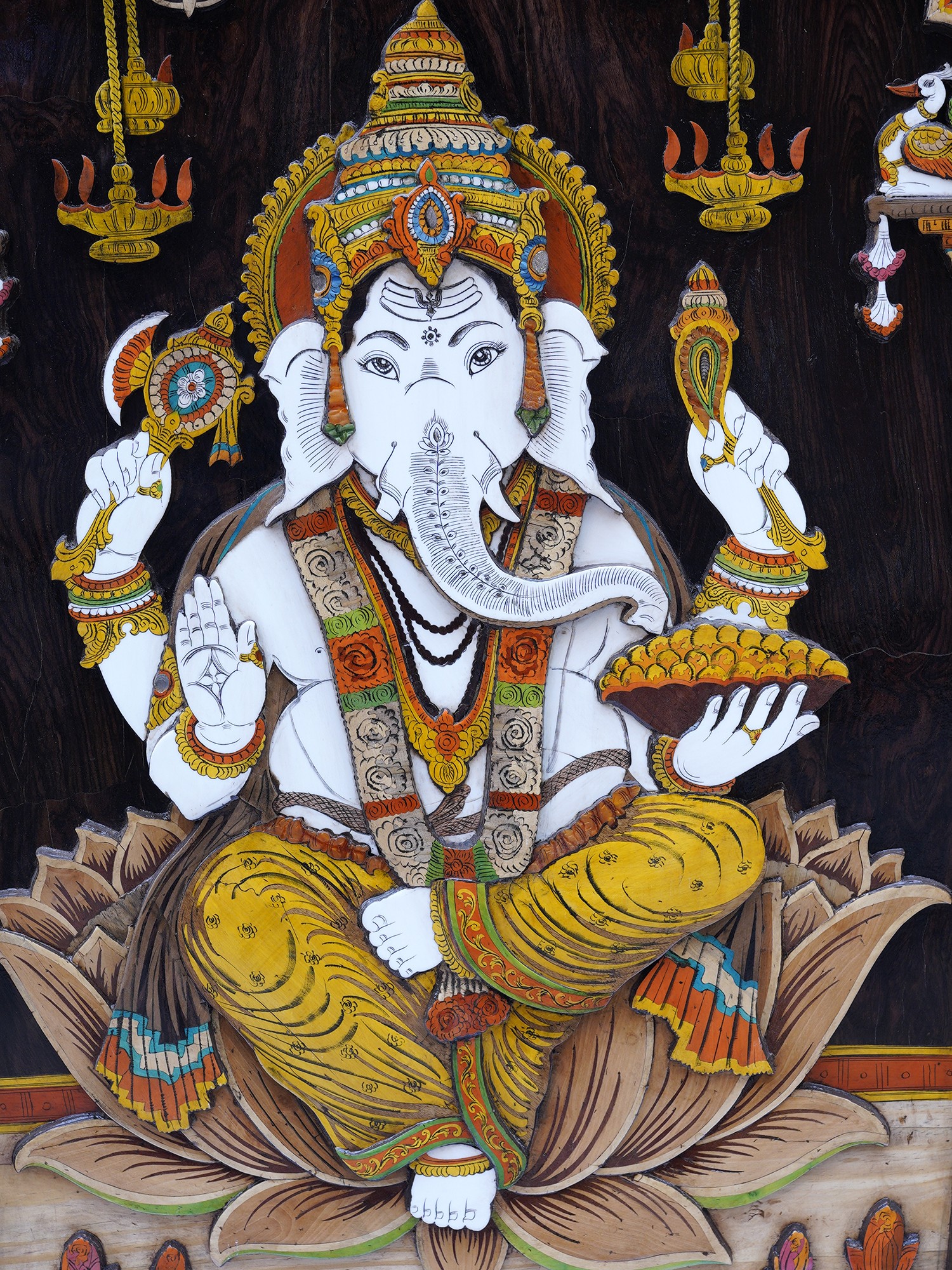 Chaturbhuja Ganesha Seated on Lotus | Wood Panel with Inlay Work