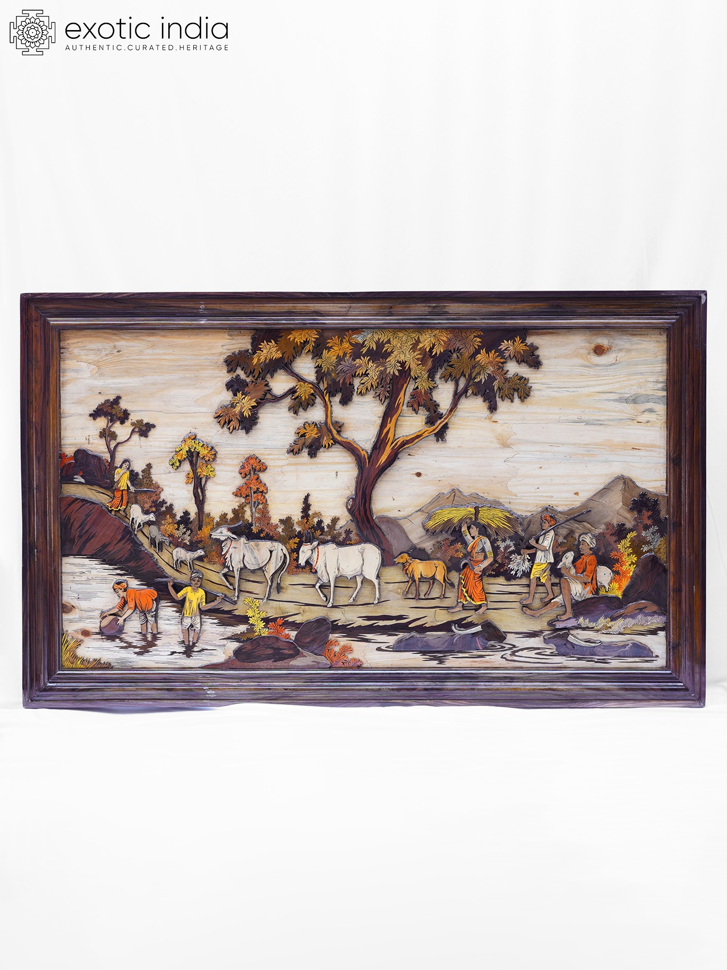Village Life | 3D Art | Wood Wall Panel with Inlay Work
