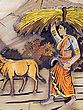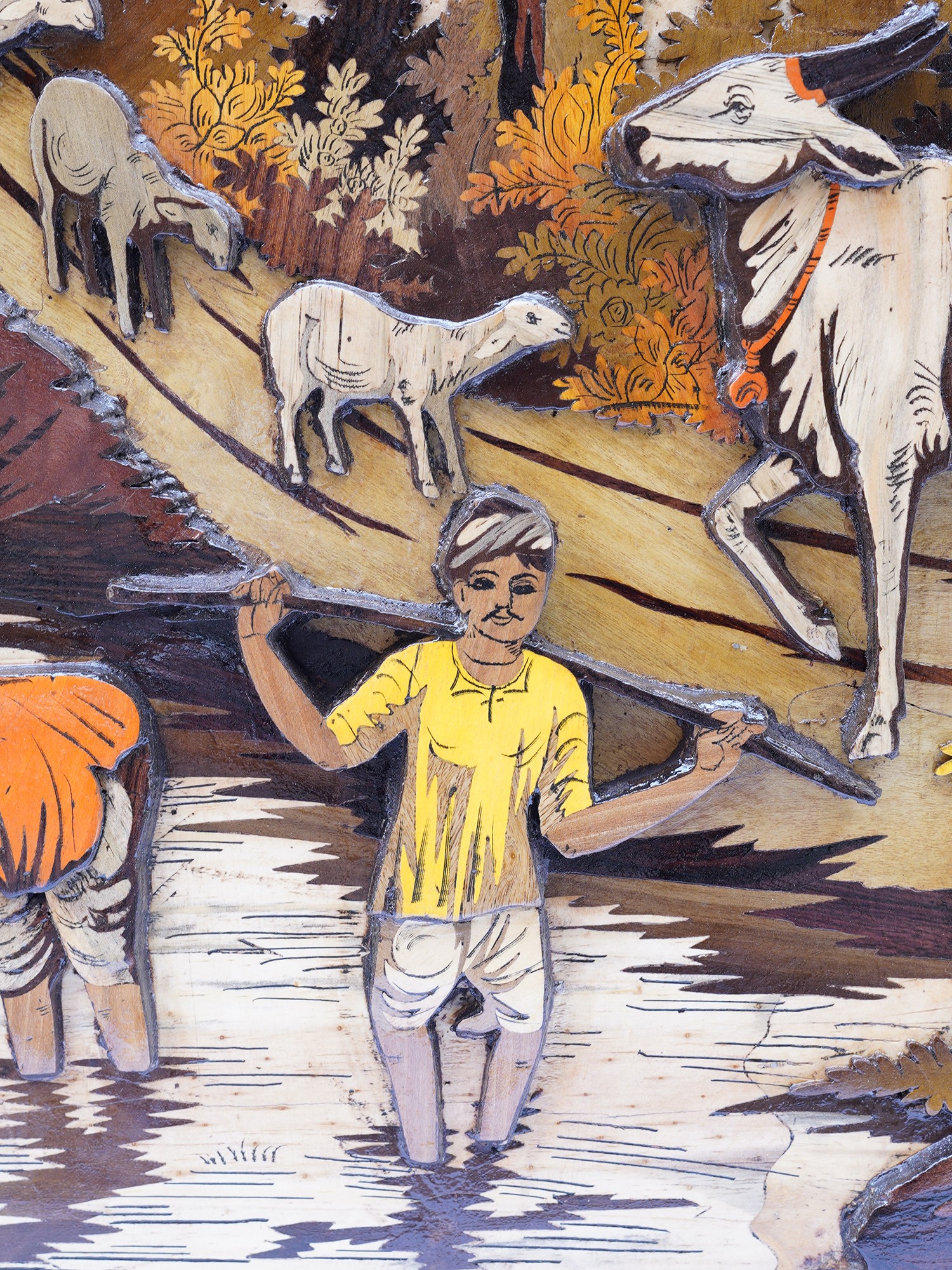 31" Farmer With Cows - Village Life | Natural Color On Wood Panel With Inlay Work