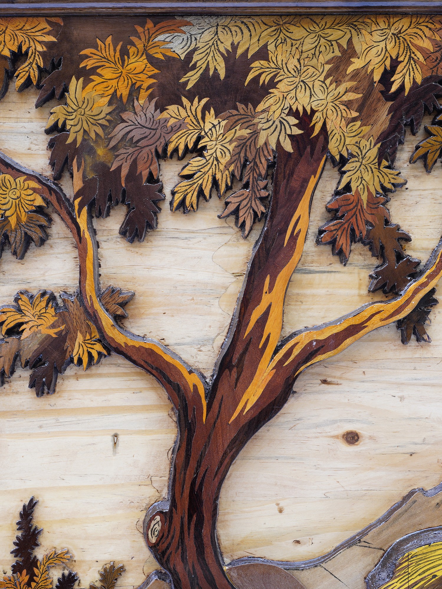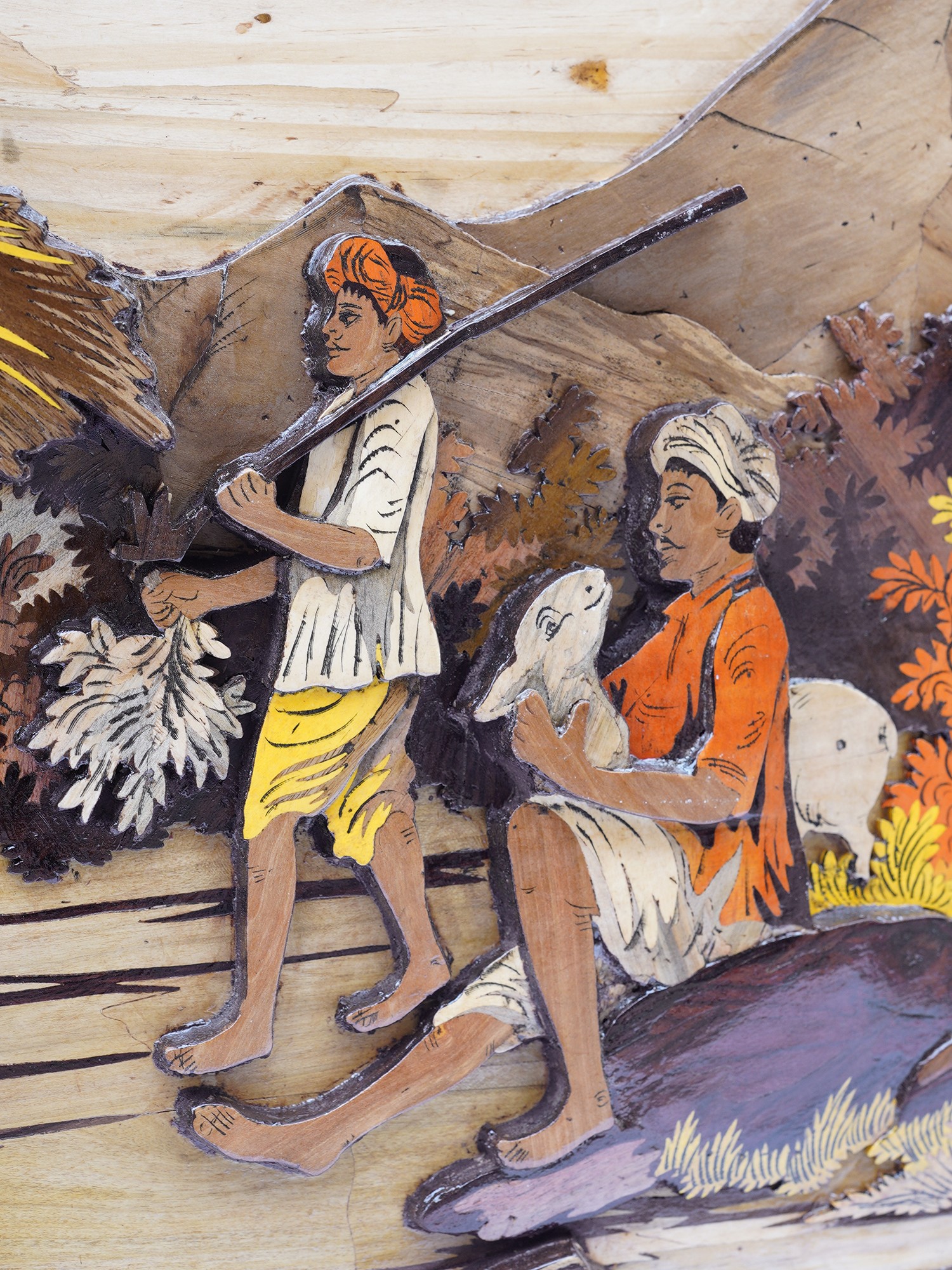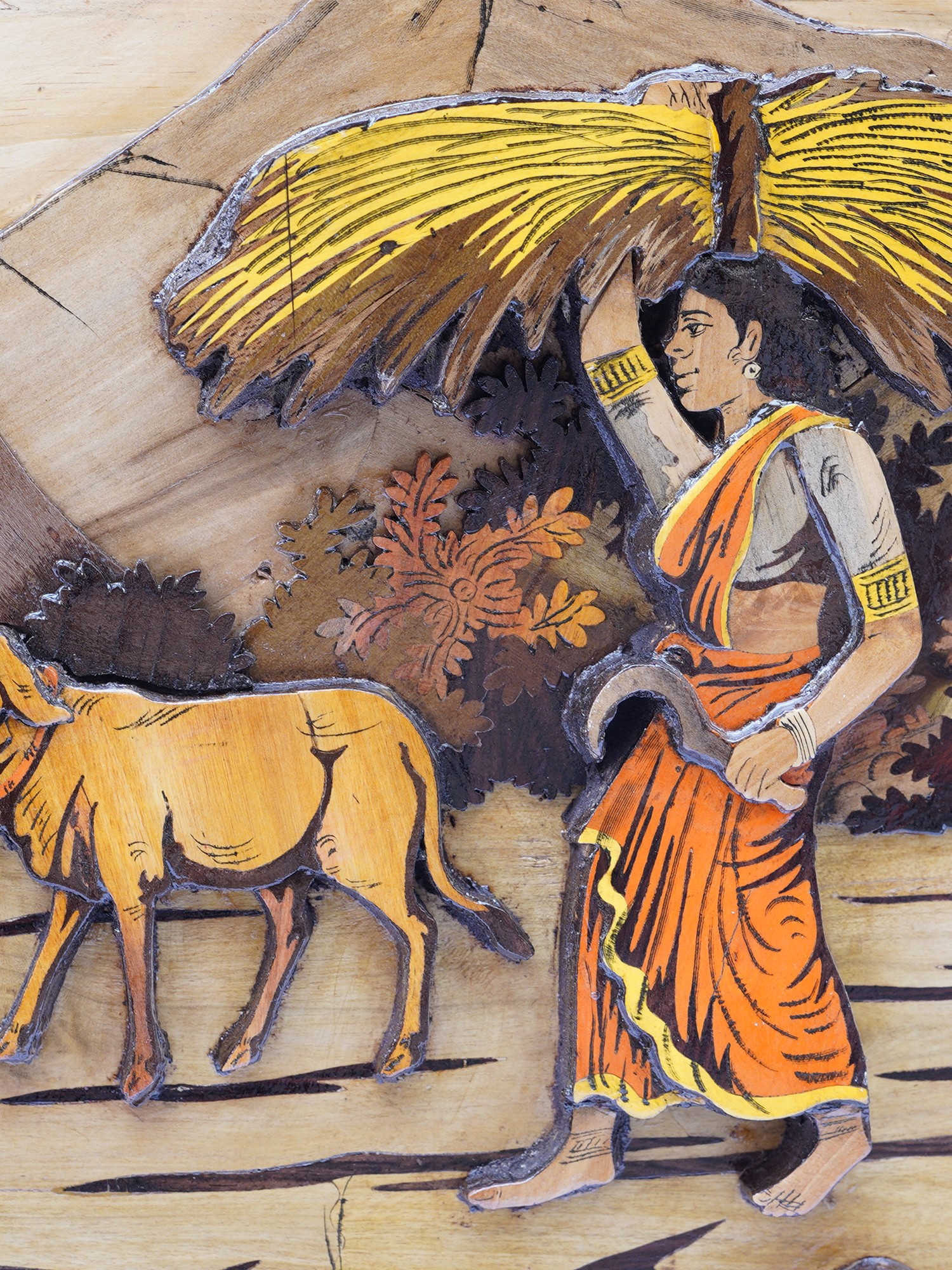 48" View of Village Life | 3D Wall Panel in Rosewood with Inlay Work