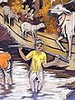 Village Life | Natural Color on Wood Panel with Inlay Work