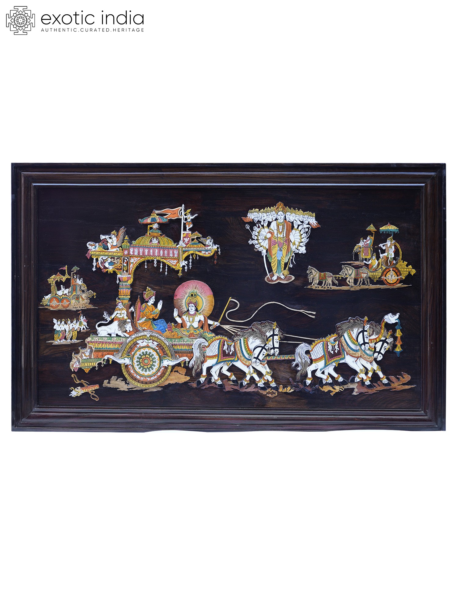 61" Gita Updesh with the Vishwaroop of Lord Vishnu | Rosewood 3D Panel with Inlay Work