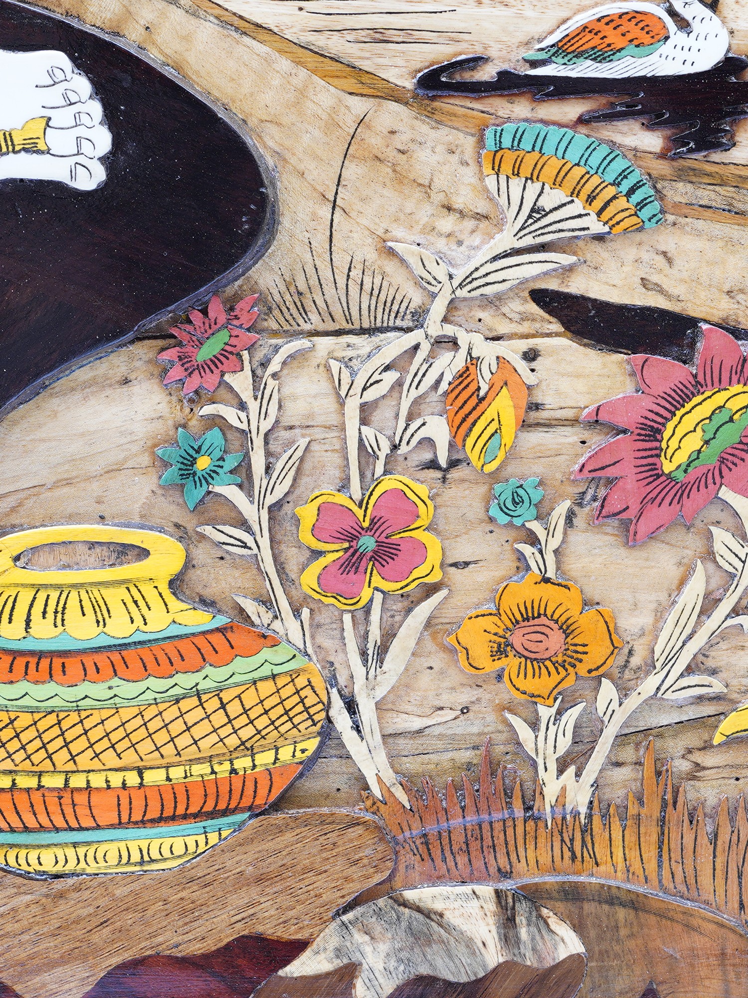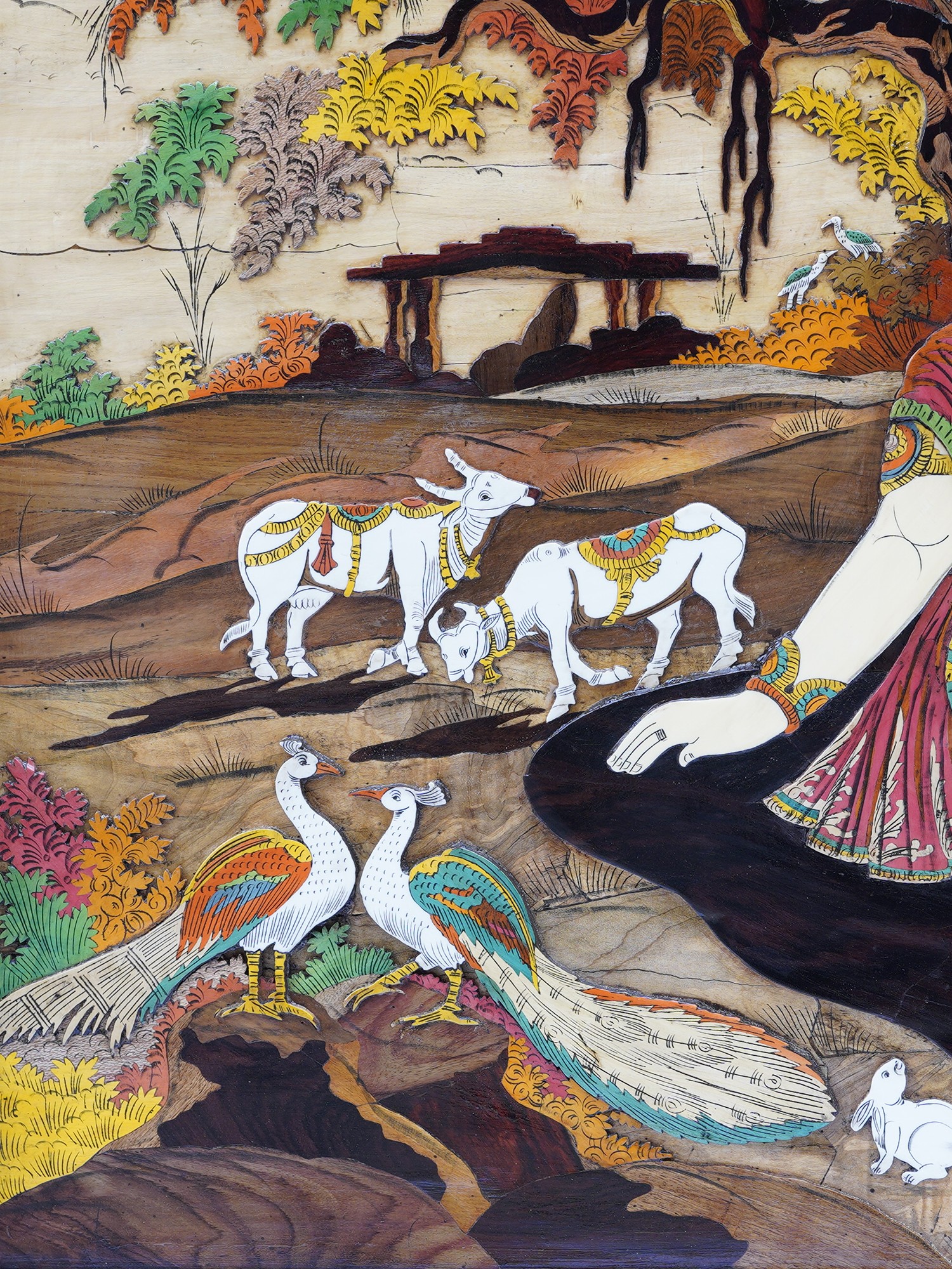 73" Radha Krishna Leela - Stories of Lord Krishna | Rosewood 3D Panel with Inlay Work