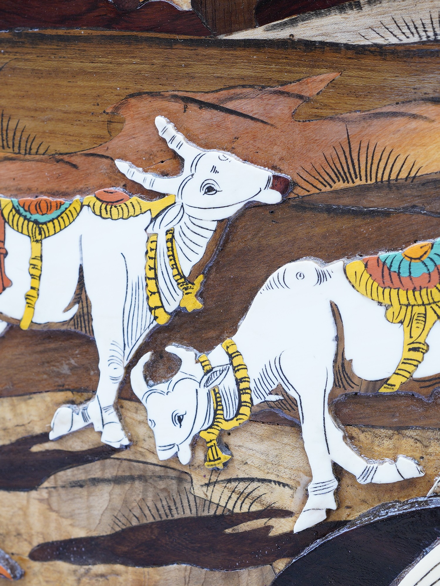 61" Daily Work in Village - Rural View | Rosewood 3D Panel with Inlay Work