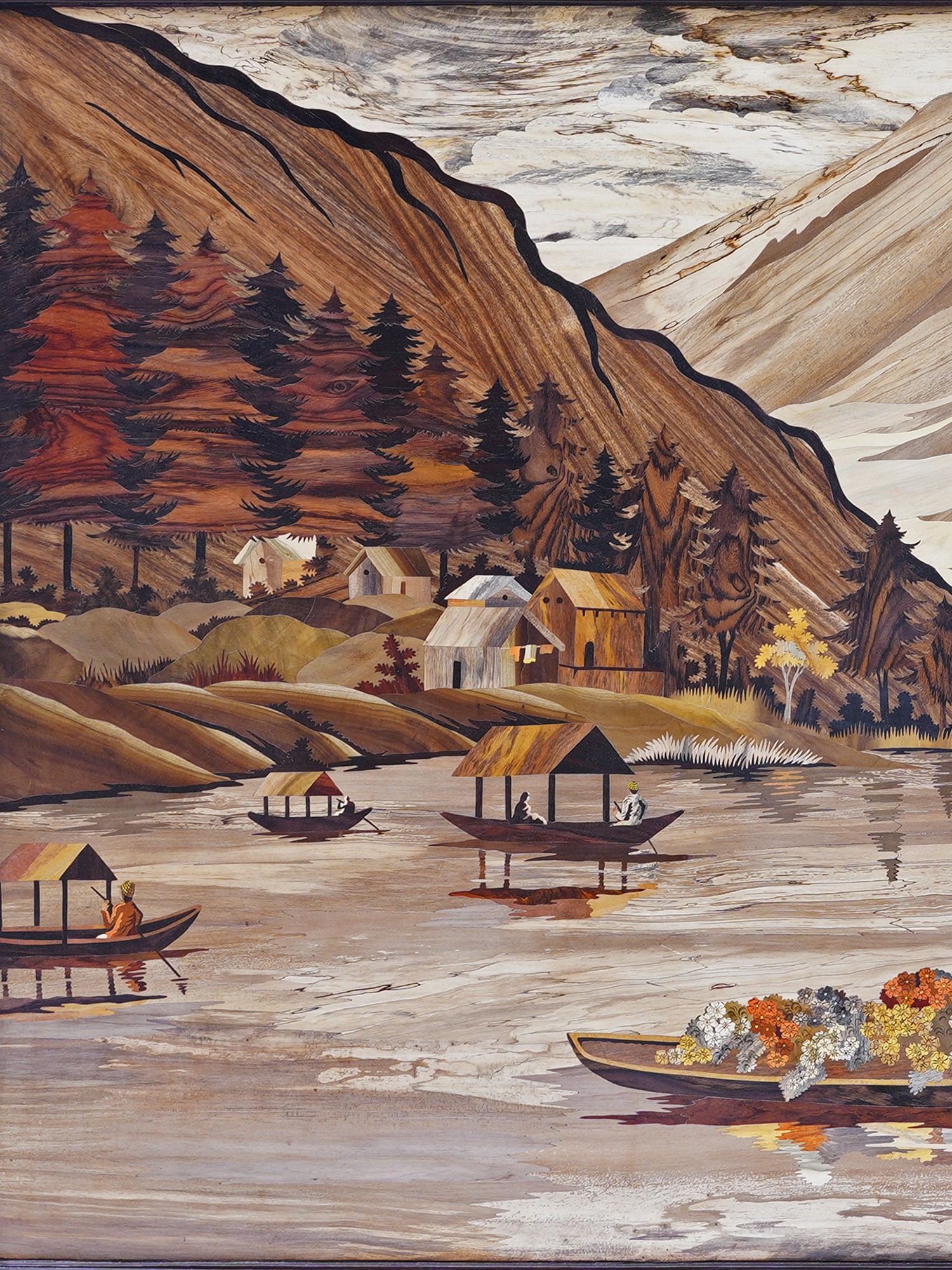 72" Boat Ride in the Kashmir Lake | Rosewood 3D Panel with Inlay Work