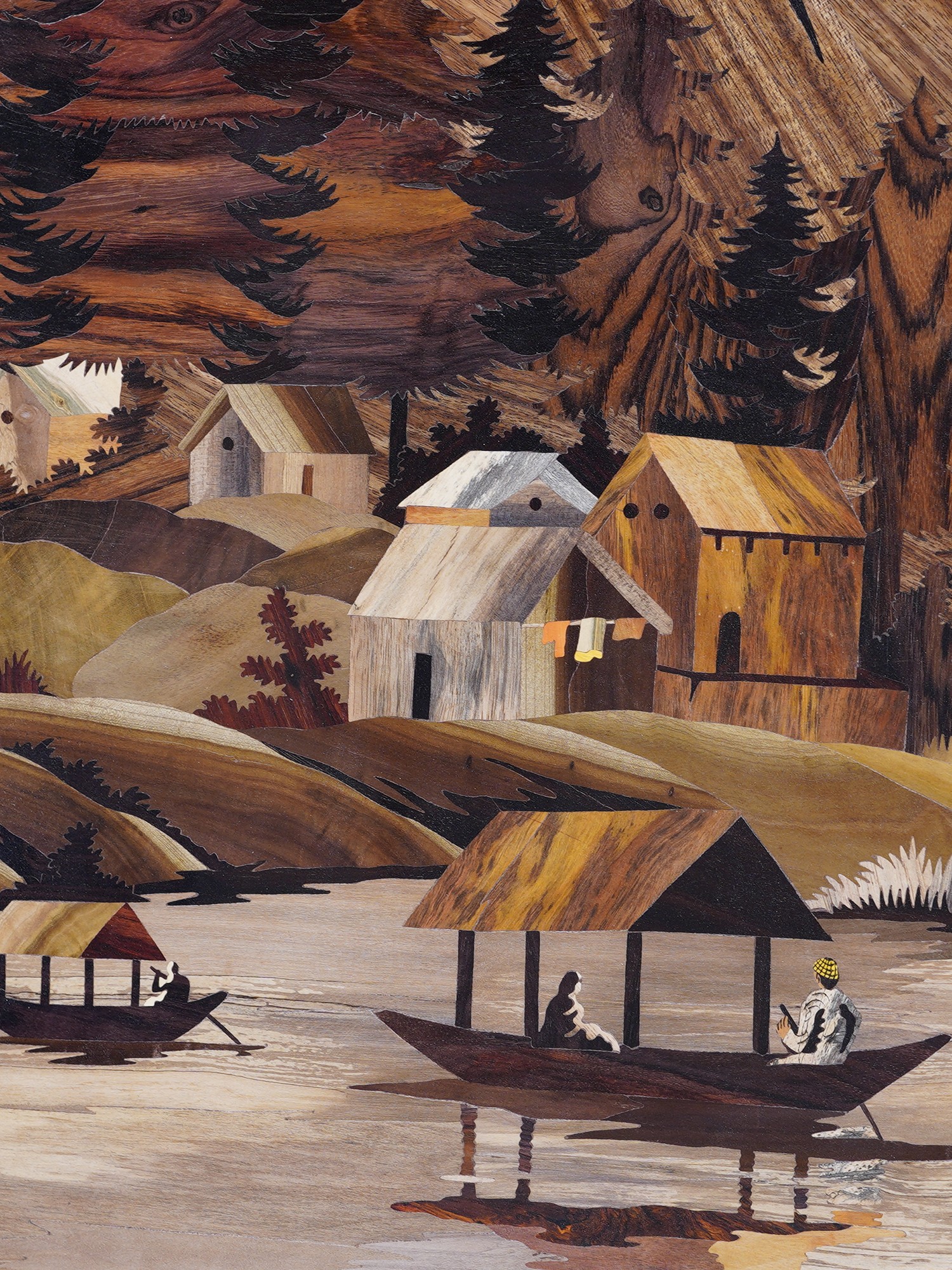 61" Daily Routine View by the Lake - Rural Life | Rosewood 3D Panel with Inlay Work