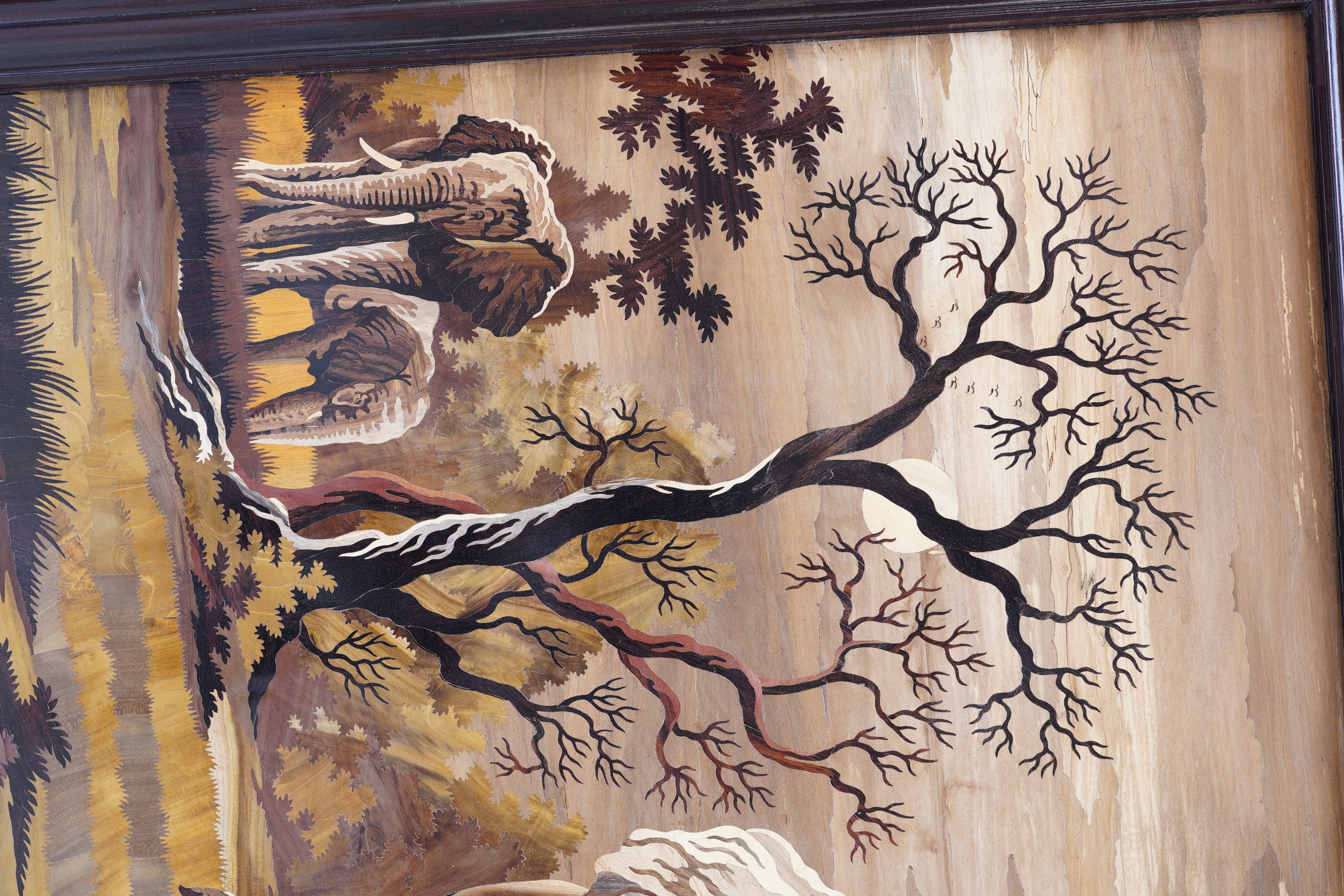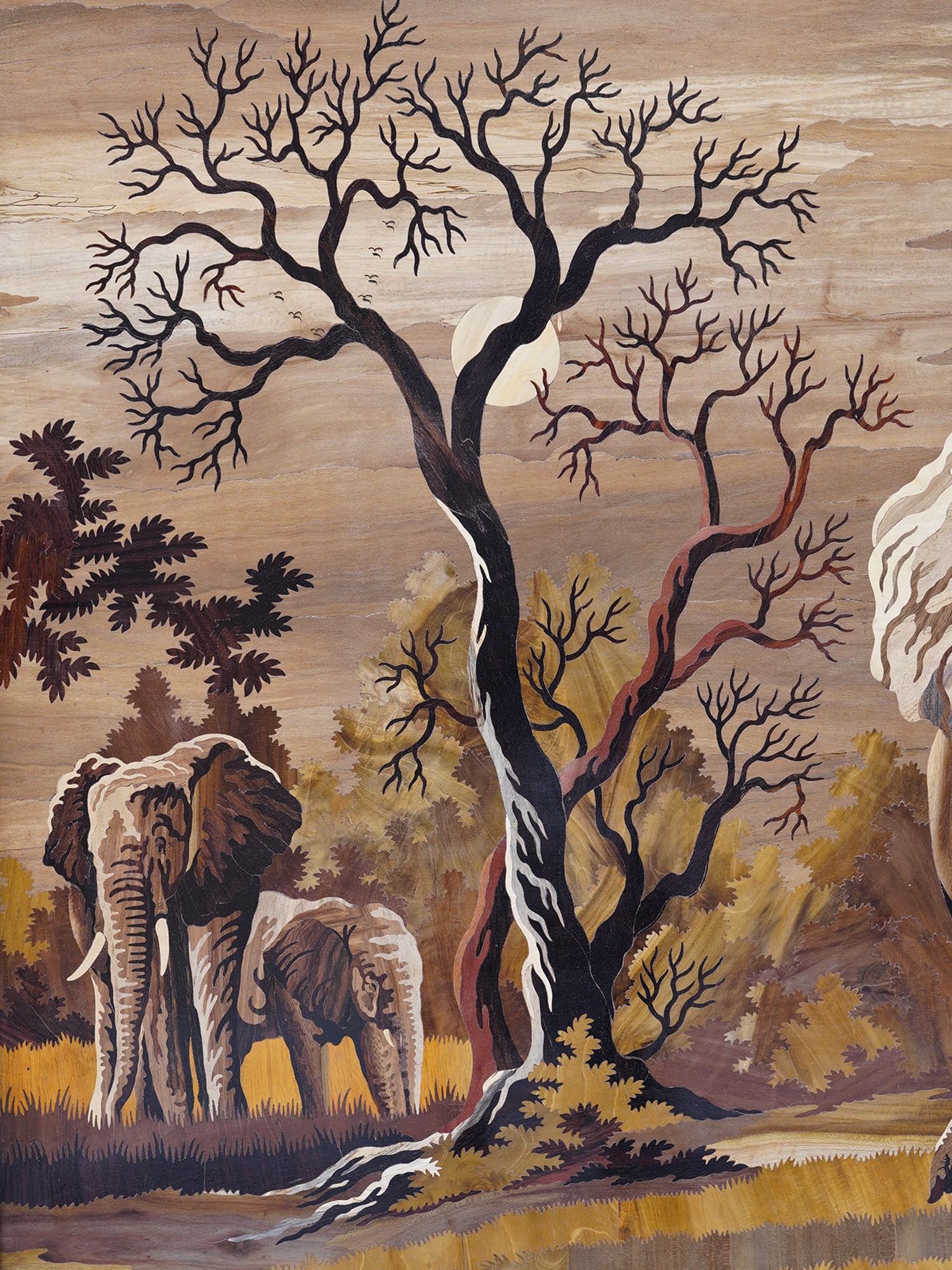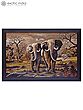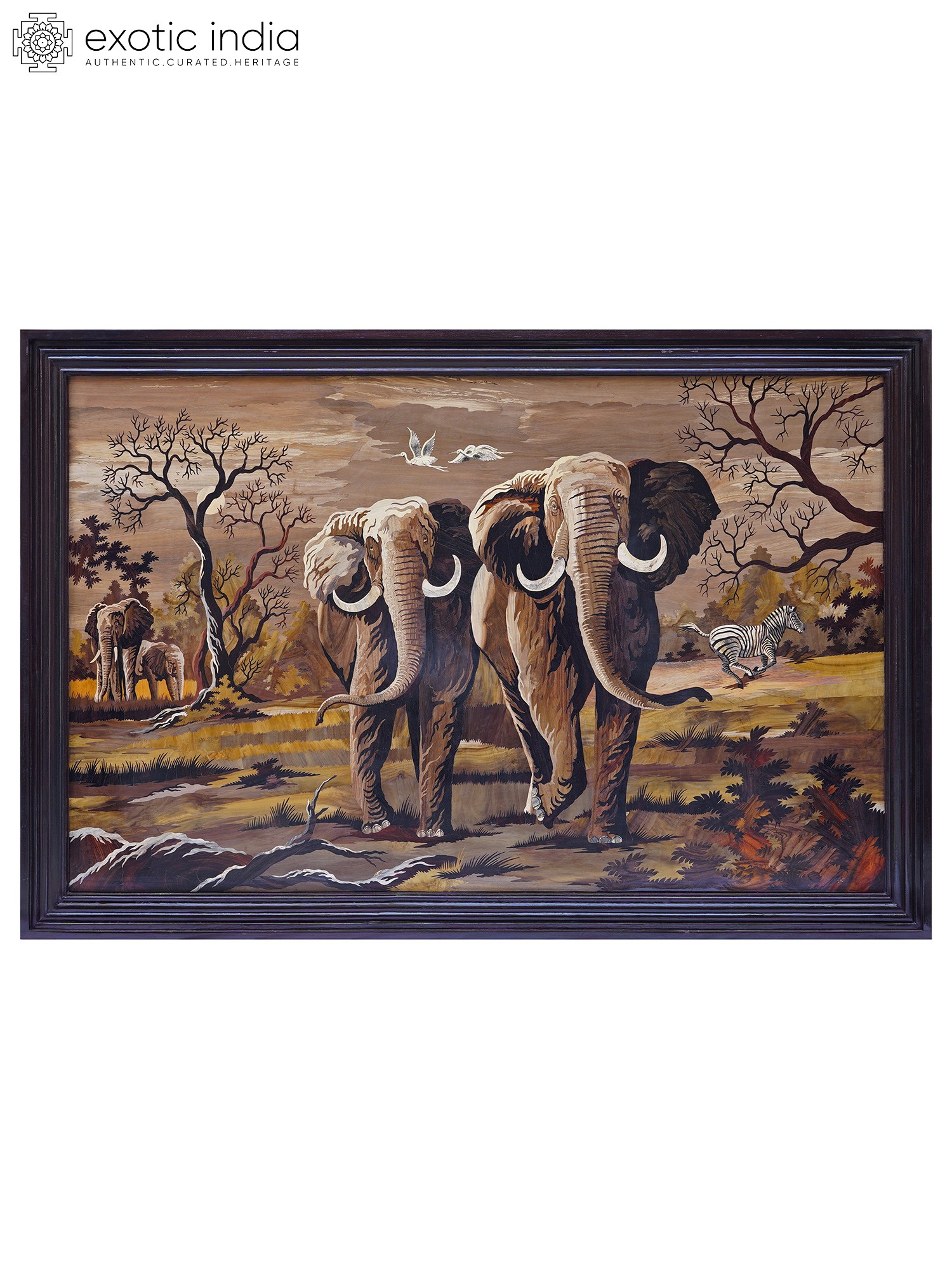 37" Elephants In Jungle | Natural Color On Wood Panel With Inlay Work