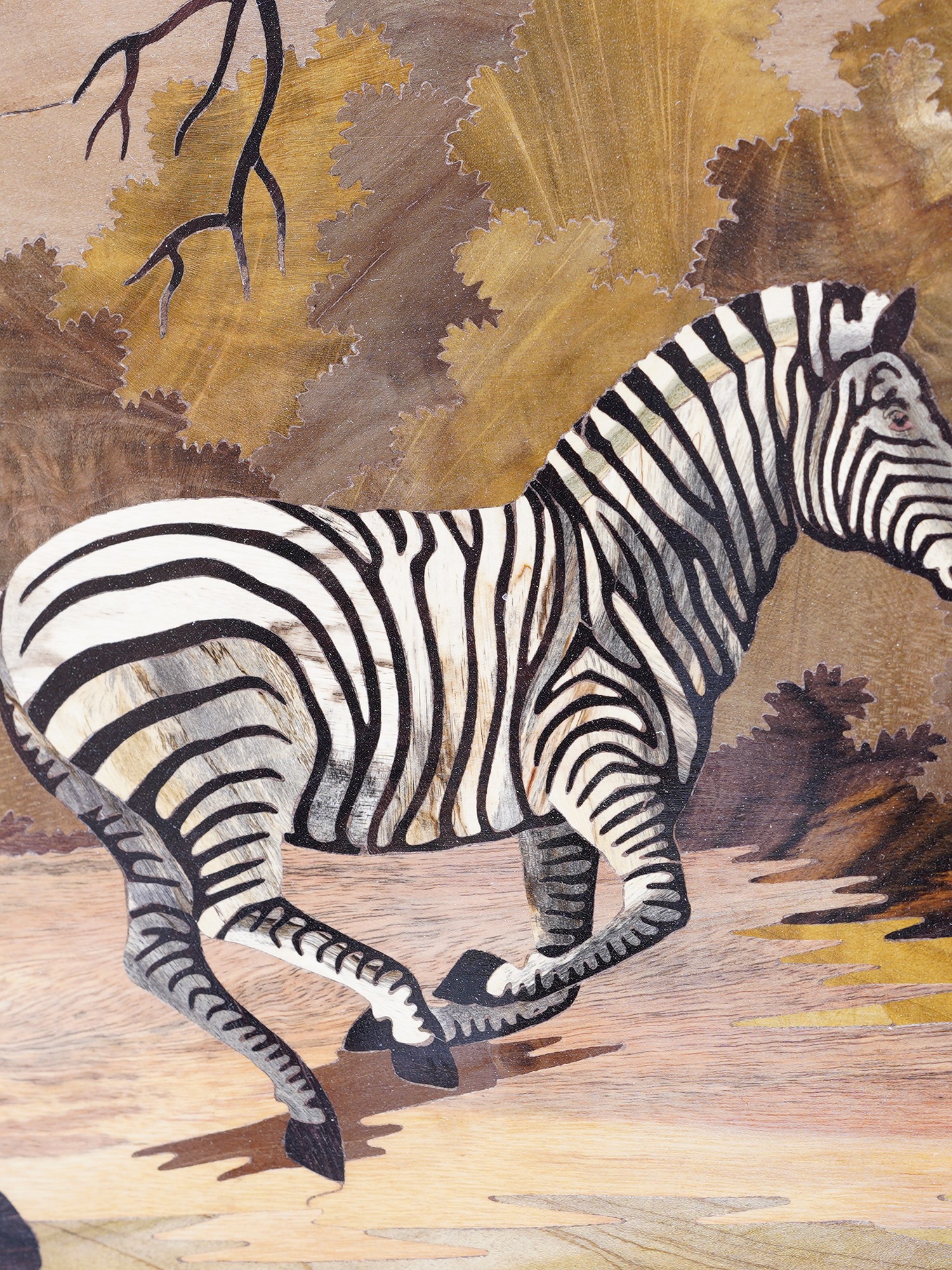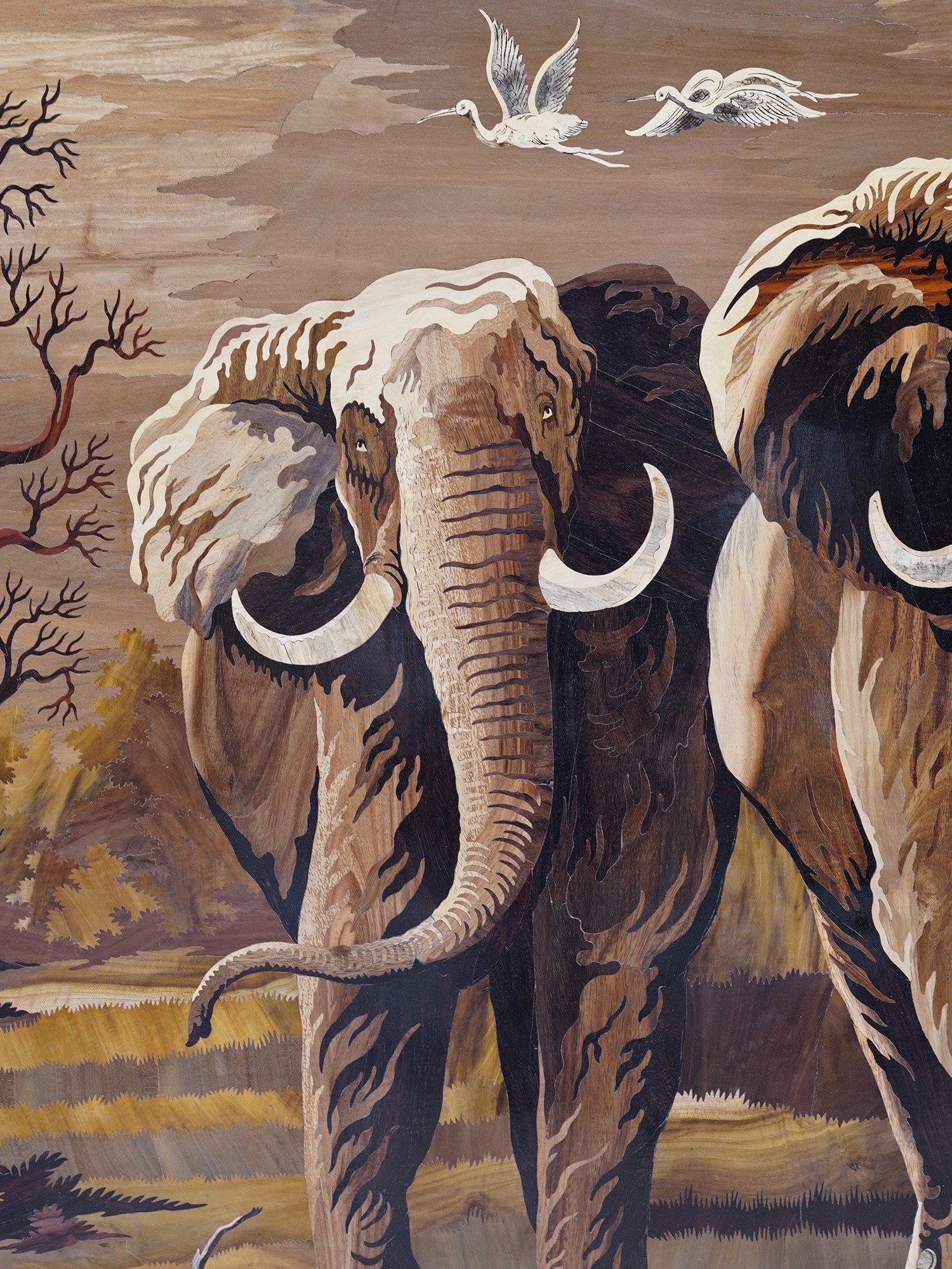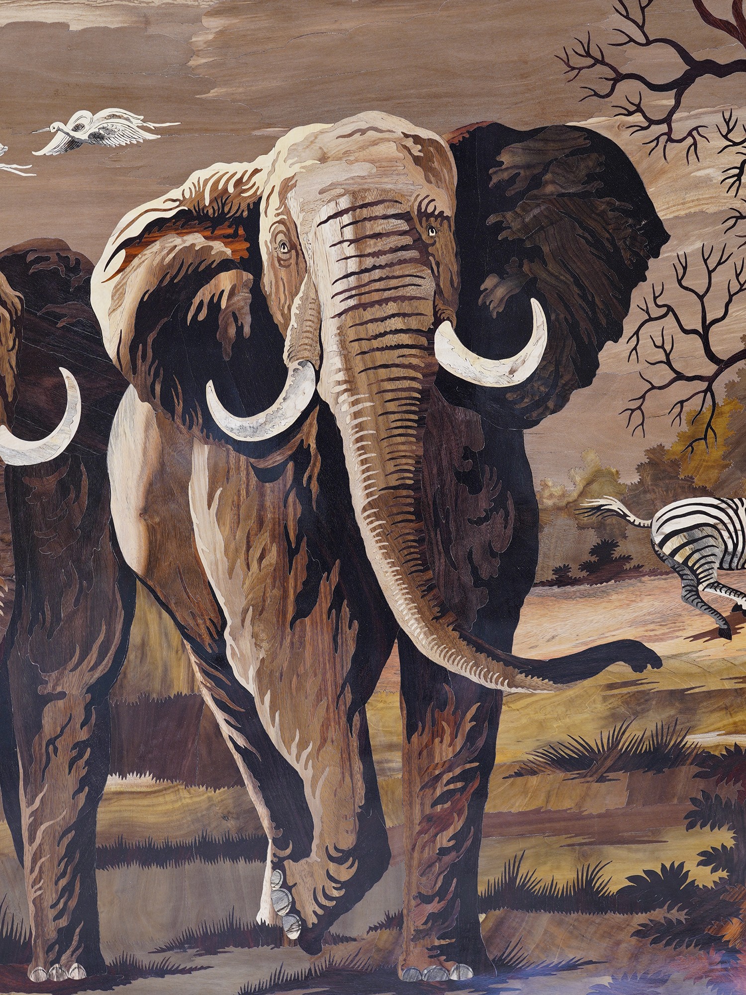 37" Elephants In Jungle | Natural Color On Wood Panel With Inlay Work