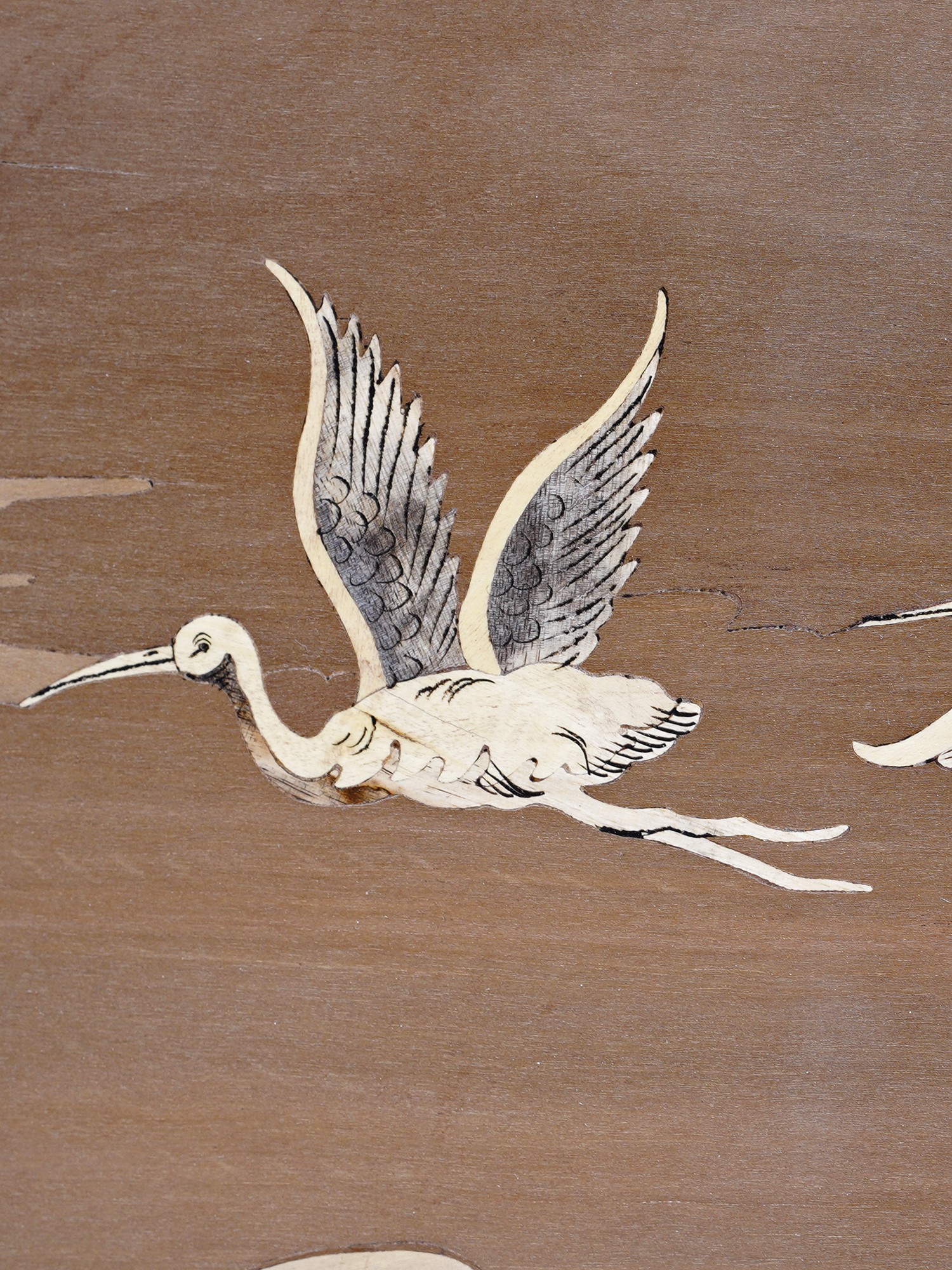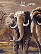 19" Beautiful White Elephants | Natural Color On Wood Panel With Inlay Work
