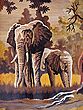 33" Attractive Many Elephants In Lake Side | Natural Color On 3D Wood Painting With Inlay Work