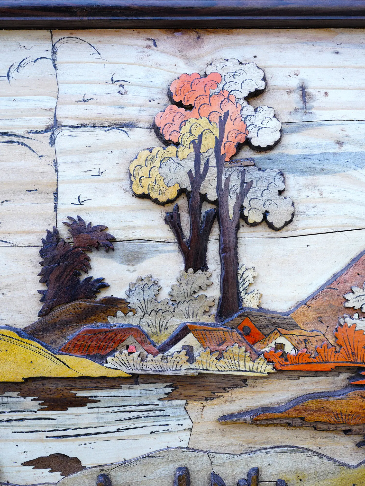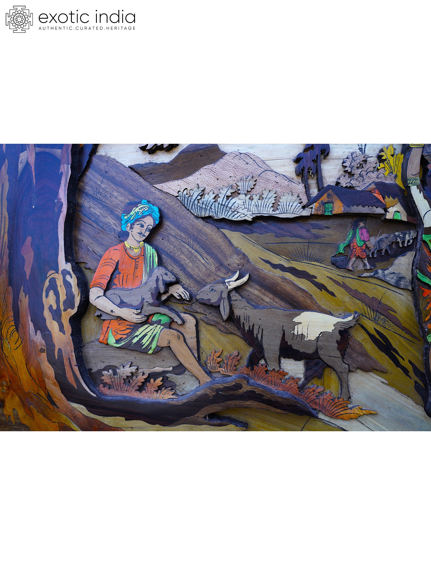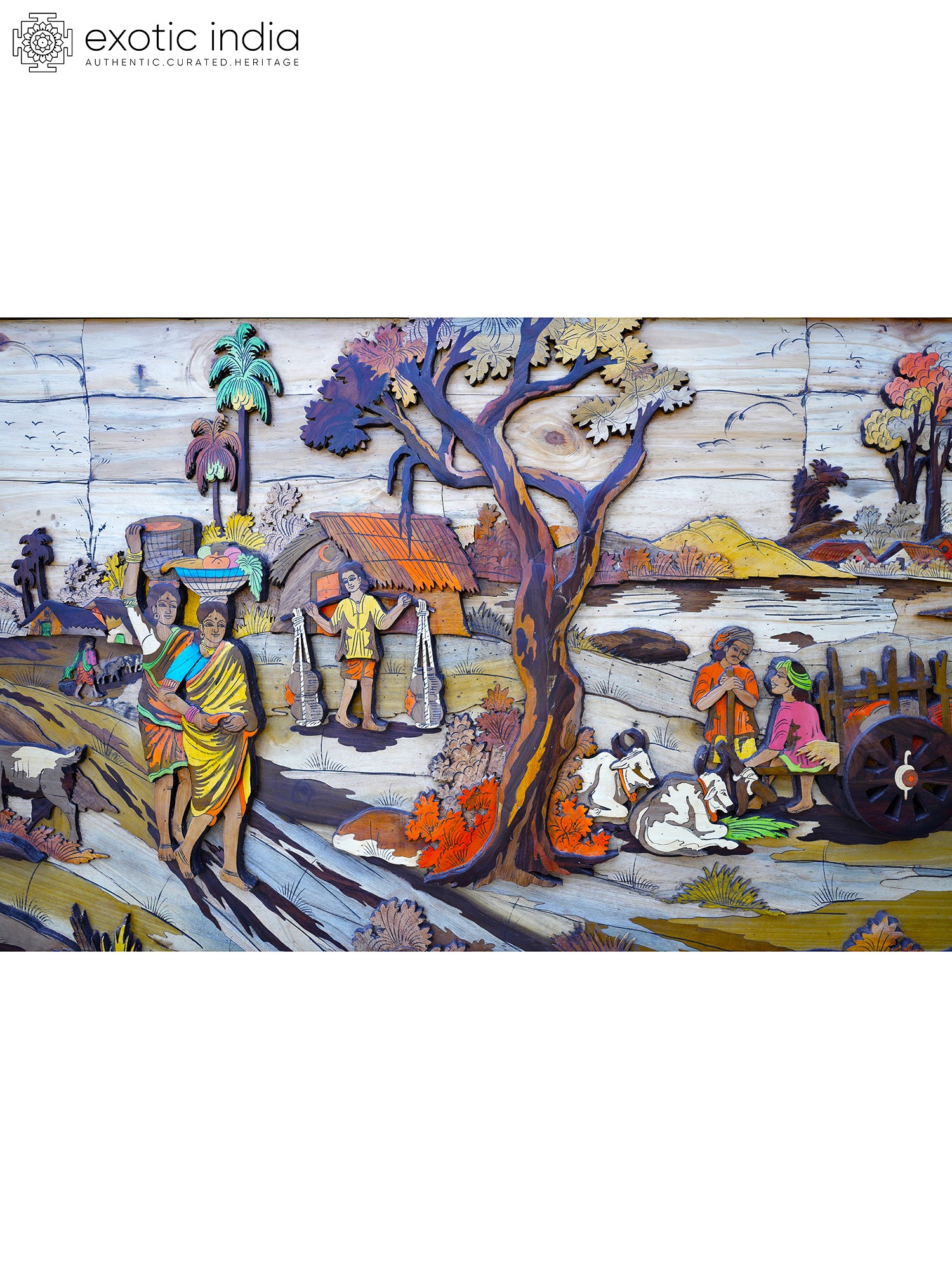 30" Working Farmers - Rural View of Village | 3D Wood Panel with Inlay Work