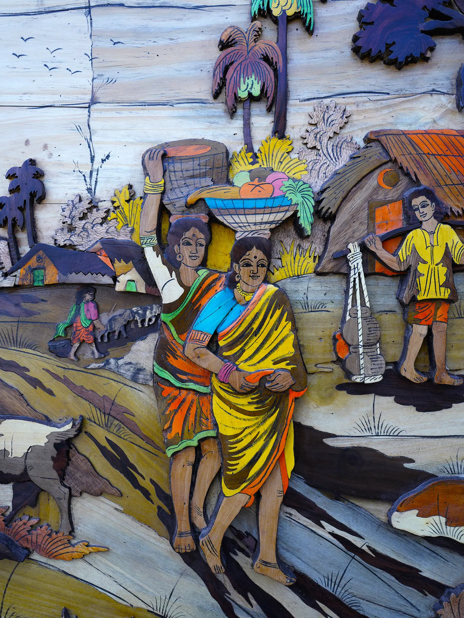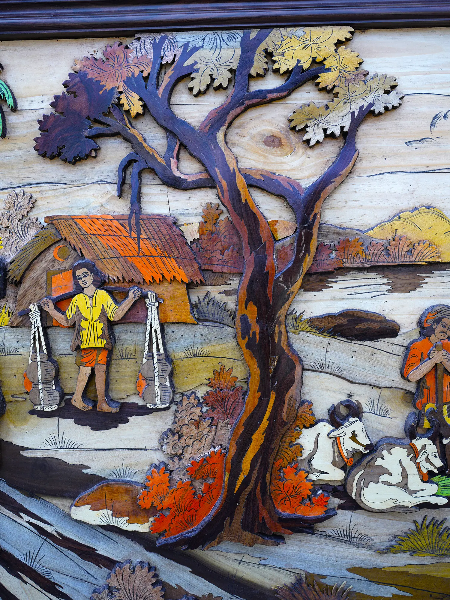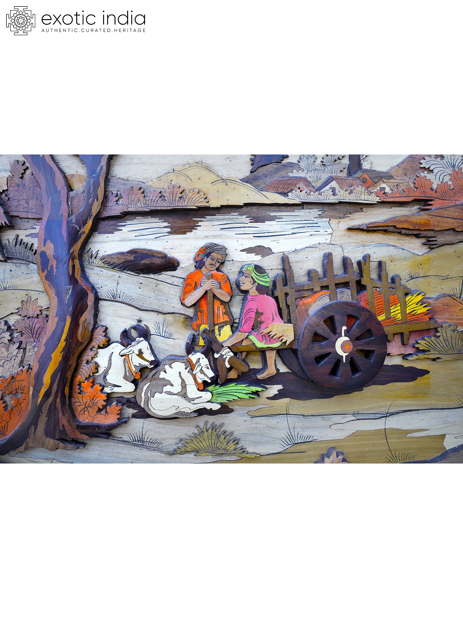 Villager Riding Bullock Cart | Wood Panel with Inlay Work