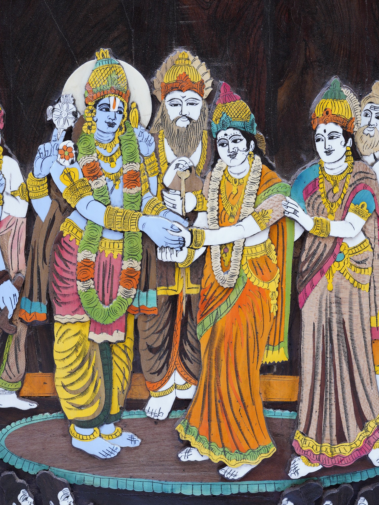 73" God And Goddess in Srinivasa Kalyanam | Rosewood 3D Panel with Inlay Work