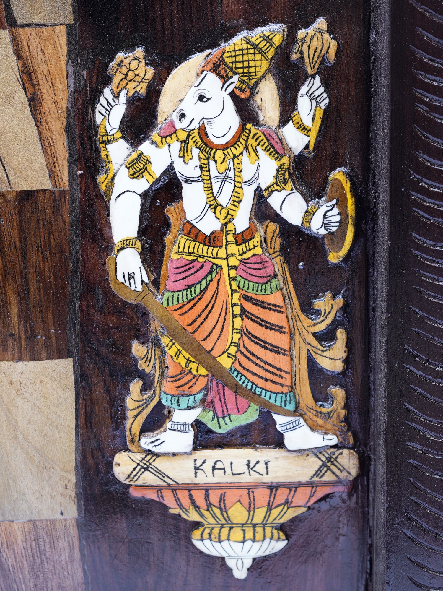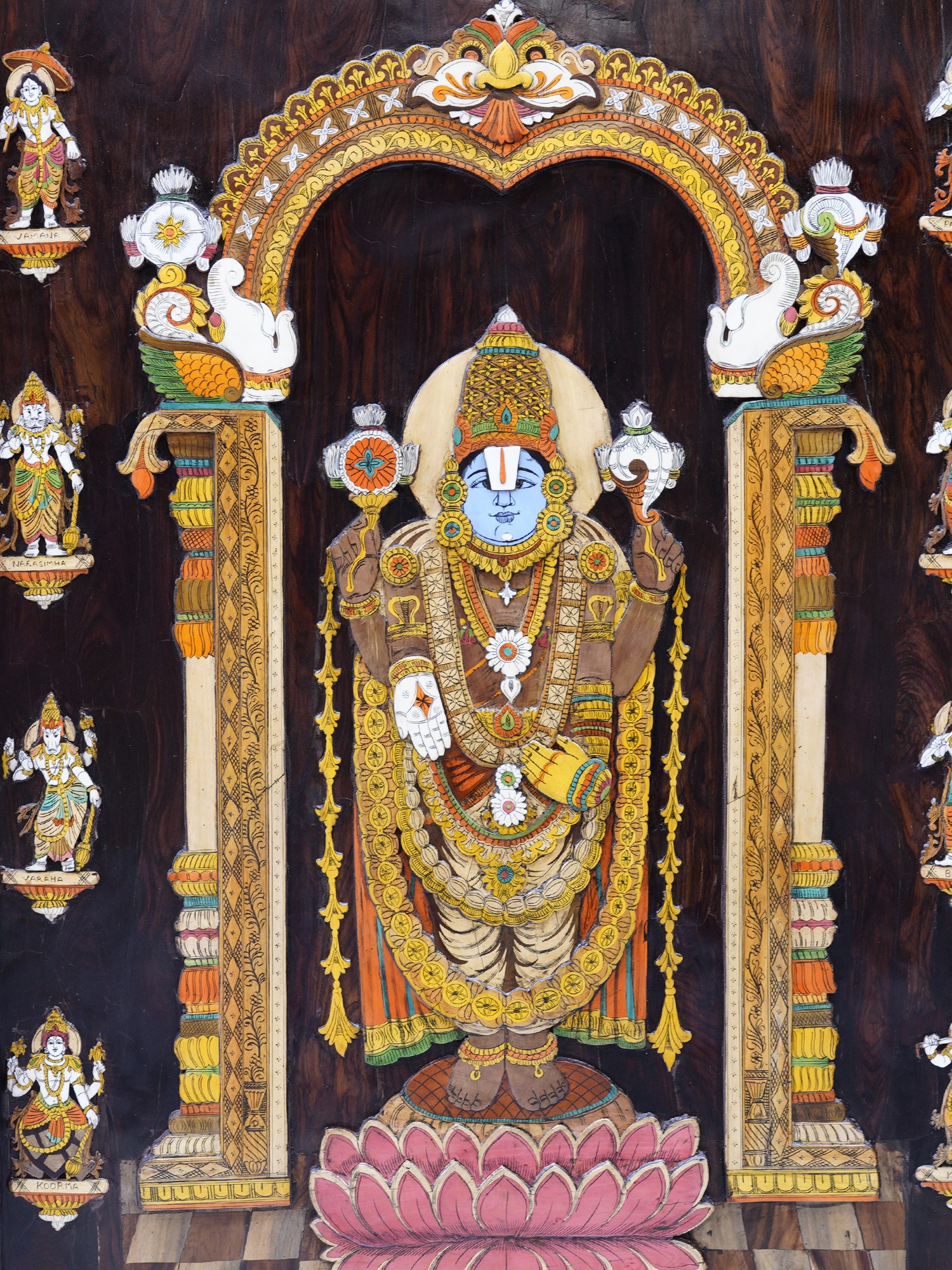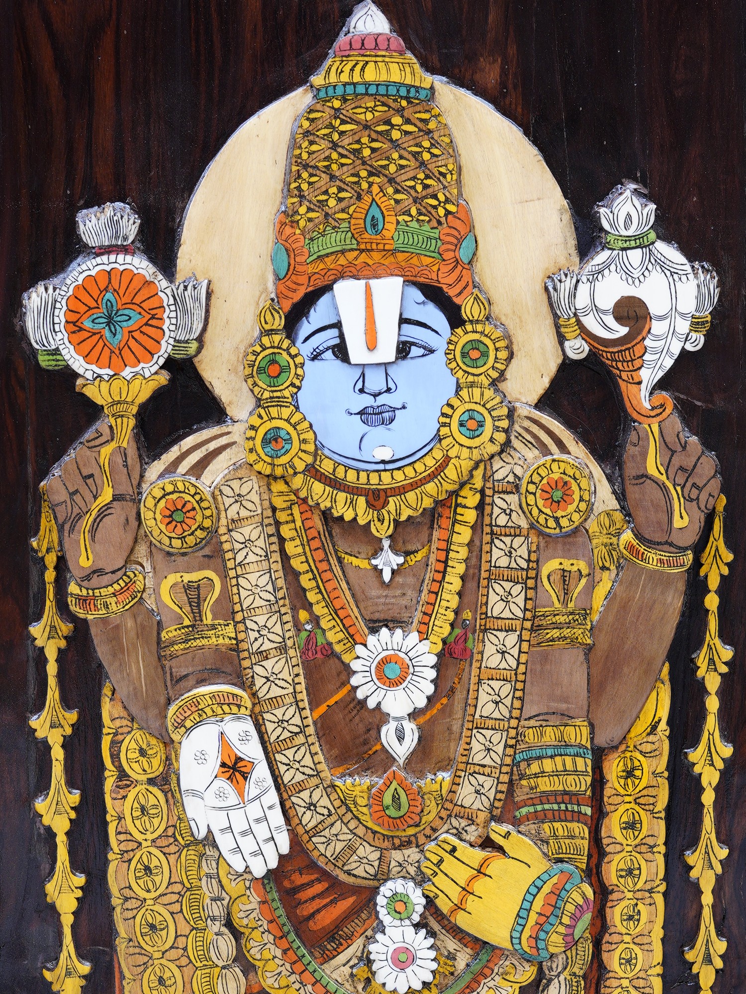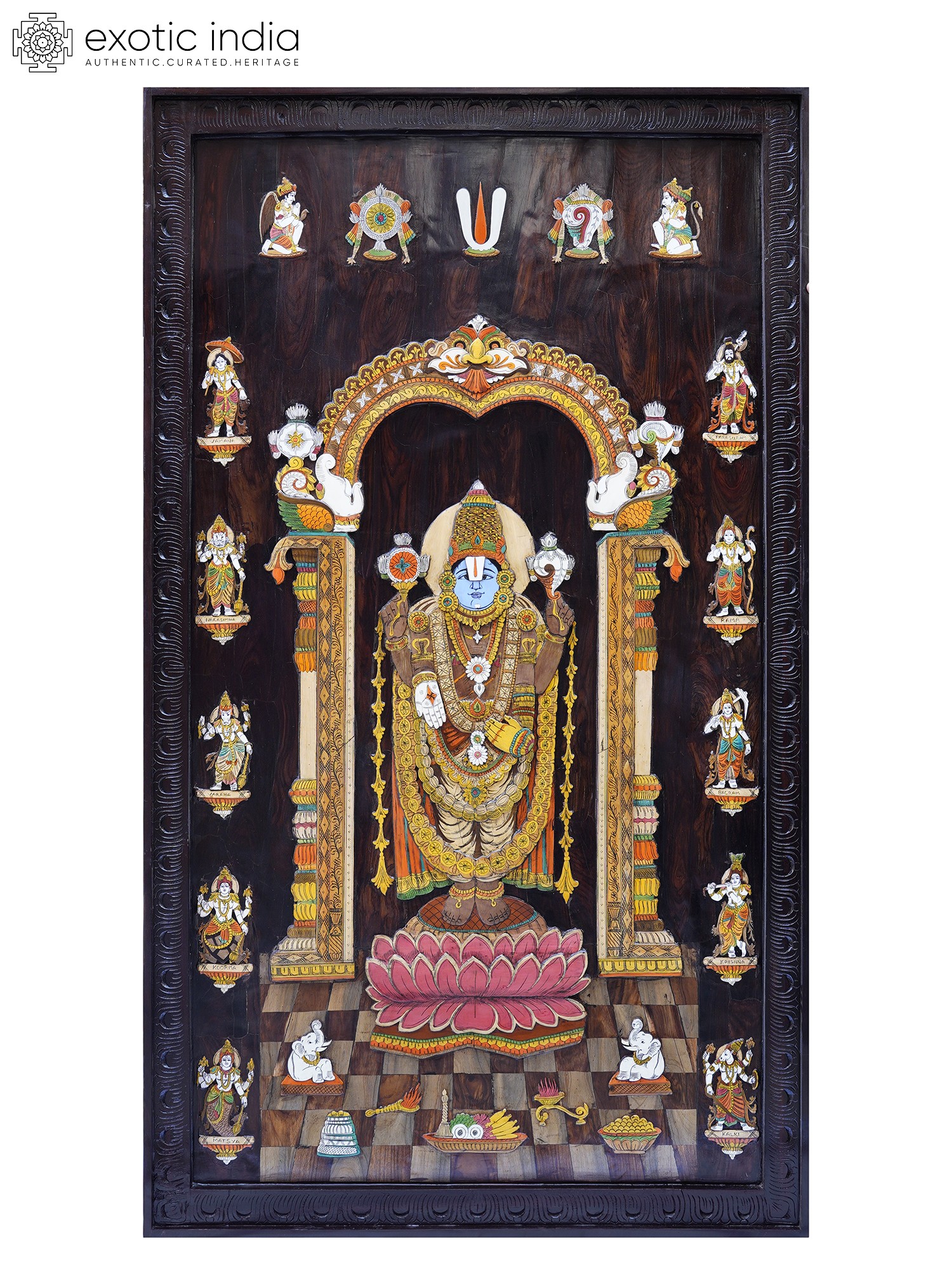 48" Attractive Panel Of Tirupati Balaji | Natural Color On 3D Wood Painting With Inlay Work