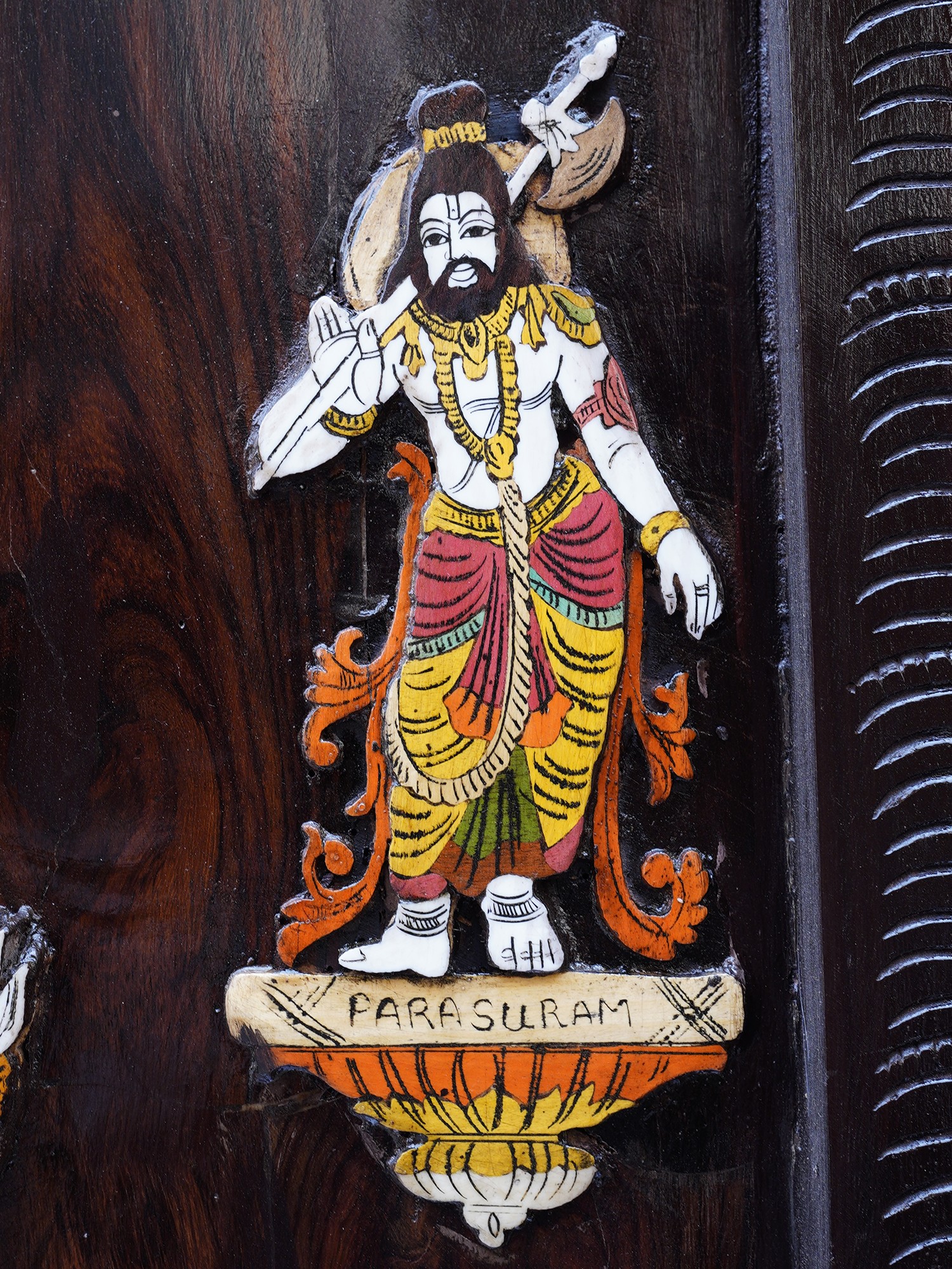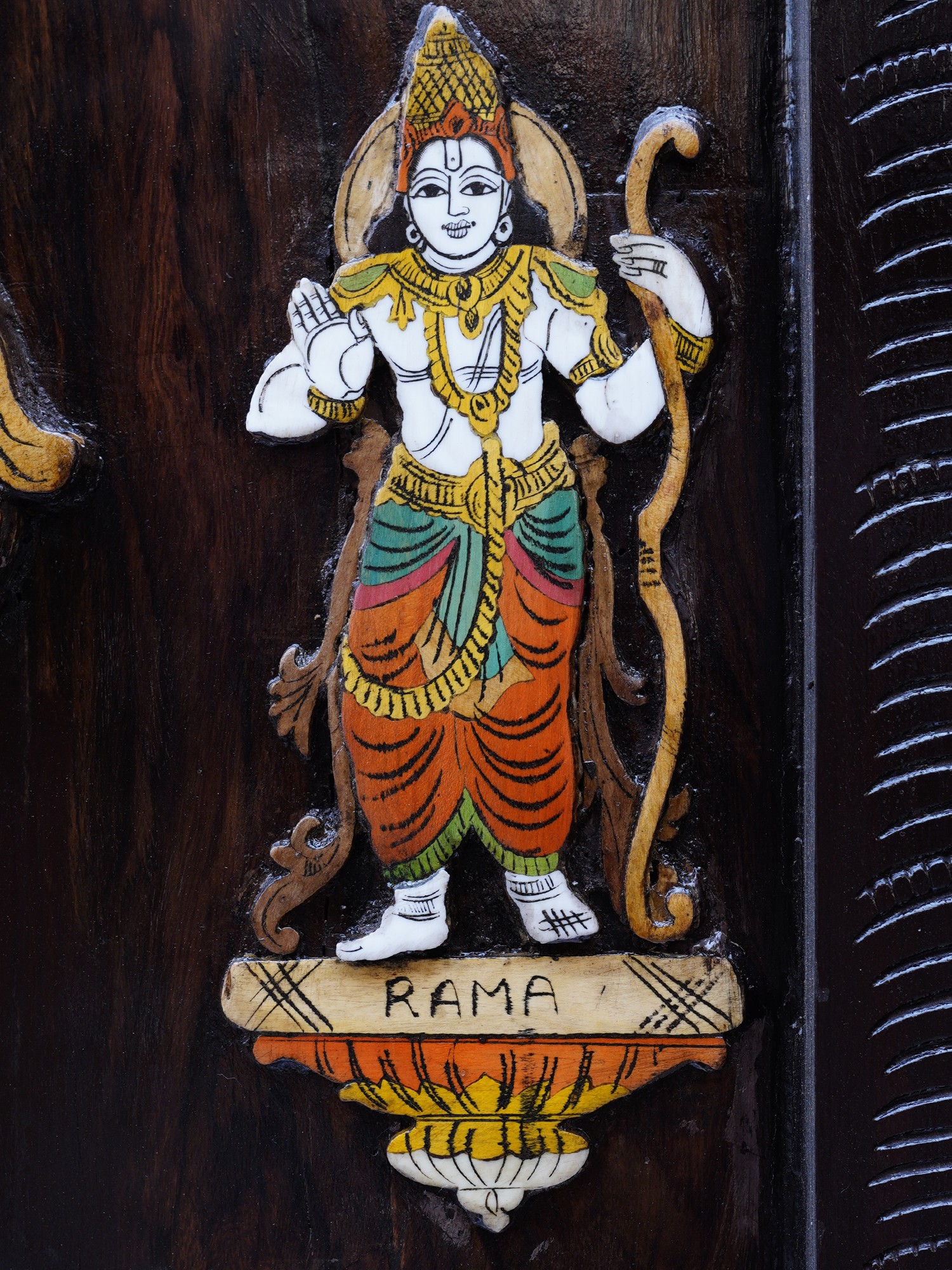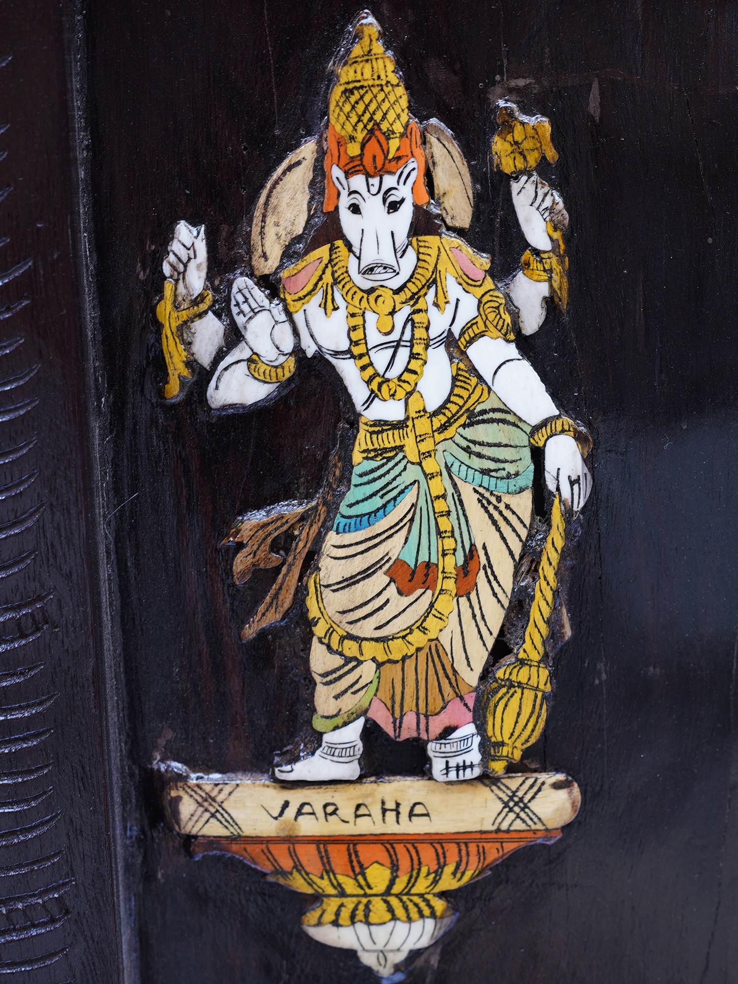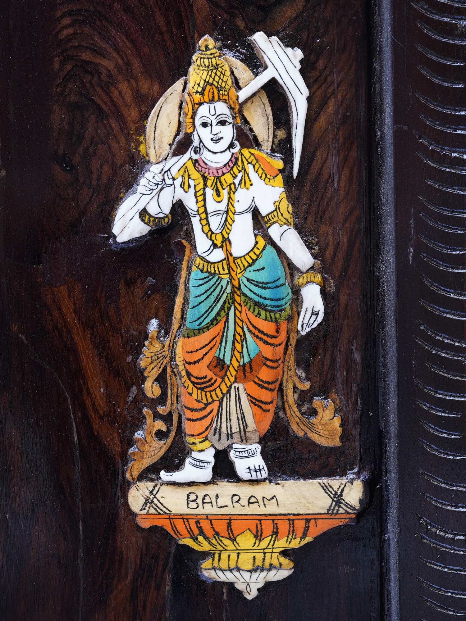 36" Superfine Tirupati Balaji (Venkateshvara) | Colorful 3D Wall Panel in Rosewood with Inlay Work