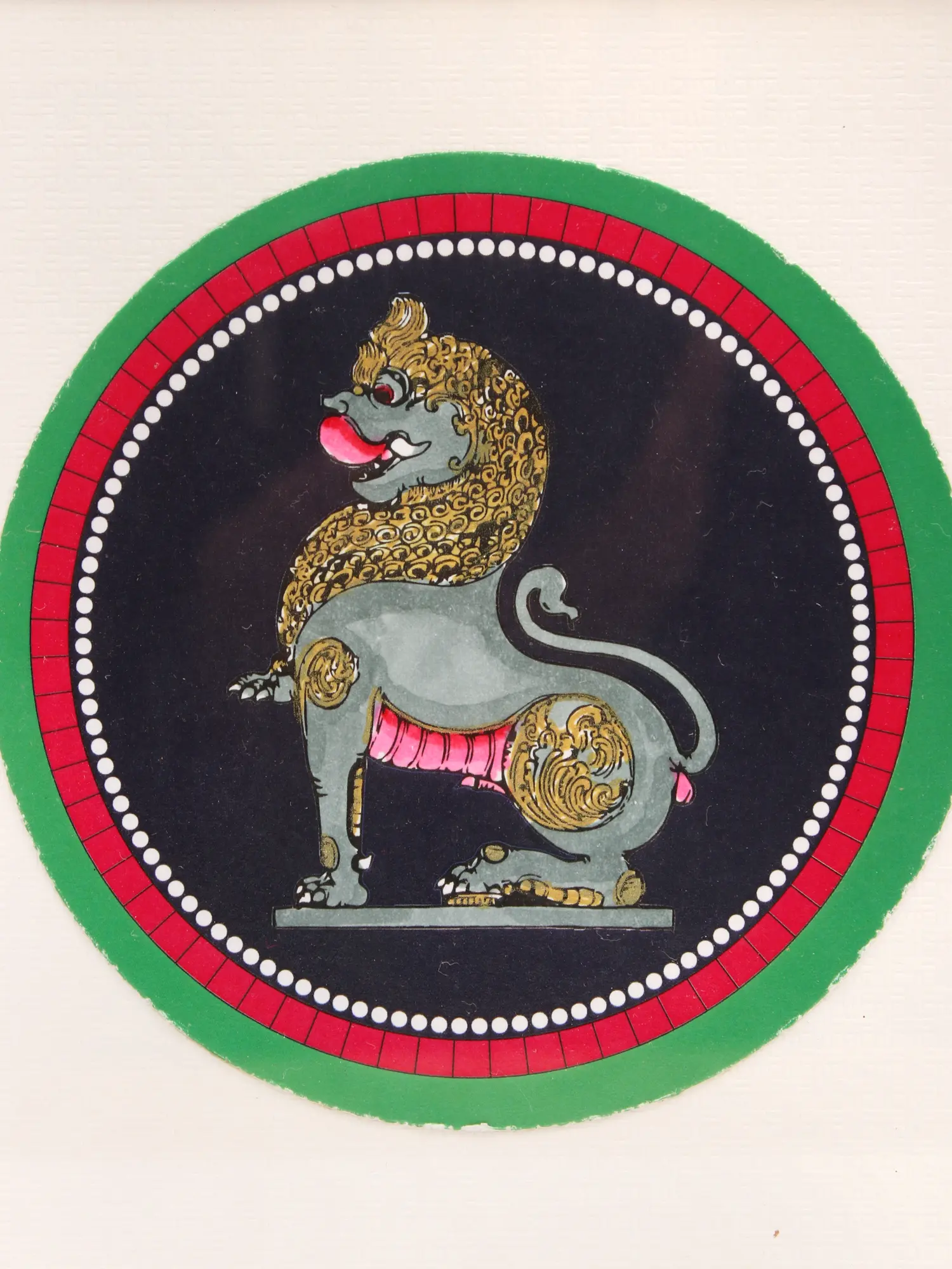 Often found in temple architecture, its inclusion in Ganjifa paintings preserves cultural significance. The intricate portrayal of the Yali in this artwork not only captivates the eye but also serves as a cultural emblem, celebrating the rich tapestry of symbolism and myth inherent in Indian artistic traditions.