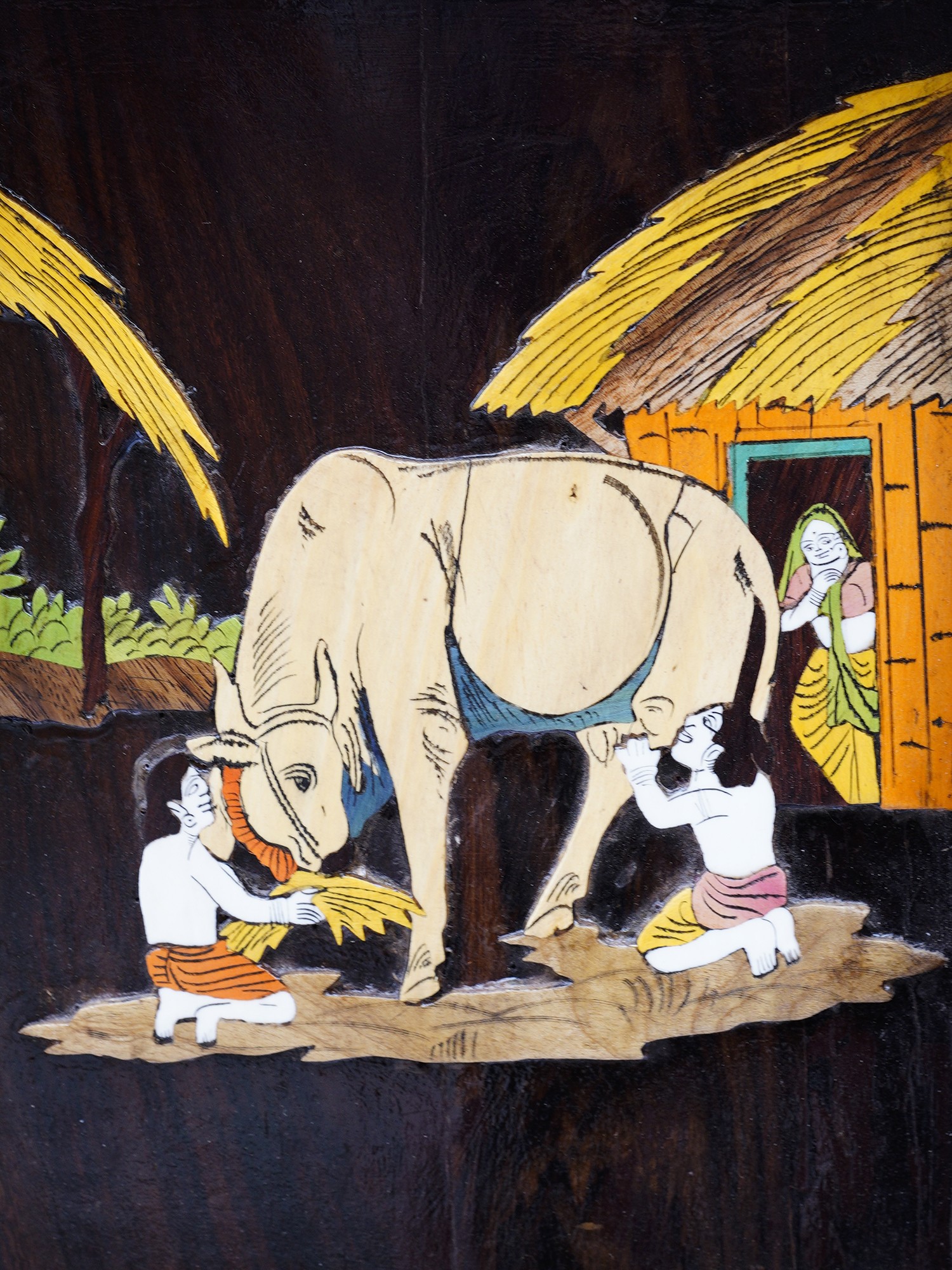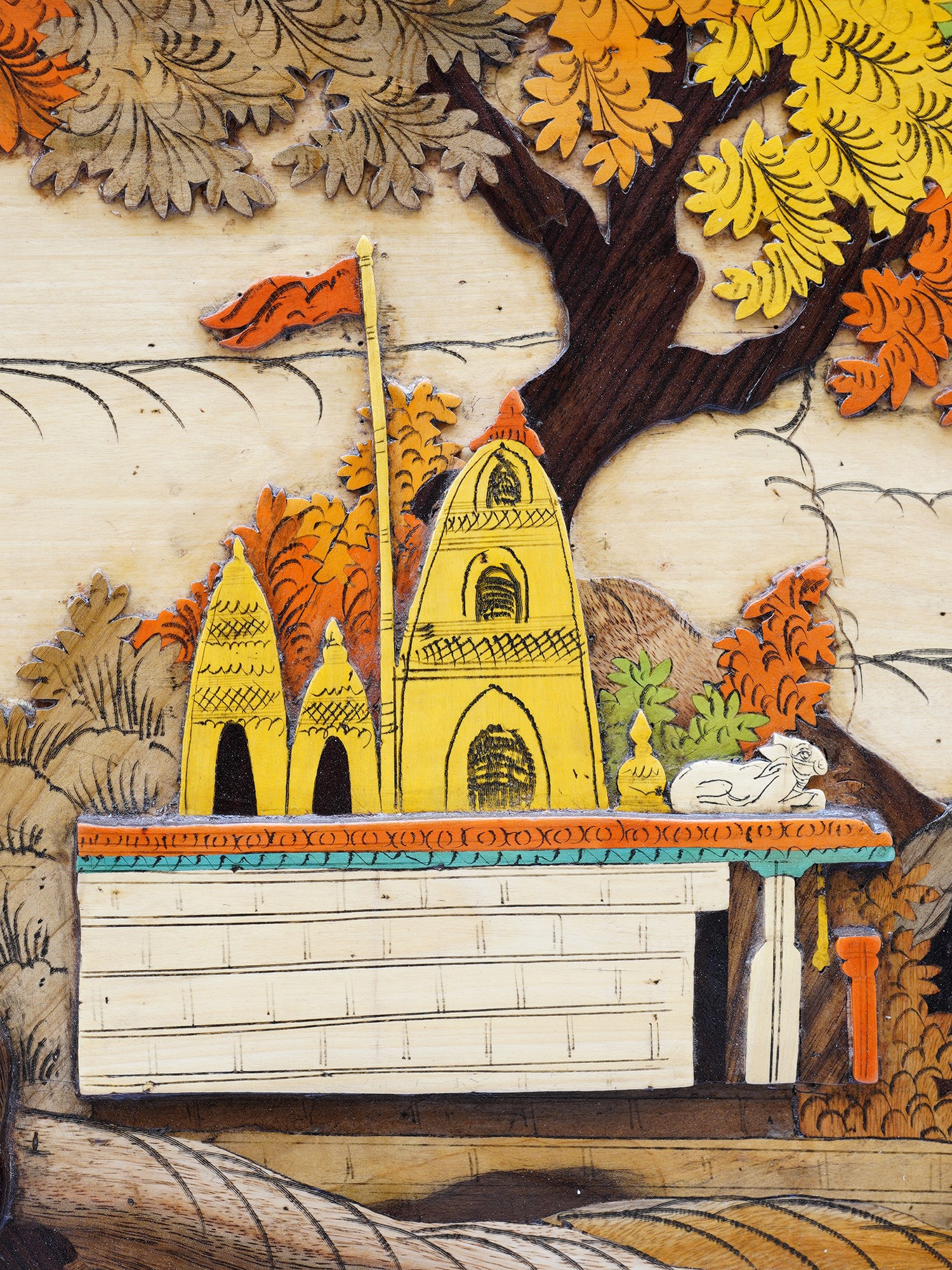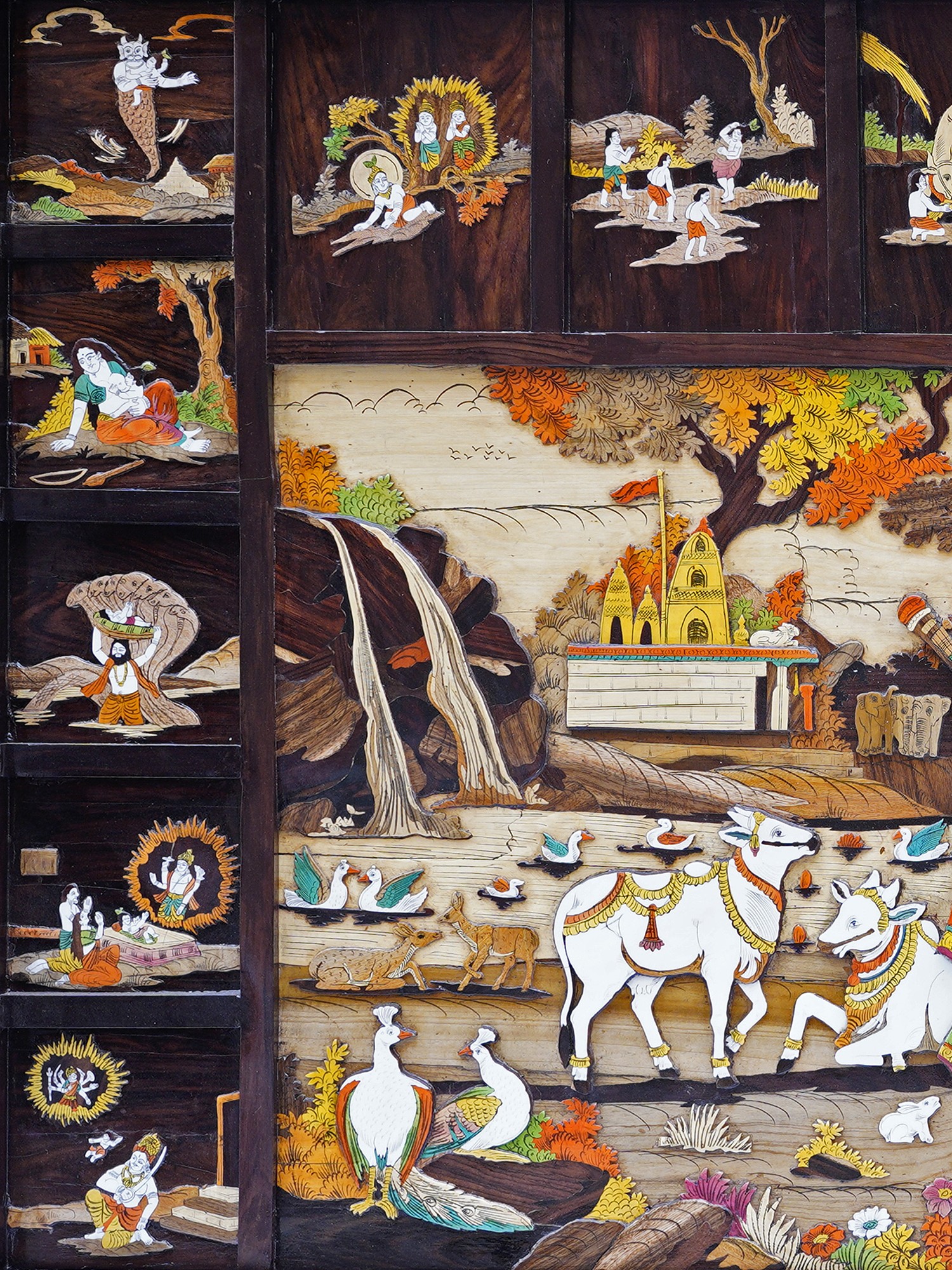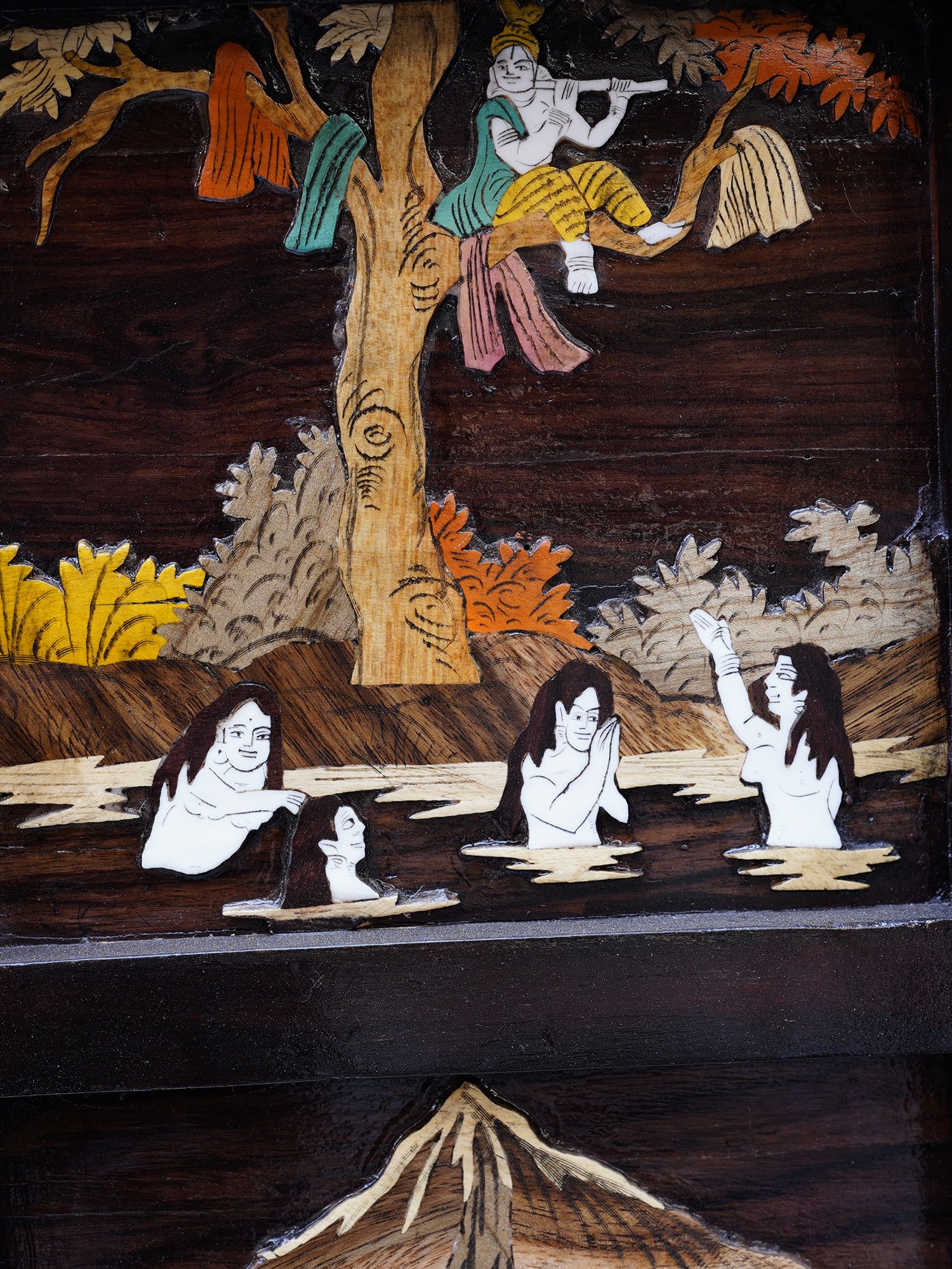 73" Radha Krishna Leela - Stories of Lord Krishna | Rosewood 3D Panel with Inlay Work
