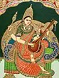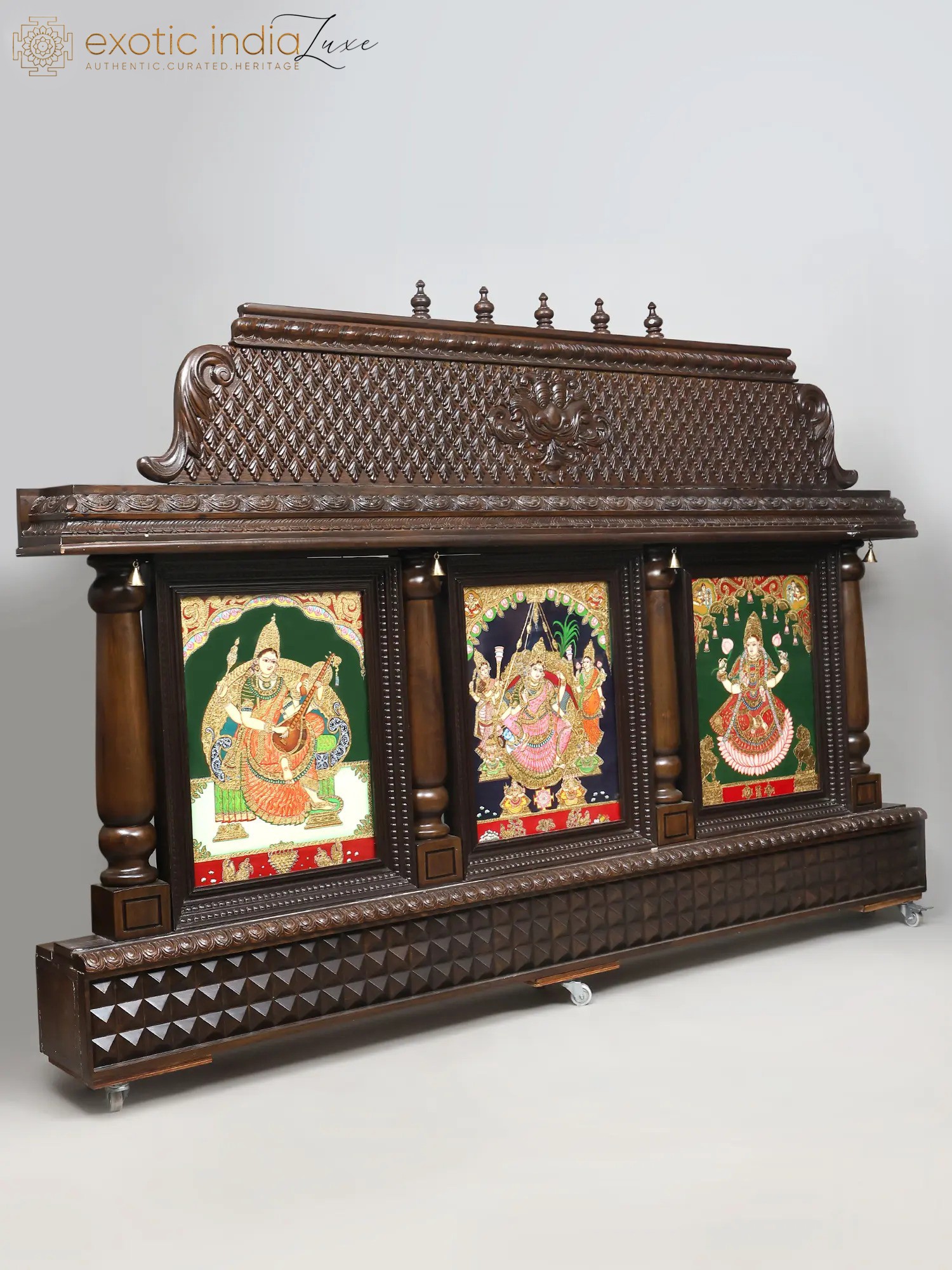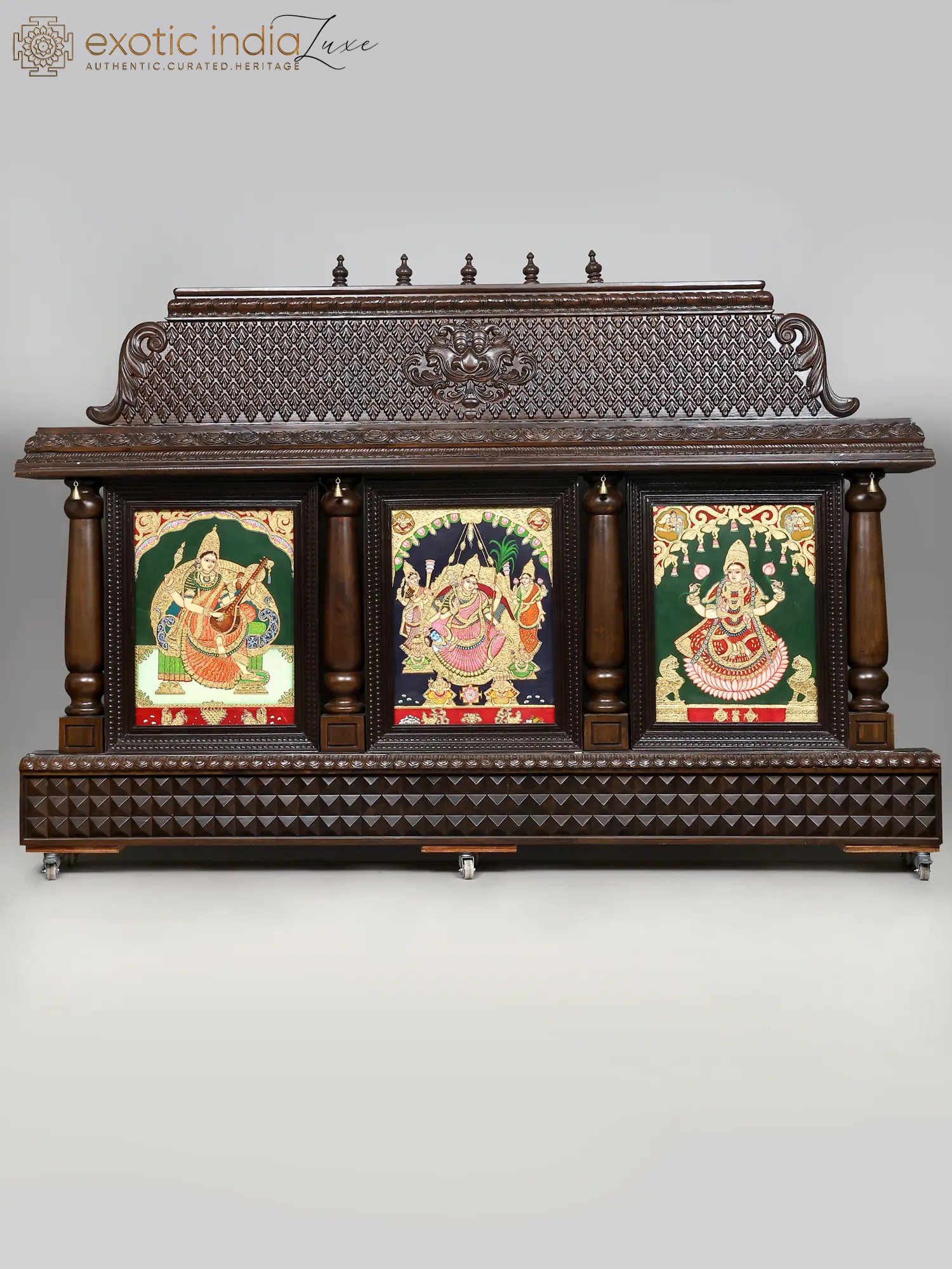 96" Large Goddess Saraswati, Rajarajeshwari and Lakshmi | Tanjore Temple Frame