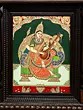 Lord Ganapati Seated on Throne | Traditional Colors with 24 Karat Gold | Tanjore Painting with Frame