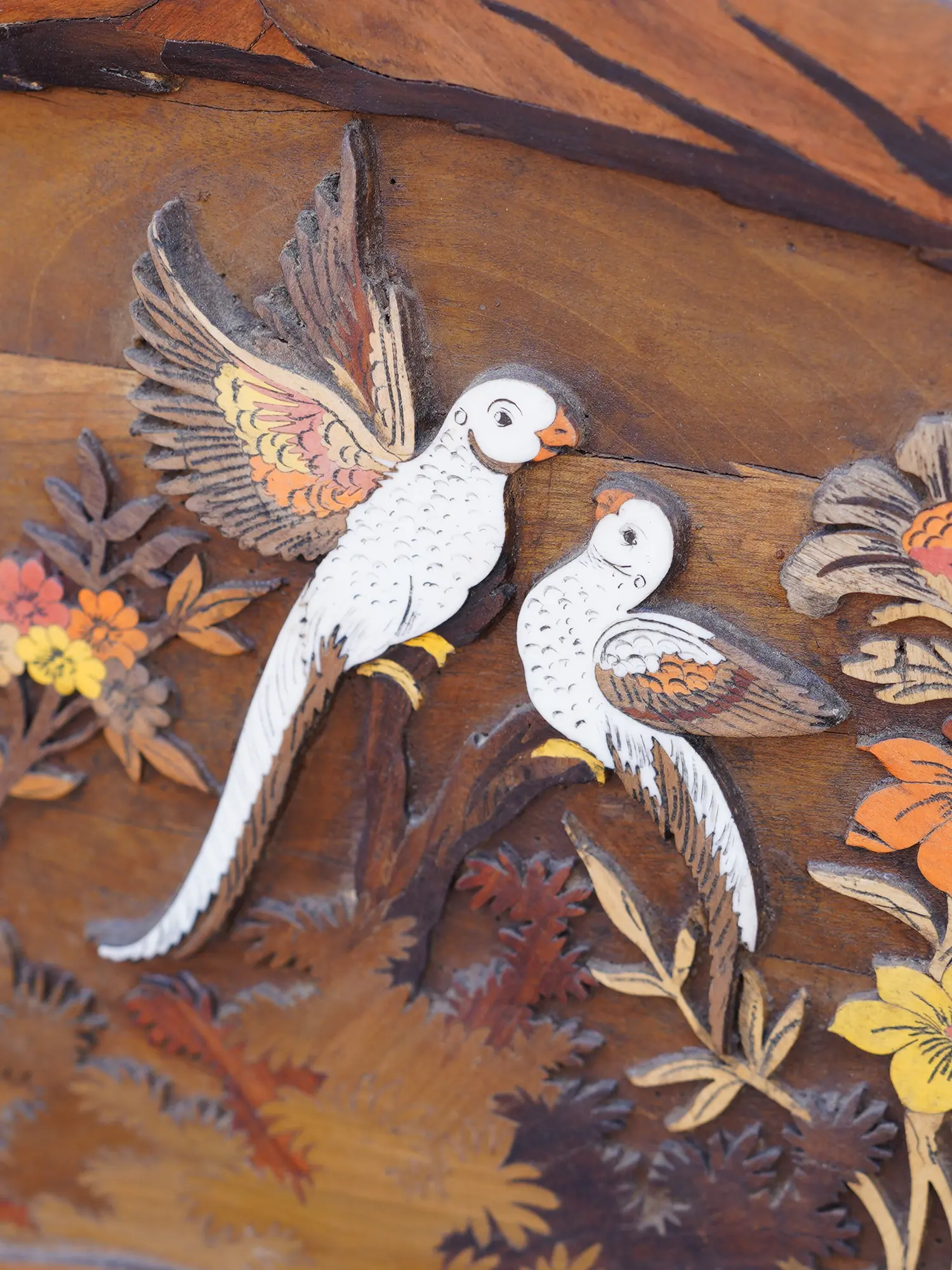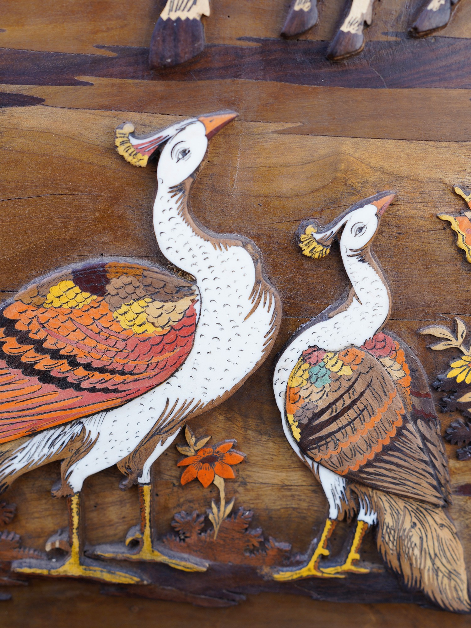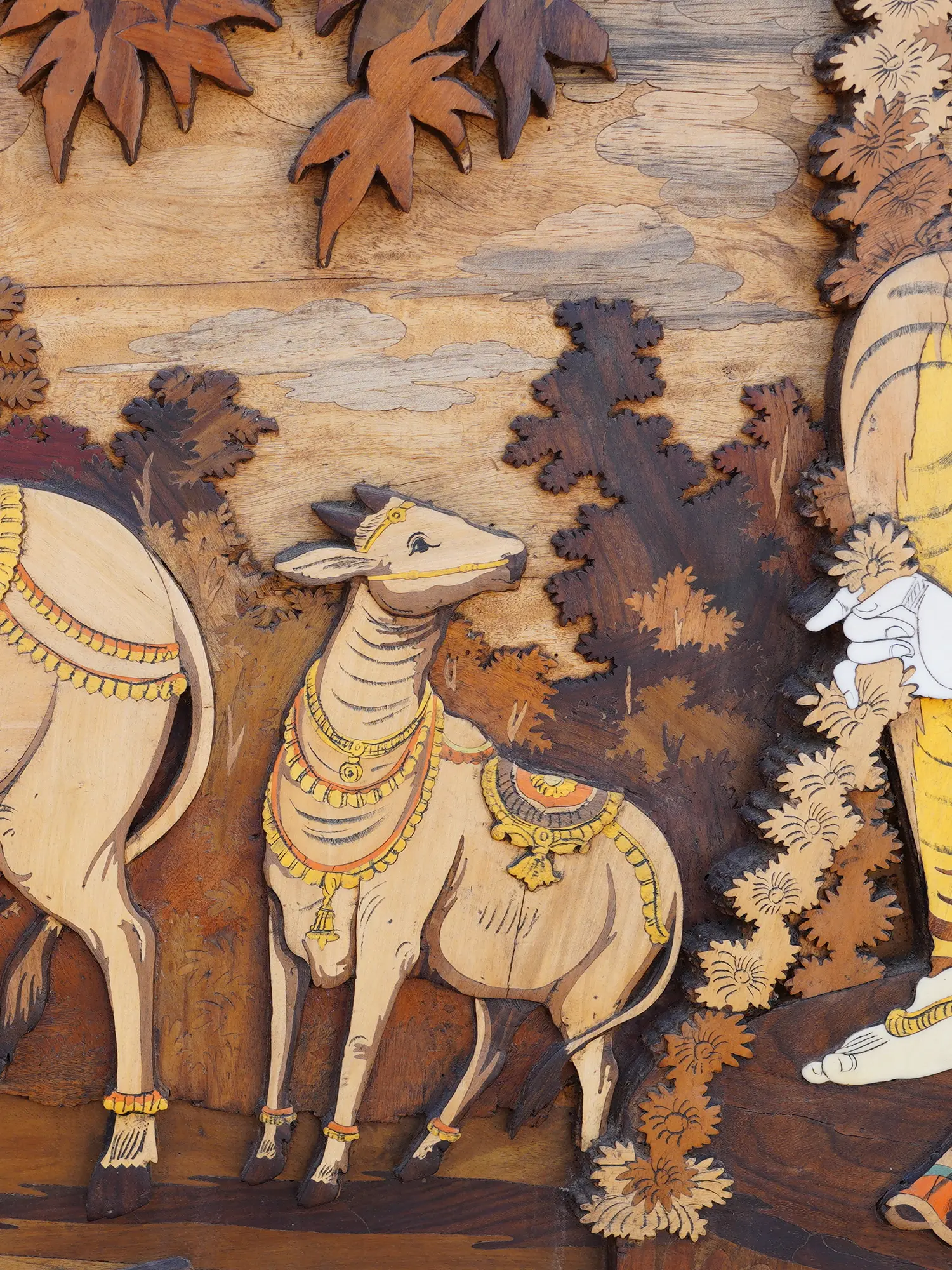 72" Large Fluting Radha Krishna with Gopis | 3D Wood Panel with Inlay Work