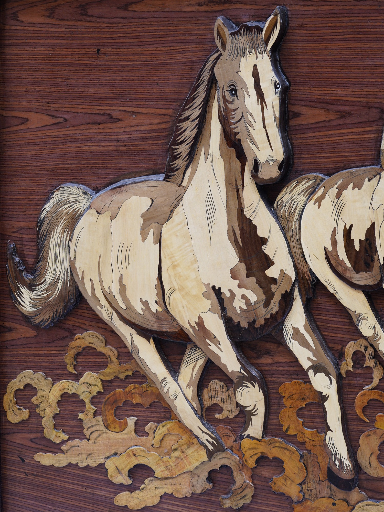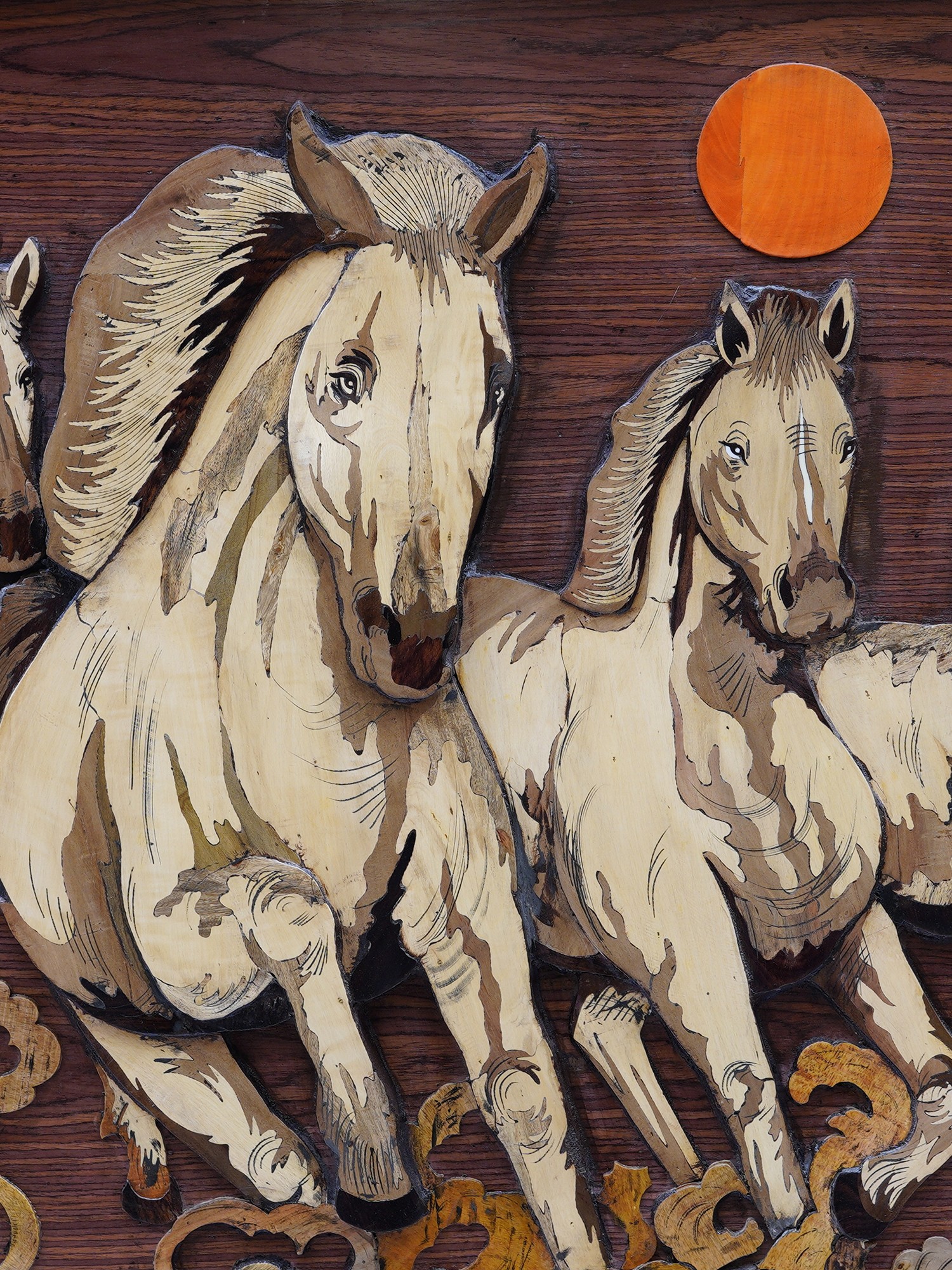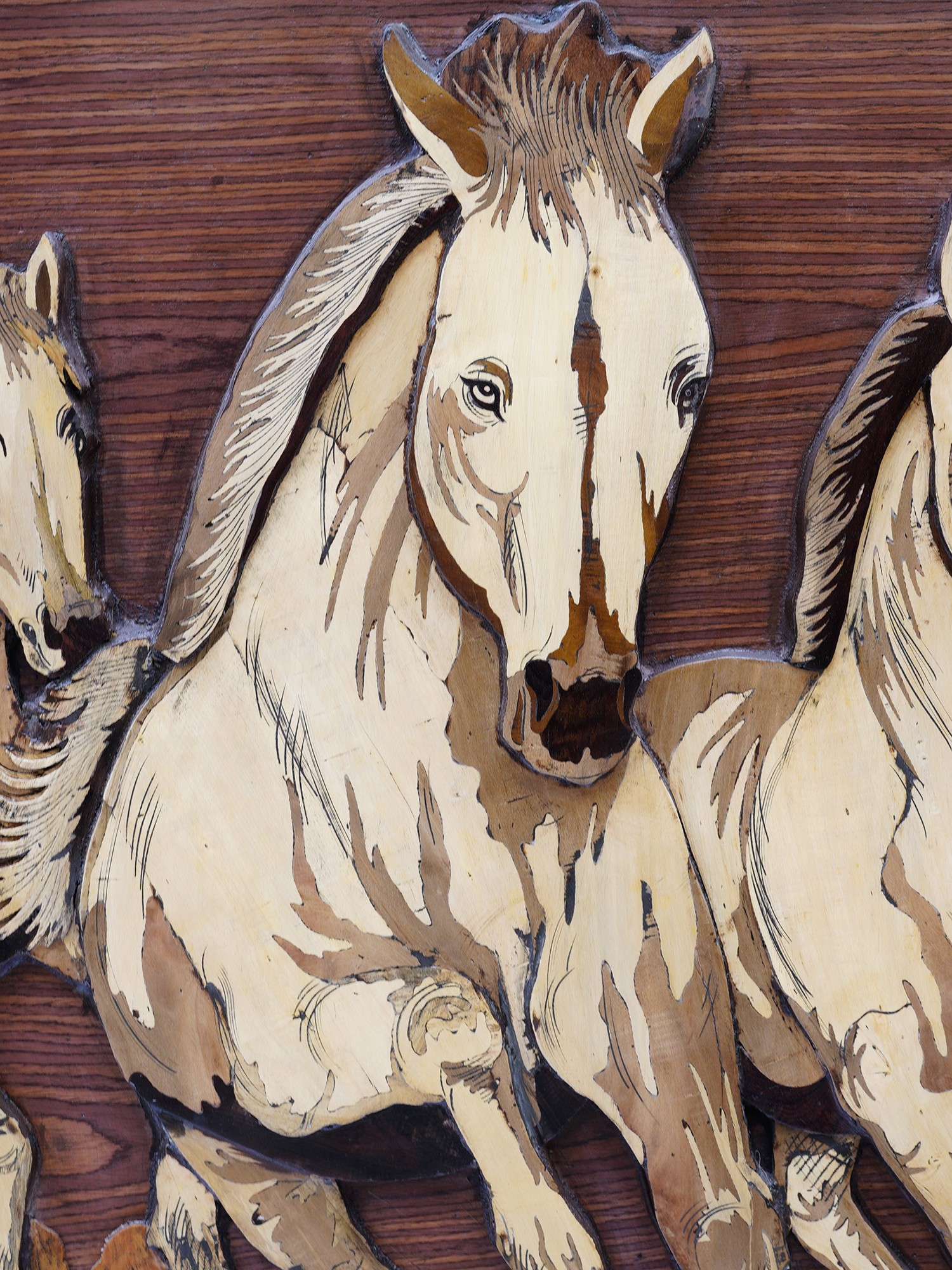 Four Horses | Natural Color on Wood Panel with Inlay Work
