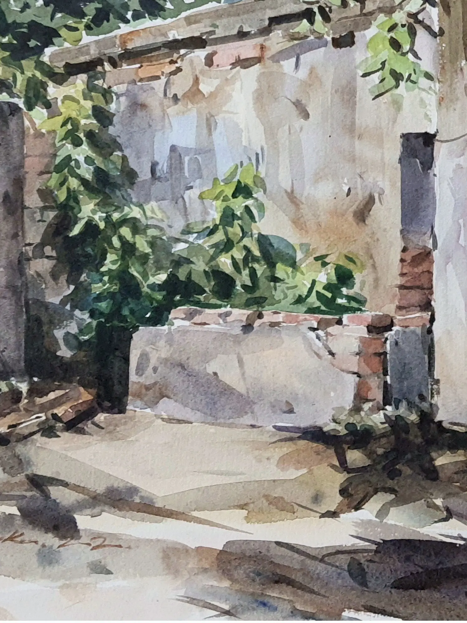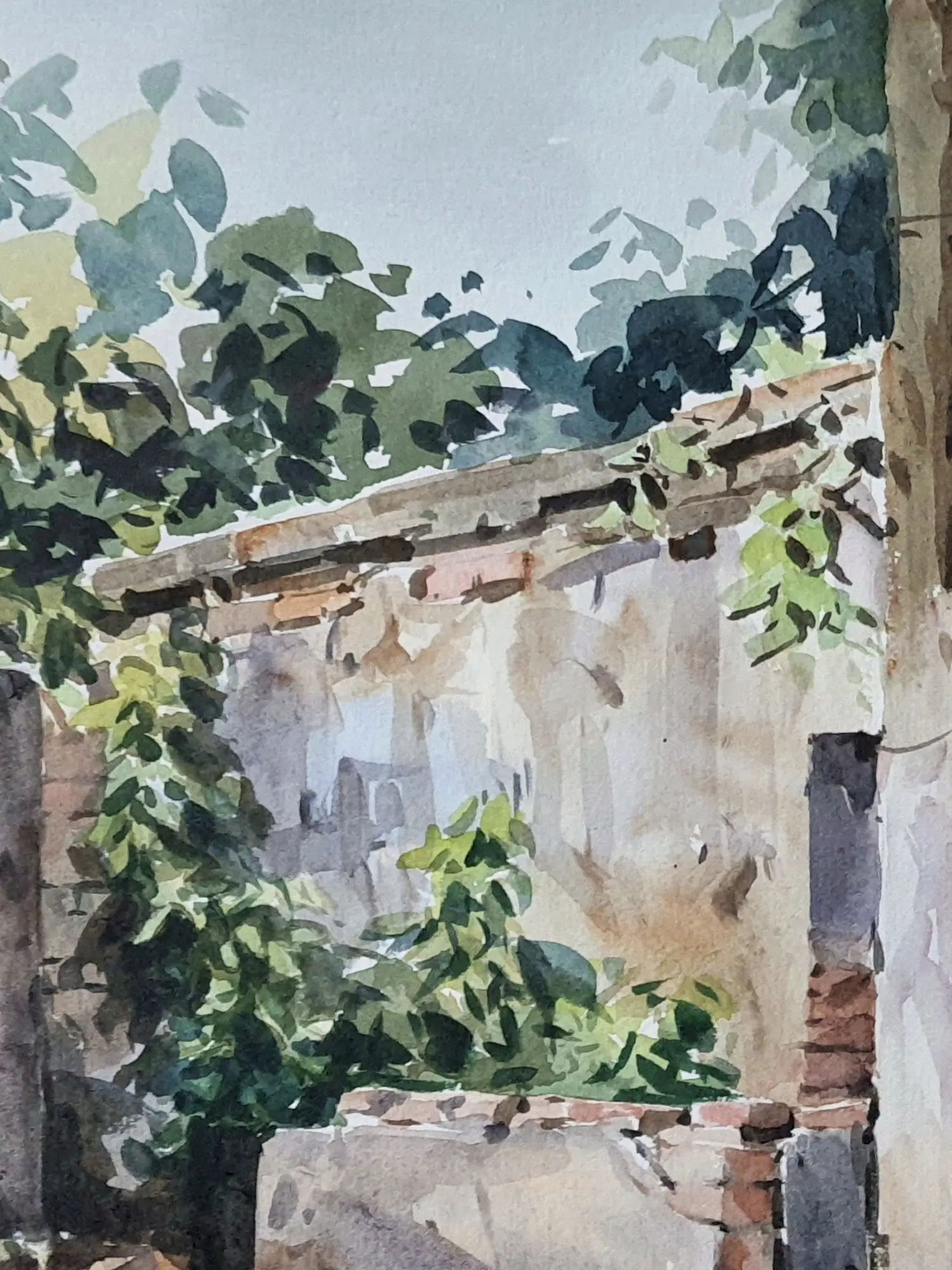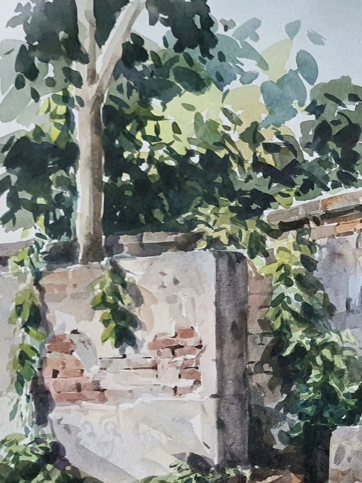 Masterfully rendered on fine paper, this piece showcases the delicate interplay of light and shadow so characteristic of watercolor. The artist's meticulous technique, utilizing washes and subtle layering, imbues the scene with a tangible texture, allowing you to feel the rough brick and weathered plaster. Each brushstroke is a testament to practiced skill and an intimate understanding of the medium.