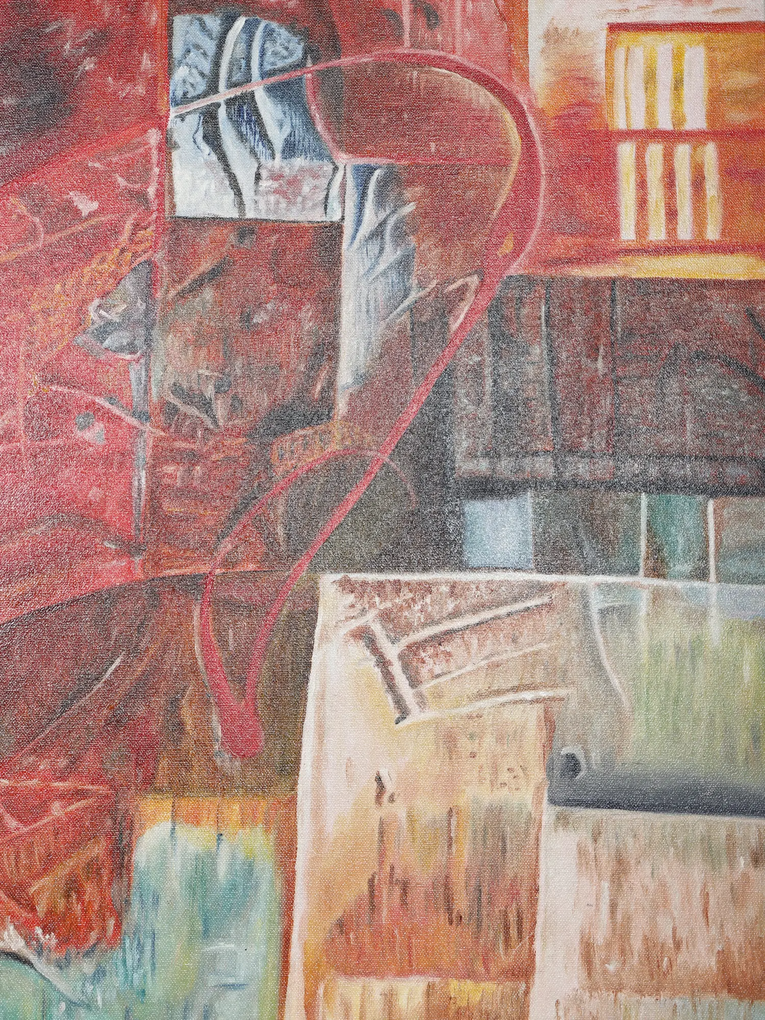Complementing colors and brushstrokes come together to form an appealing vision in this oil painting, inspired by the organic naturalism of abstract art.