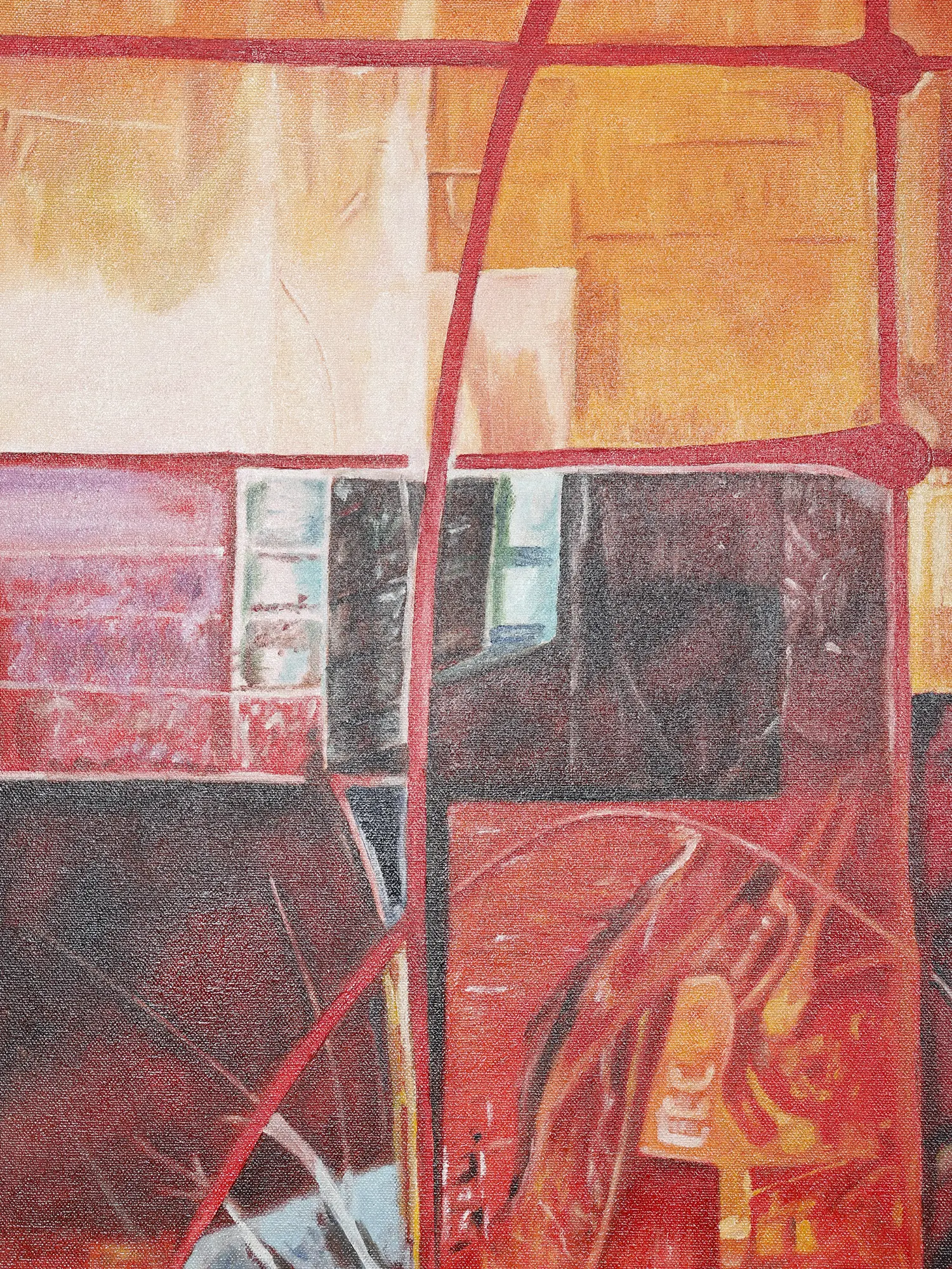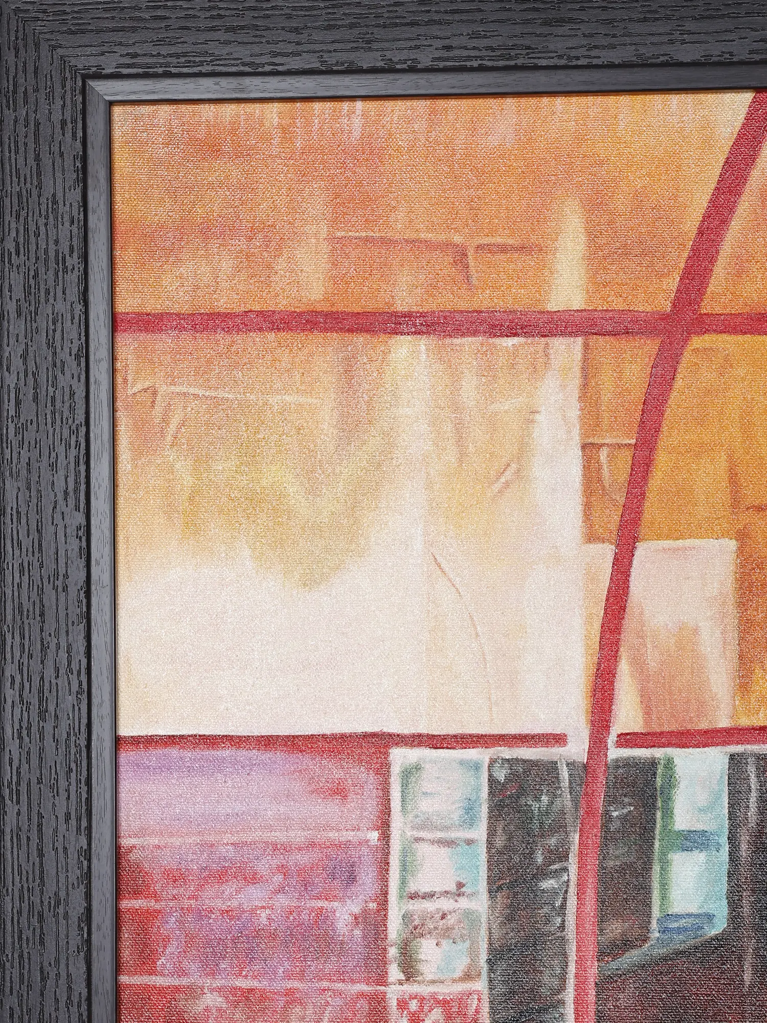 Measured brushstrokes are used to apply a red line all over the canvas, with an energetic stroke in the center, that expresses dynamic and emotive motion, highlighted by a flaming red-orange, creating an aesthetic centerpiece for any space.