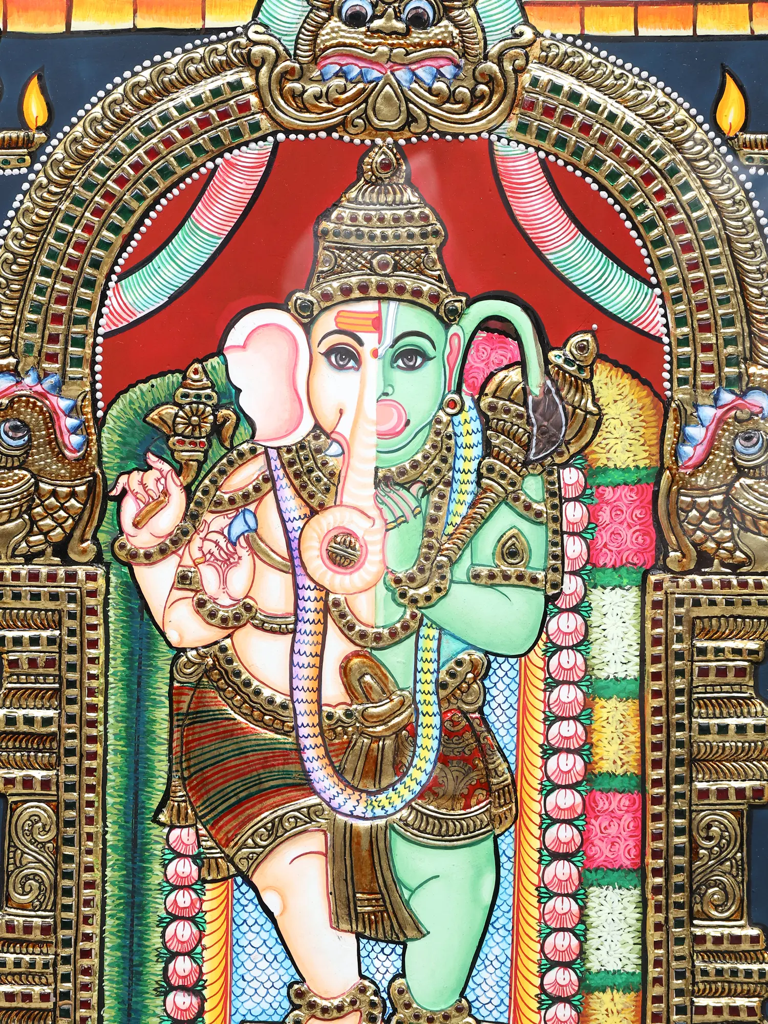 Panchamukhi Hanuman Tanjore Painting with Frame | Tanjore Artwork by Prabhu
