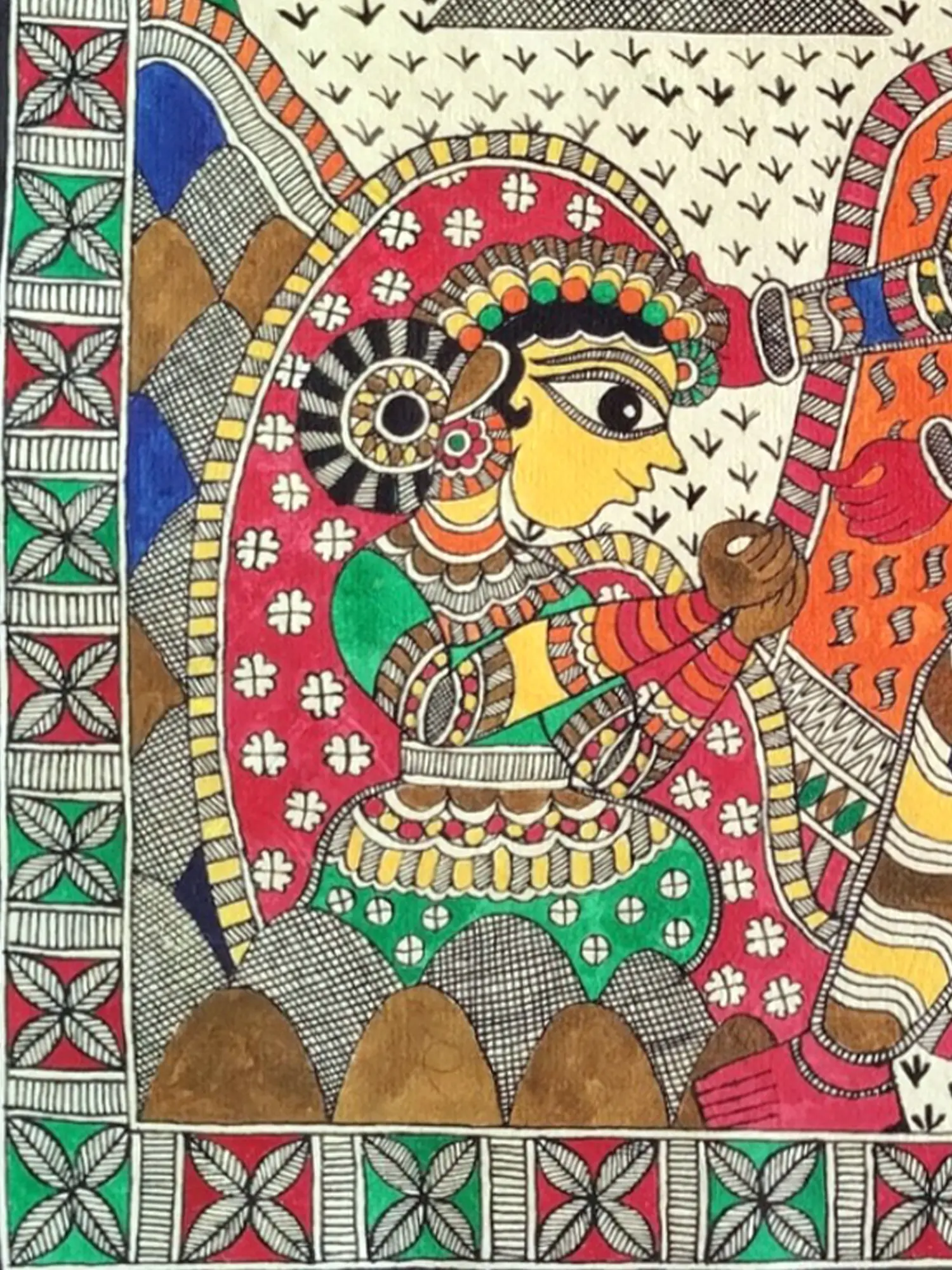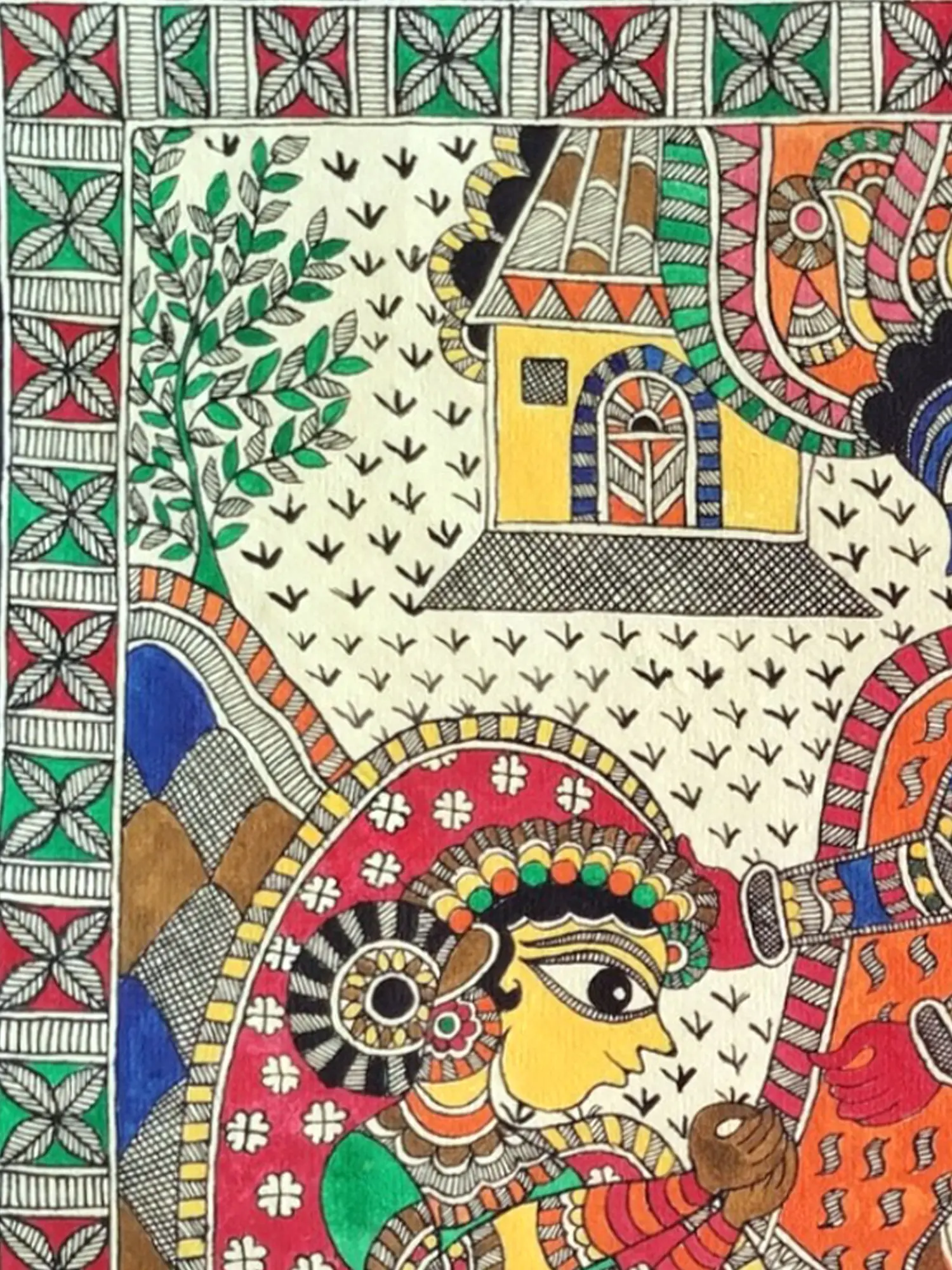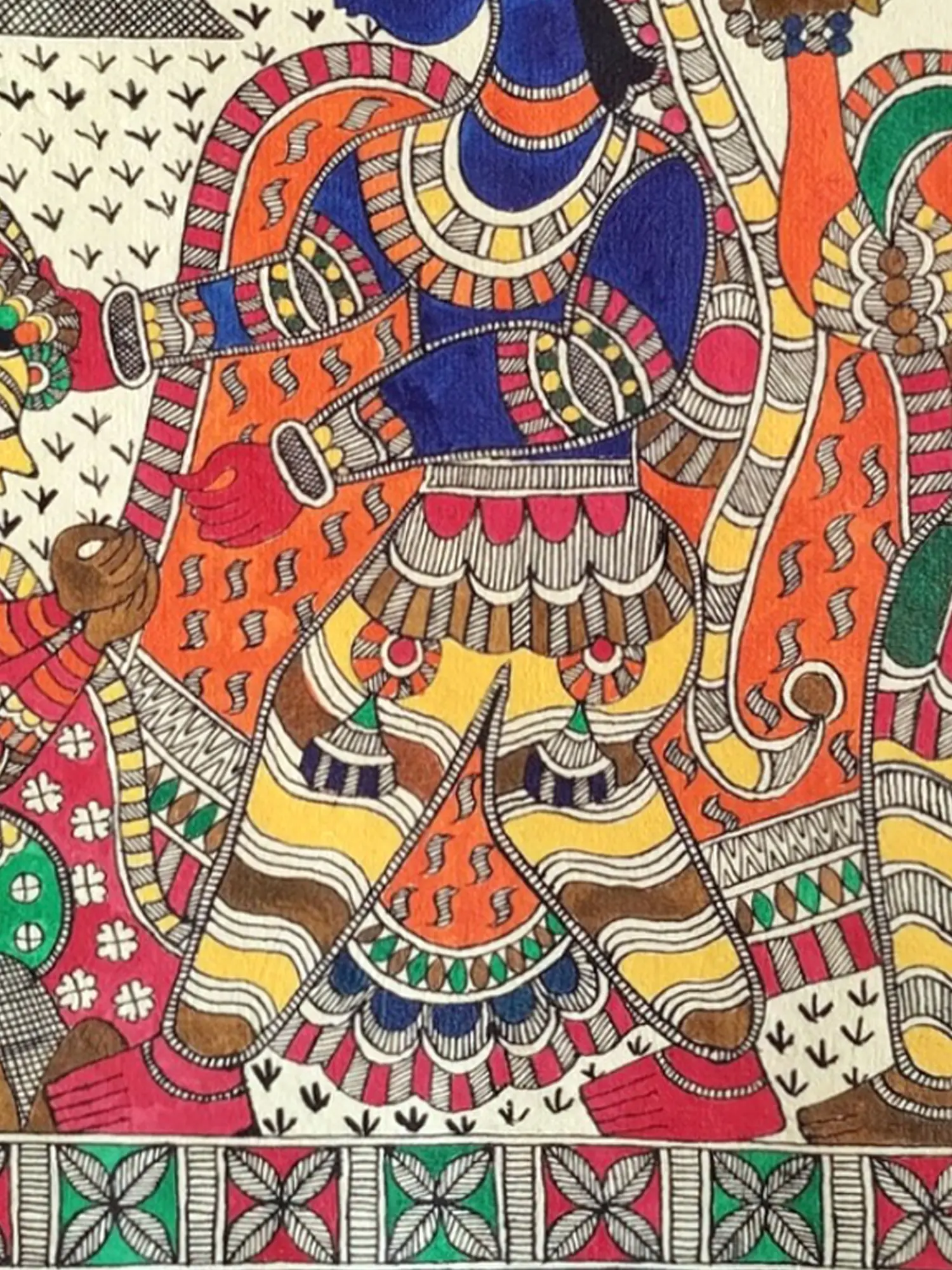 Devotthan Aripan - Waking God from Sleep | Acrylic on Handmade Sheet | By Urwashi Nirala